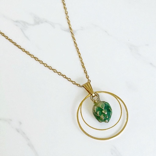 マットホップネックレス ゴールド マットなライトグリーンをベースに、ラメでホップの模様を描いています。 ラメ部分にはグリーンの色を乗せて、立体感を出しています。 大きめのトップなので、服の上から着けていただいても存在感があってかわいいです! マットベースは不透明なので、背景色に影響されることなくお使いいただけます。 ネックレスはお好きな素材・長さをお選びいただけます。全て+5cmのアジャスターがついているので、洋服に合わせて長さの調節ができます。 【サイズ】ホップ:1.3cm×1.9cm スエード:45cm(+5cm)、50cm(+5cm)、60cm(+5cm) チェーン:40cm(+5cm)、 45cm(+5cm)、50cm(+5cm) 【重さ】4.6g ※チャームのみ 【素材】マットホップ:合金、樹脂 スエード:合金、ベルベット チェーン:ステンレススチール ★ギフトラッピングはこちら★※発送方法は宅配便になります https://wewearbeer.theshop.jp/items/81507935 金具の色:シルバーはこちら https://wewearbeer.theshop.jp/items/122646561 クリアベースはこちら https://wewearbeer.theshop.jp/items/122646312 ▼ネックレスの種類をお選びください▼(必須)