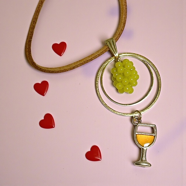 赤ワインネックレス(ぶどう) 赤ワインのチャームと立体的なぶどうのチャームがついたネックレスです。 大きめなトップで存在感抜群! ピアスとお揃いで身につけるのもおすすめです。 ネックレスはお好きな素材・長さをお選びいただけます。全て+5cmのアジャスターがついているので、洋服に合わせて長さの調節ができます。 【サイズ】ワイン:1.0cm×1.9cm サークル部分:2.5cm×2.5cm スエード:45cm(+5cm)、50cm(+5cm)、60cm(+5cm) チェーン:40cm(+5cm)、 45cm(+5cm)、50cm(+5cm) 【素材】ワイン:エナメル スエード:合金、ベルベット チェーン:ステンレススチール ネックレスはお好きな素材・長さをお選びいただけます。全て+5cmのアジャスターがついているので、洋服に合わせて長さの調節ができます。 ★ギフトラッピングはこちら★※発送方法は宅配便になります https://wewearbeer.theshop.jp/items/81507935 同デザインのピアス https://wewearbeer.theshop.jp/items/125616085 ▼ネックレスの種類をお選びください▼(必須)