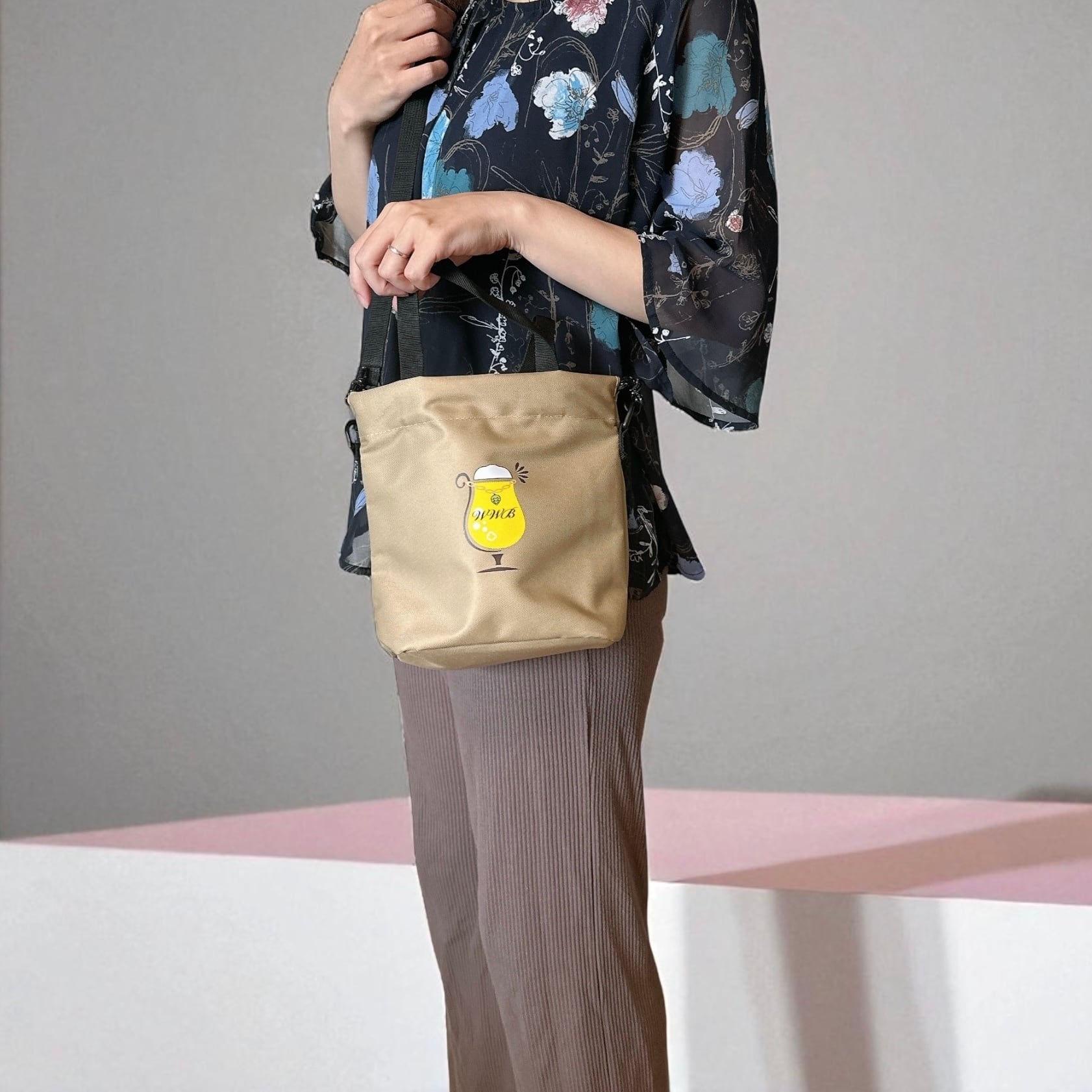 ショルダーバッグ、ミニトート、袋口の紐を縛ると巾着型の3wayでご使用いただけます。