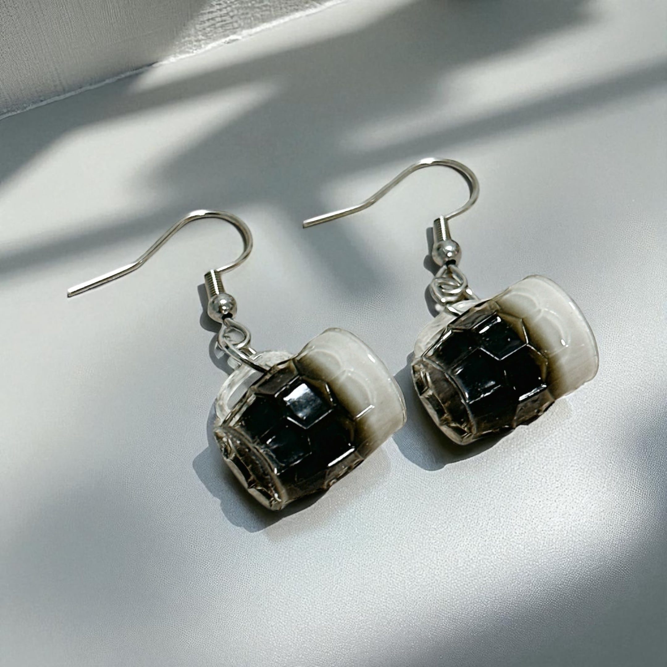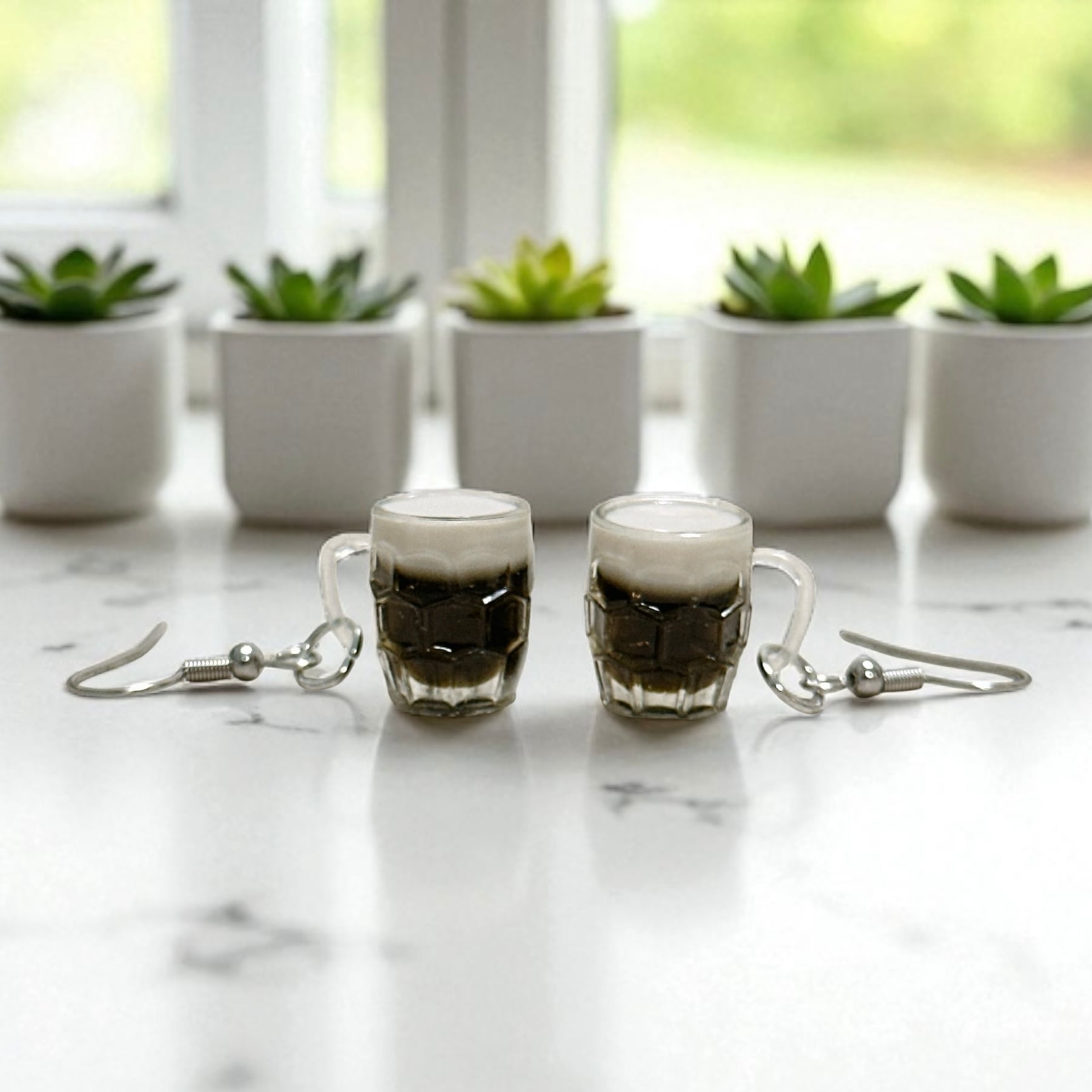 3D BEERピアス ディンプルマグ黒ビール シルバー