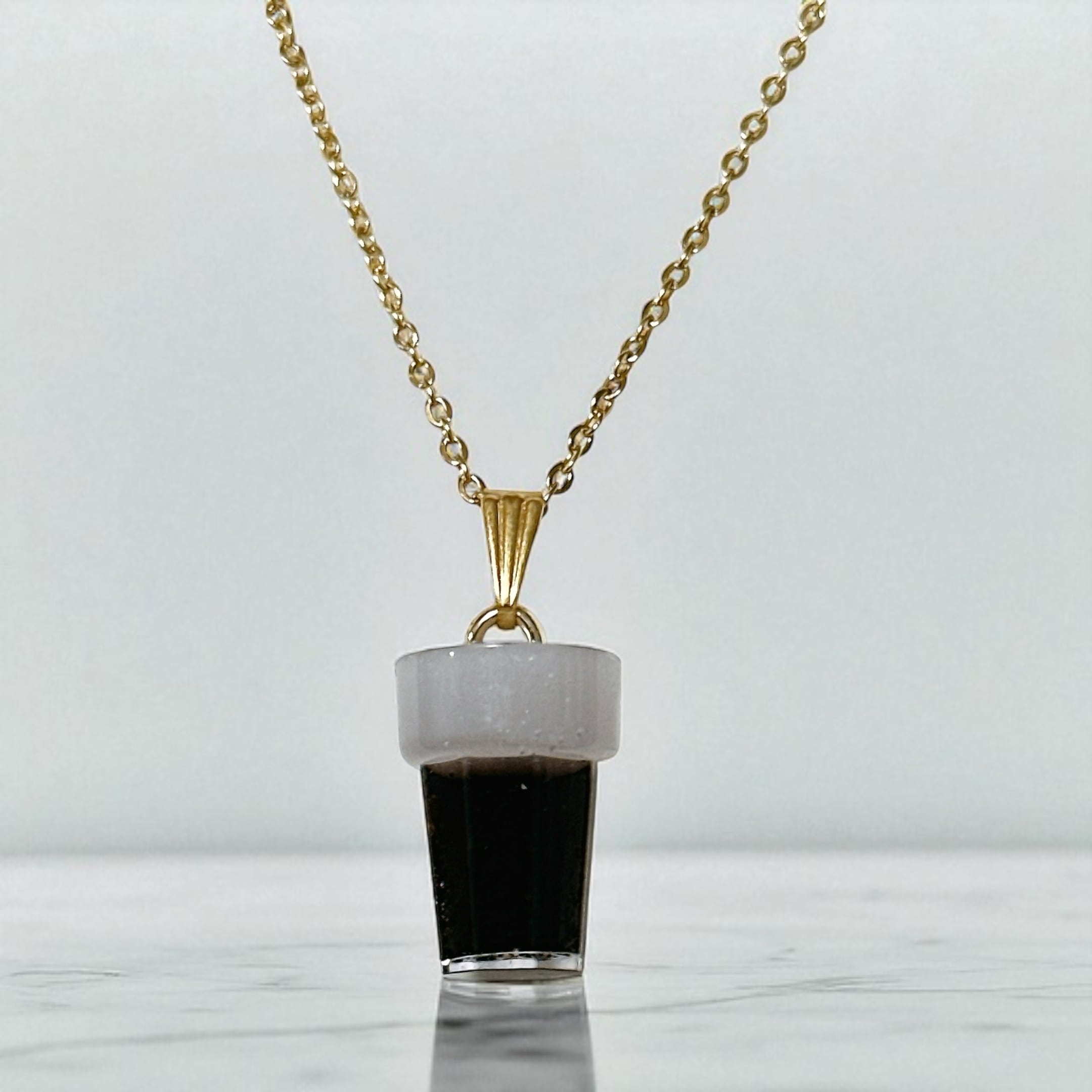 3D BEERキラキラ☆黒ビールネックレス ゴールド