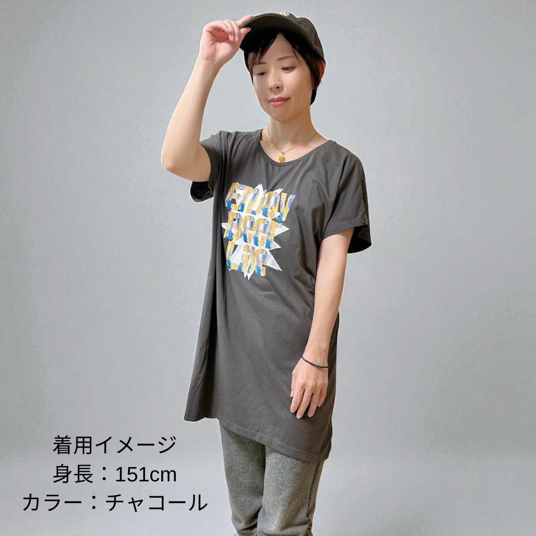 ドルマンスリーブのロング丈Tシャツです。
