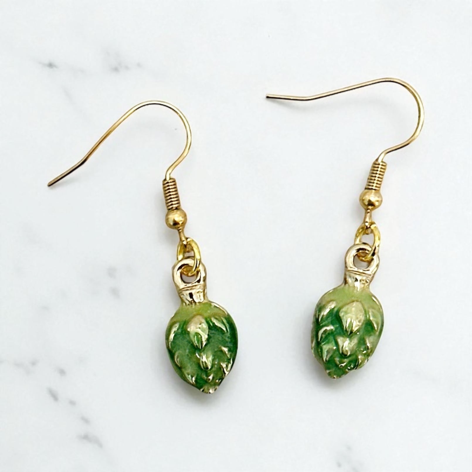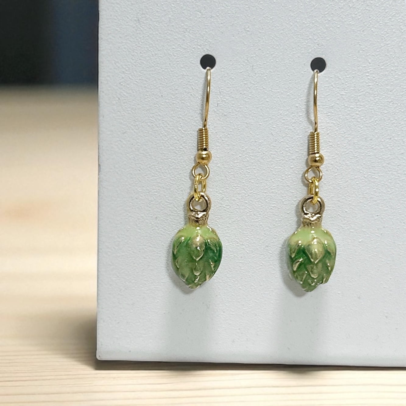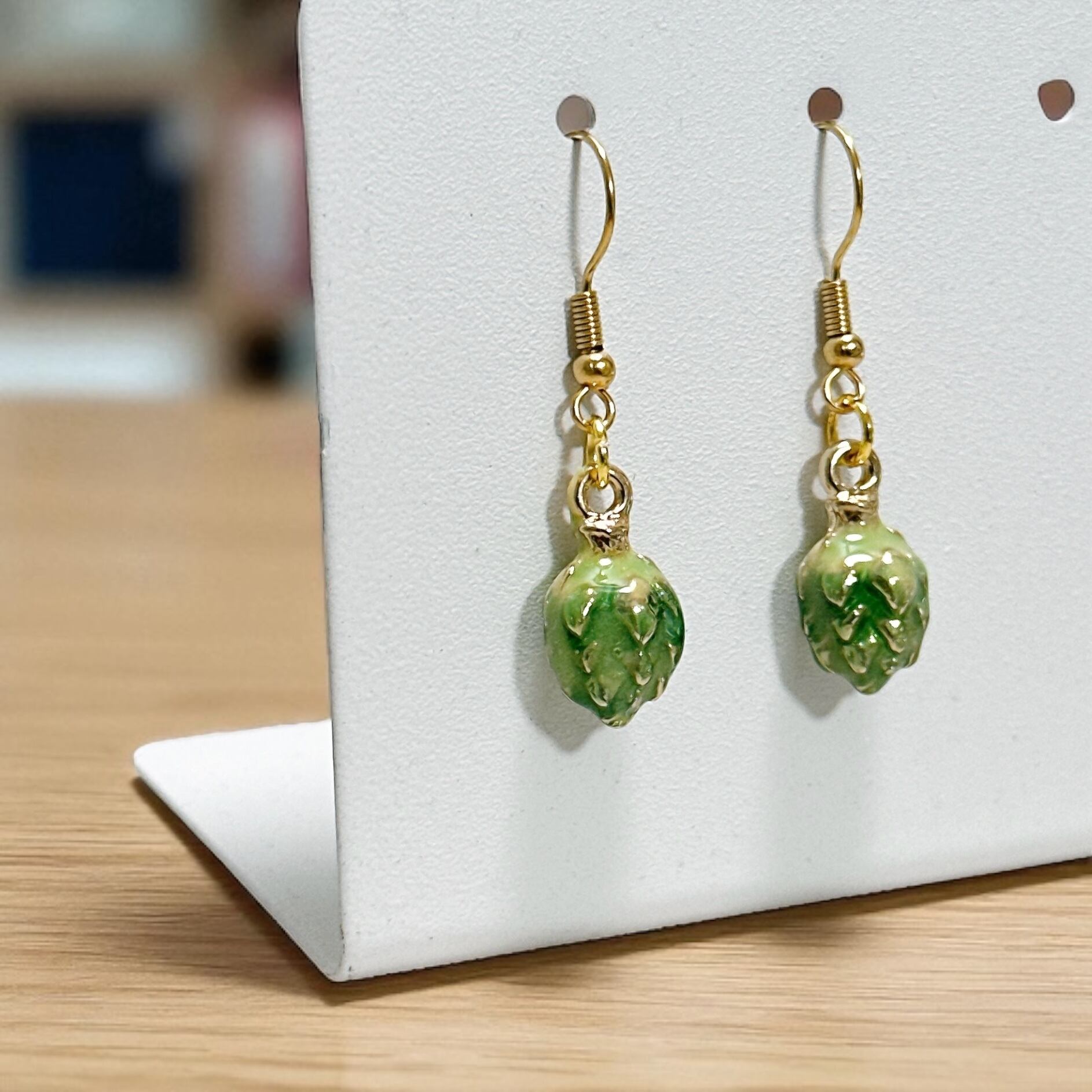 ころんと丸いフォルムがかわいい、立体的なホップのピアスです。