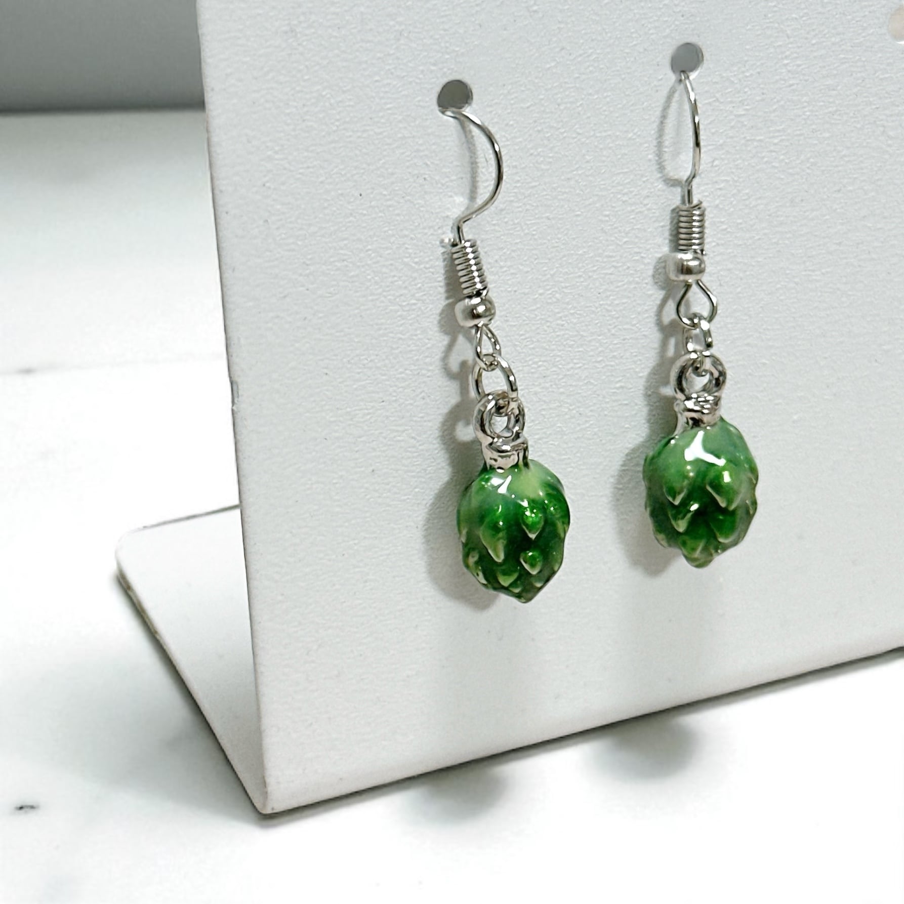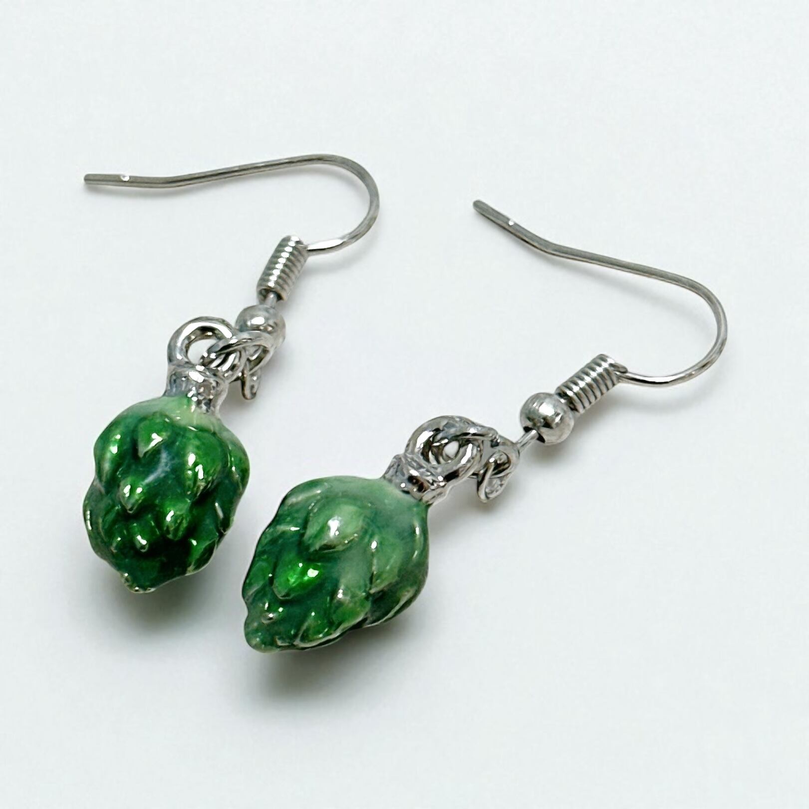 ころんと丸いフォルムがかわいい、立体的なホップのピアスです。
