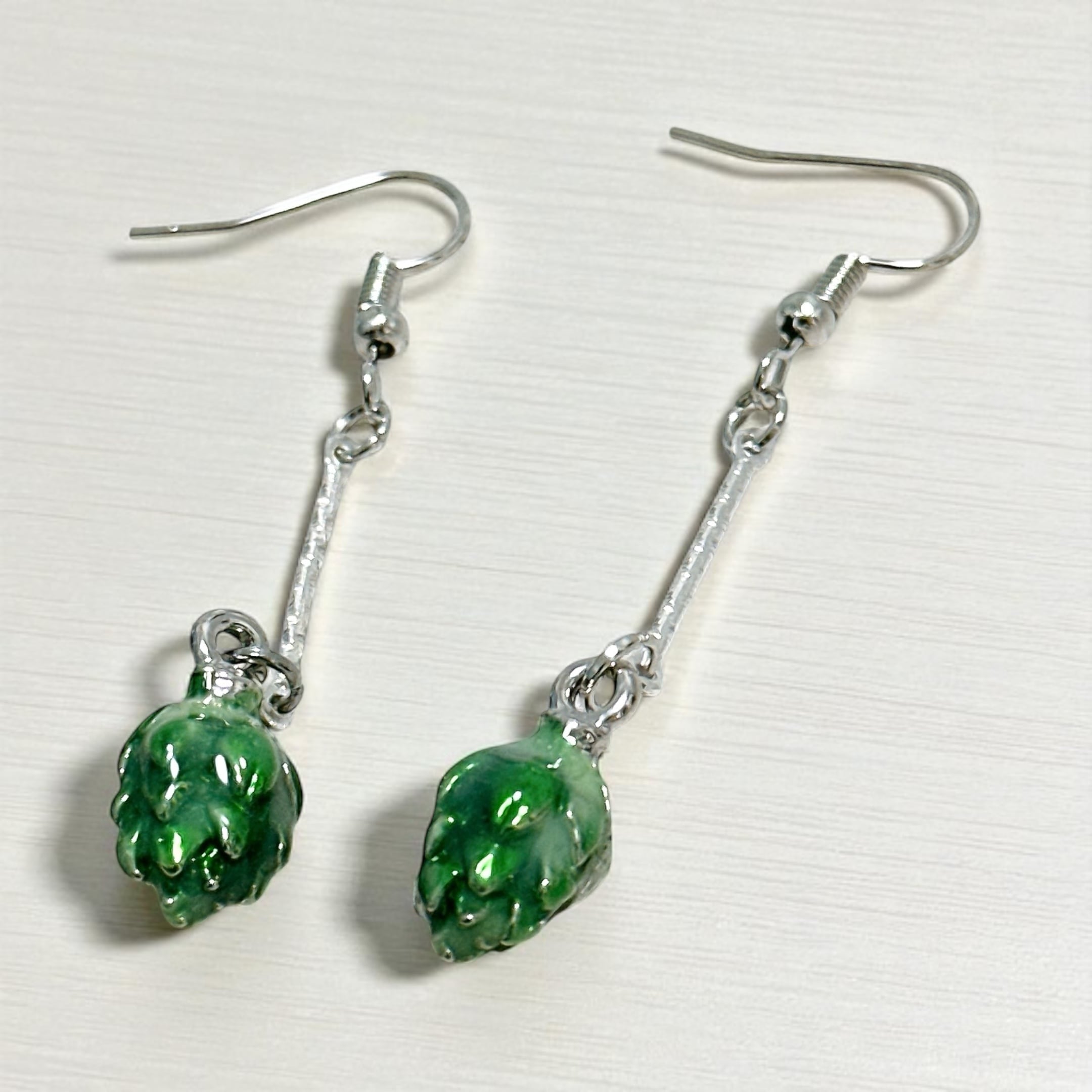 ころんと丸いフォルムがかわいい、立体的なホップのピアスです。