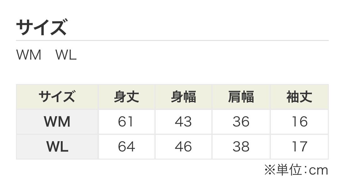 【サイズ】WM、WL(サイズは画像の表参照)