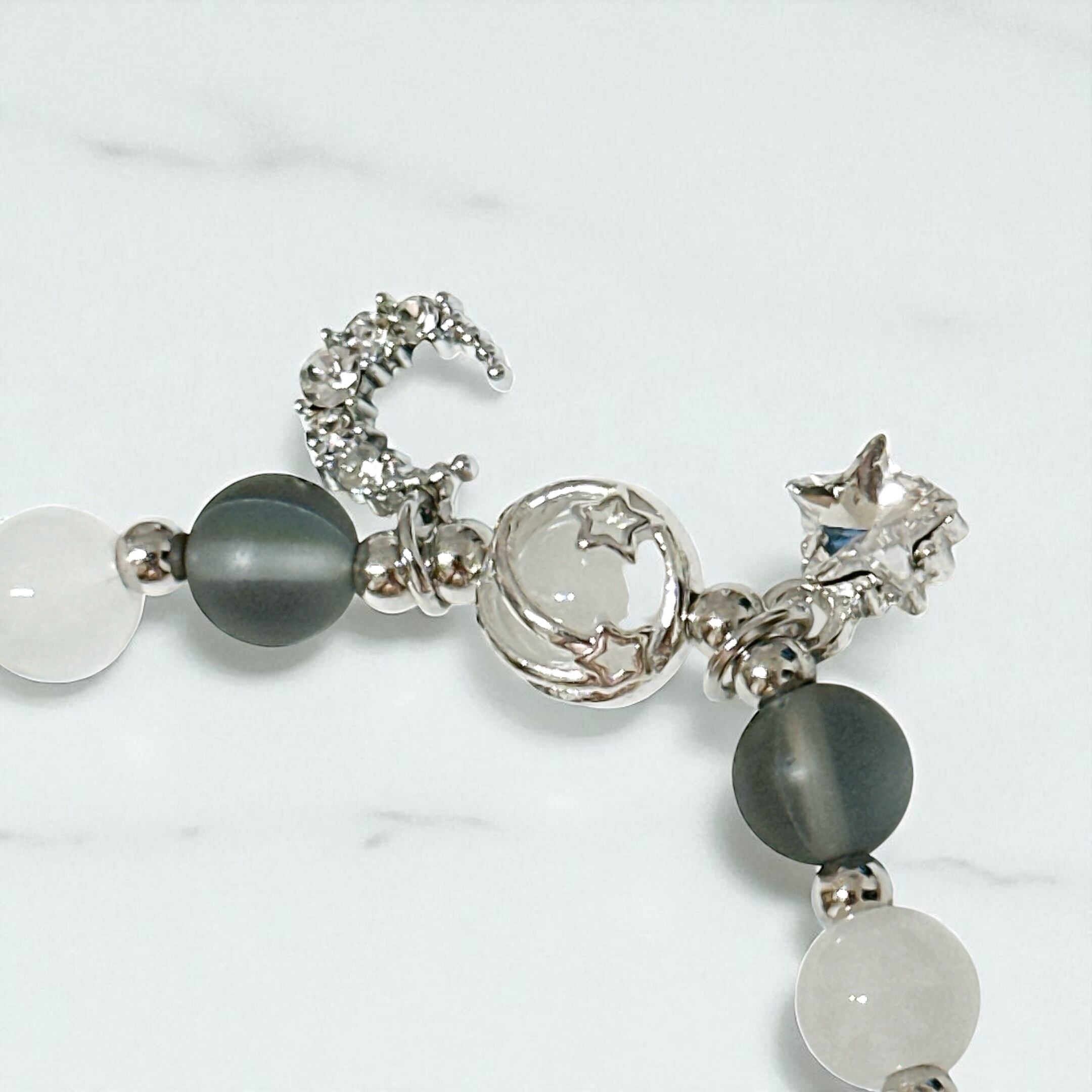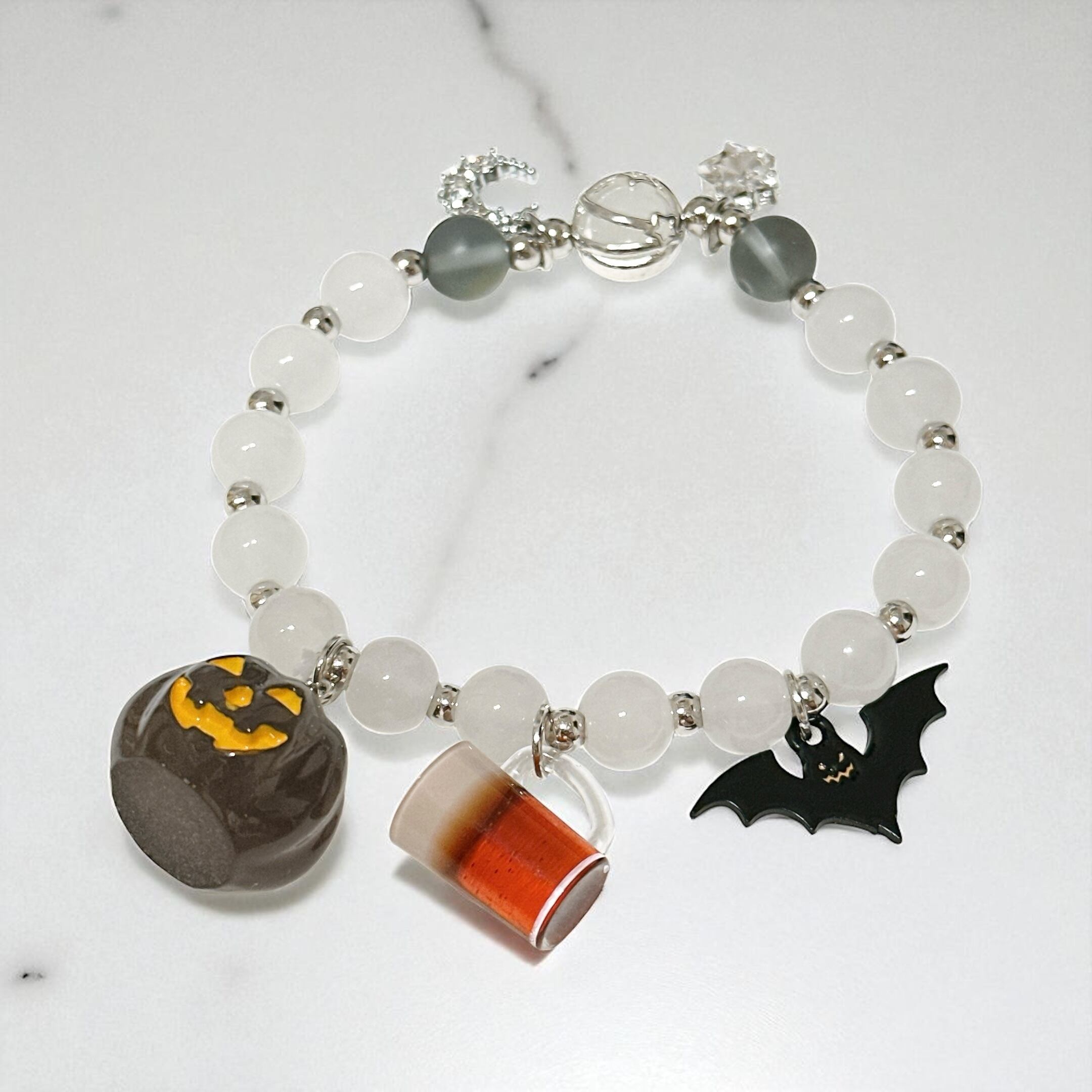 ハロウィンの夜をイメージしたブレスレットは、逆側にも月と星のチャームがついており、手首の方も綺麗に彩ります。