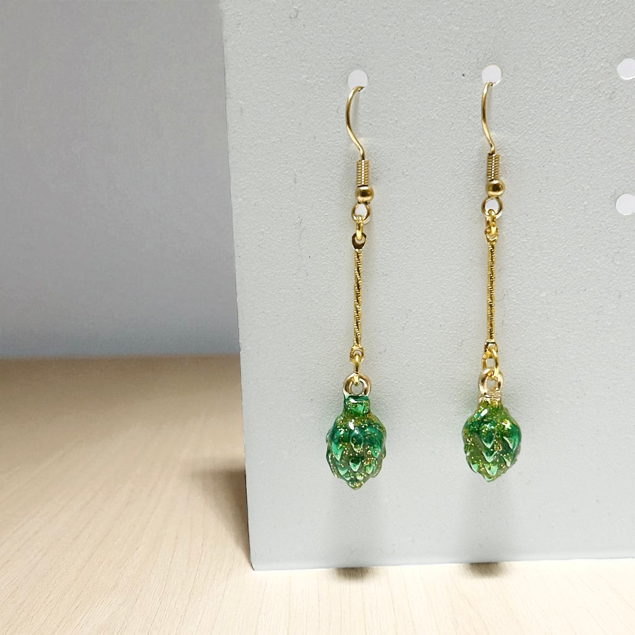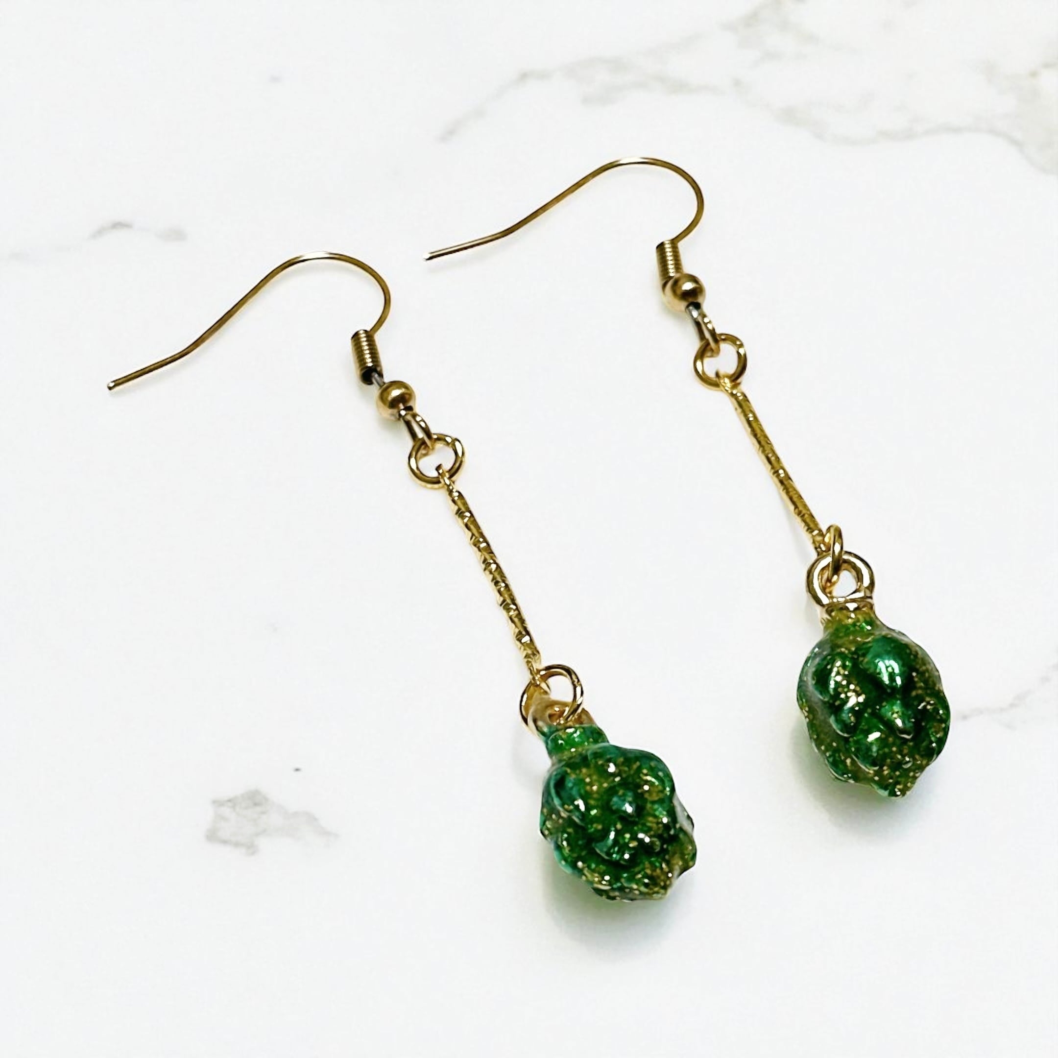ころんと丸いフォルムがかわいい、立体的なホップのピアスです。