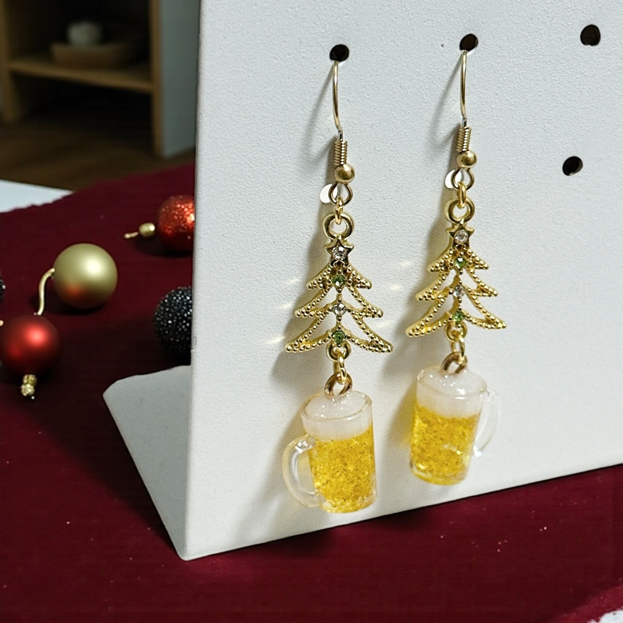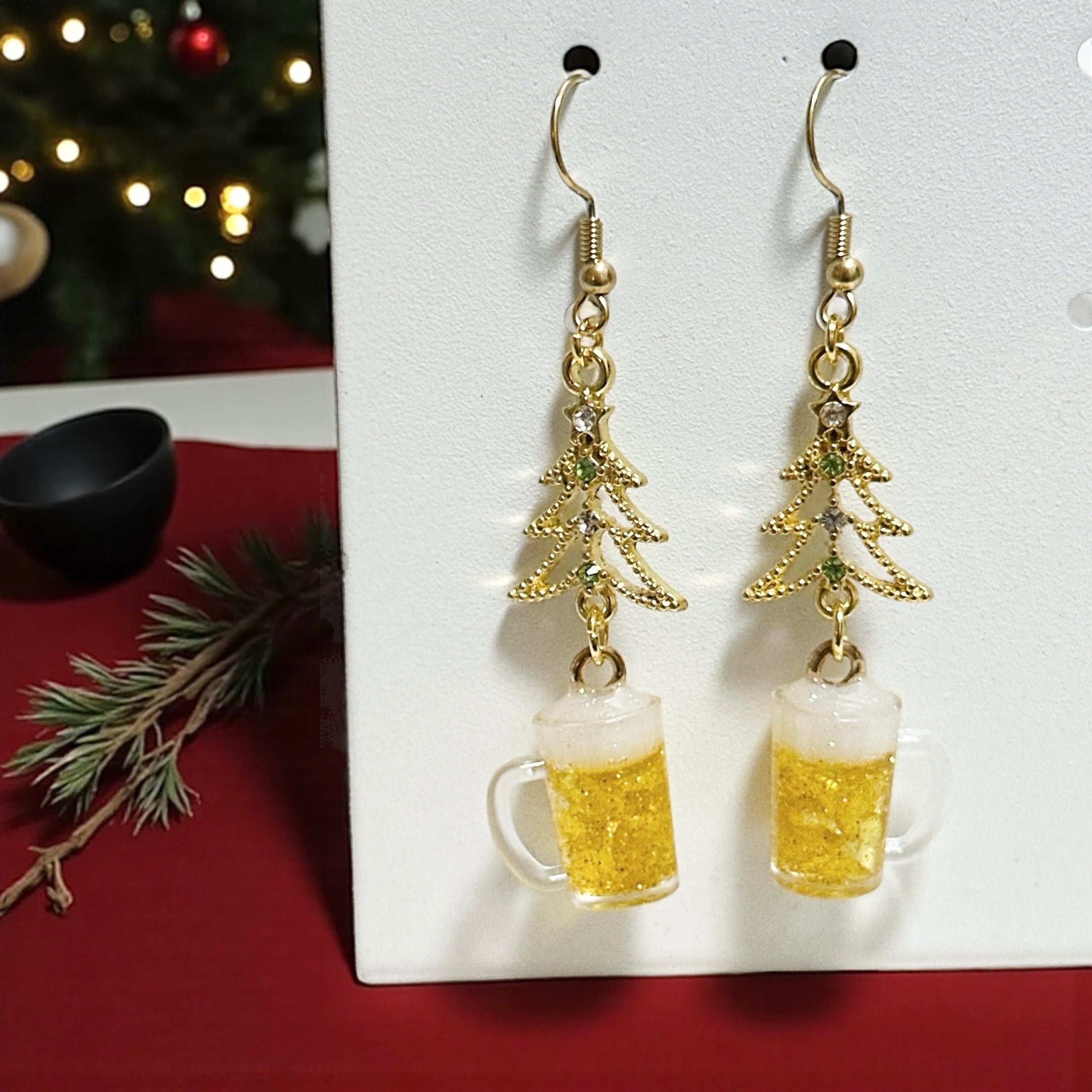 クリスマスツリーのチャームと3D BEERキラキラ☆ビールジョッキの組み合わせのピアスです。
