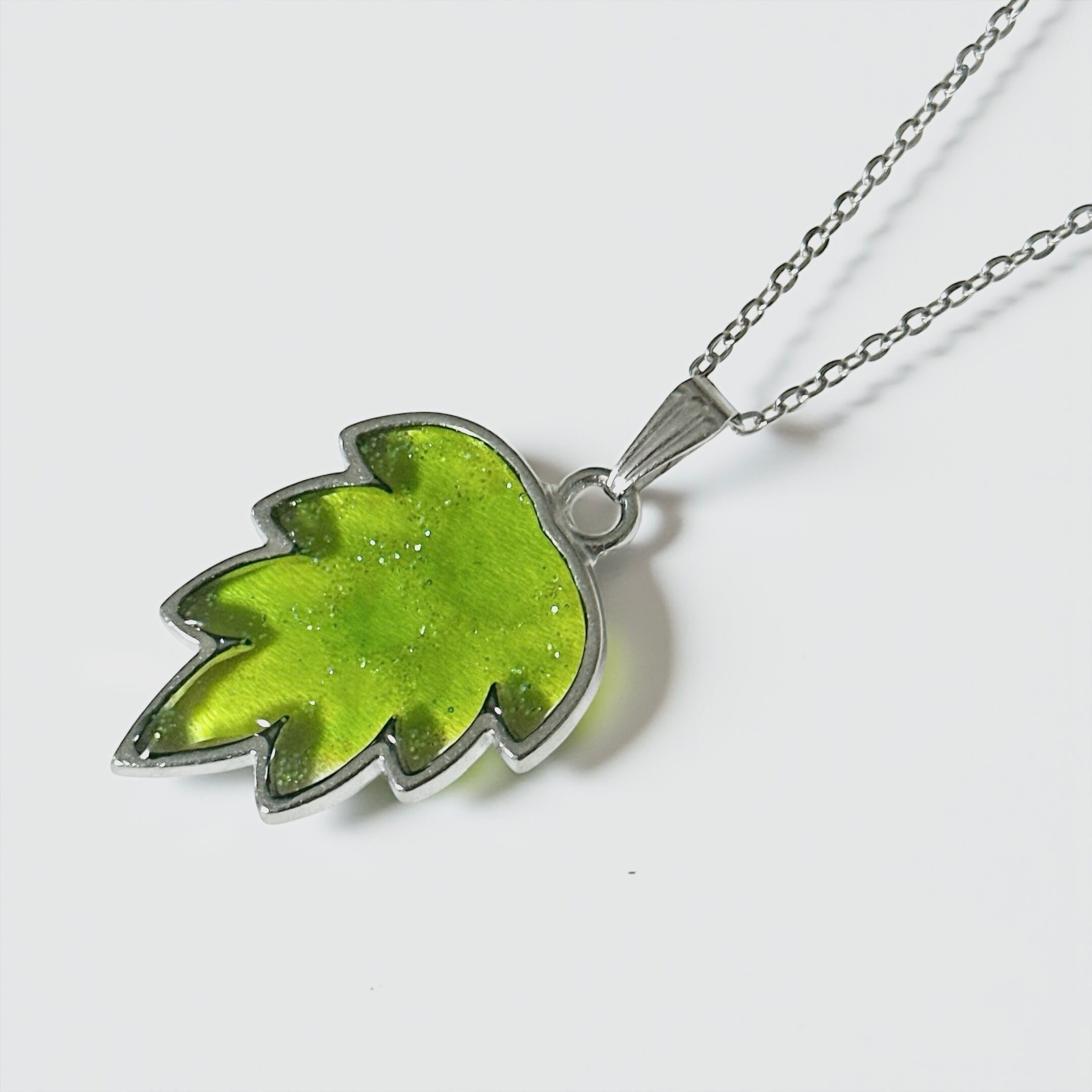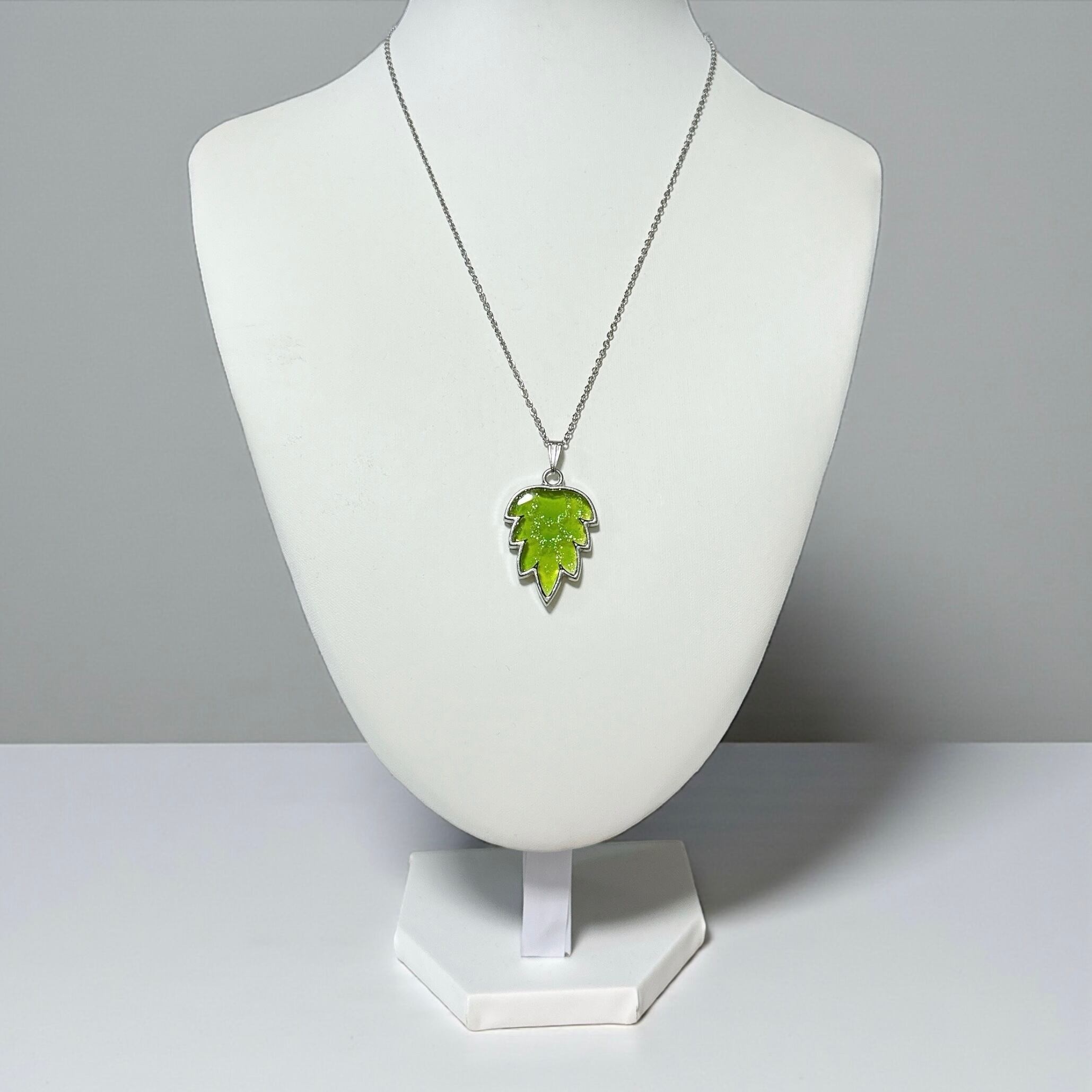 クリアなライトグリーンをベースに、ラメでホップの模様を描いています。