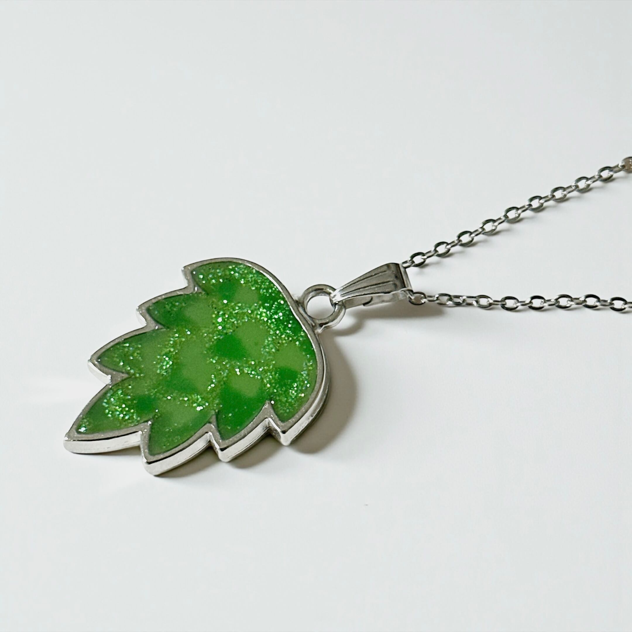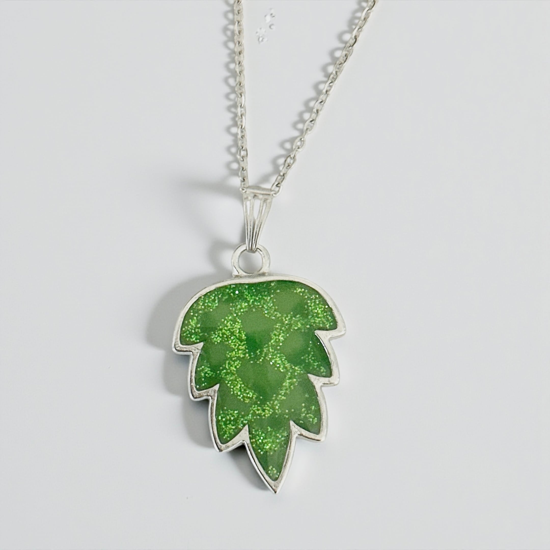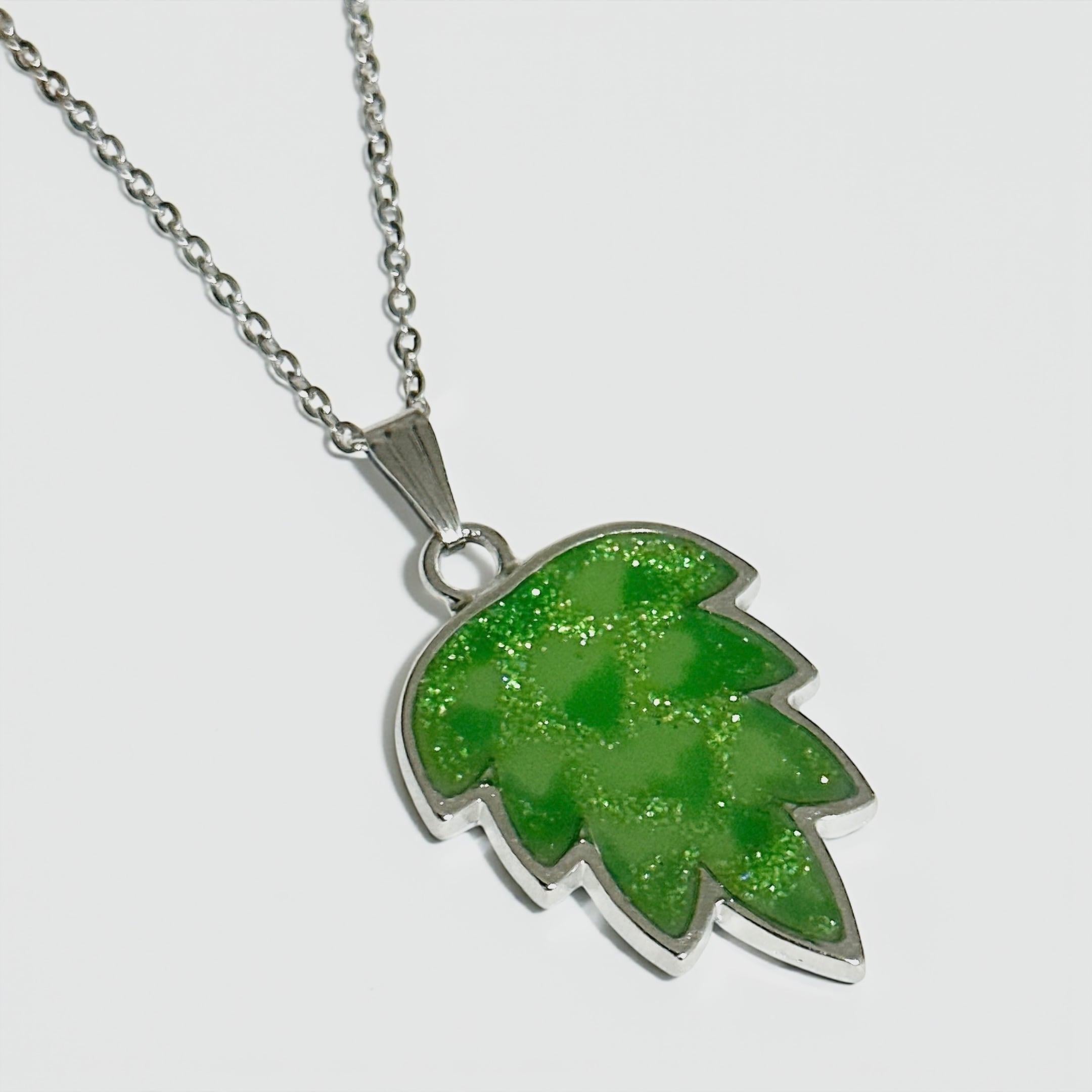 マットなライトグリーンをベースに、ラメでホップの模様を描いています。