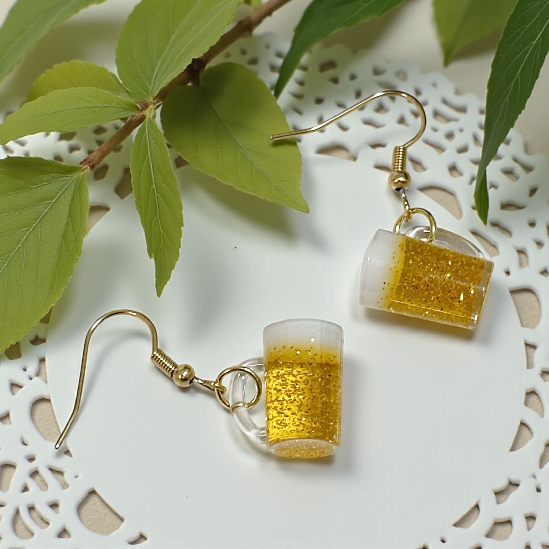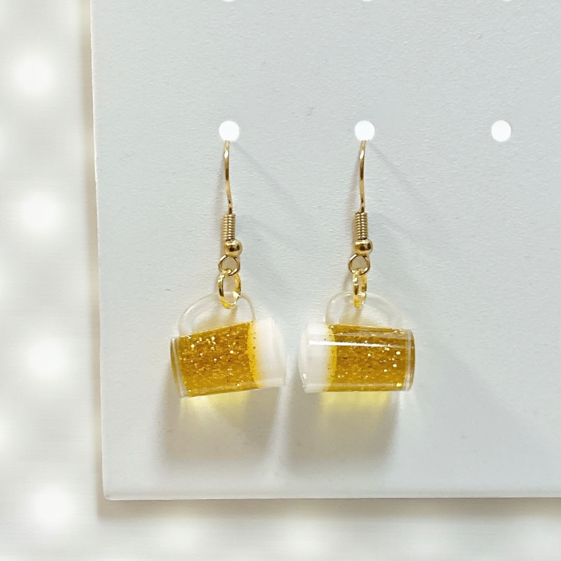 3D BEERピアス ビールジョッキ(ラメ入り)