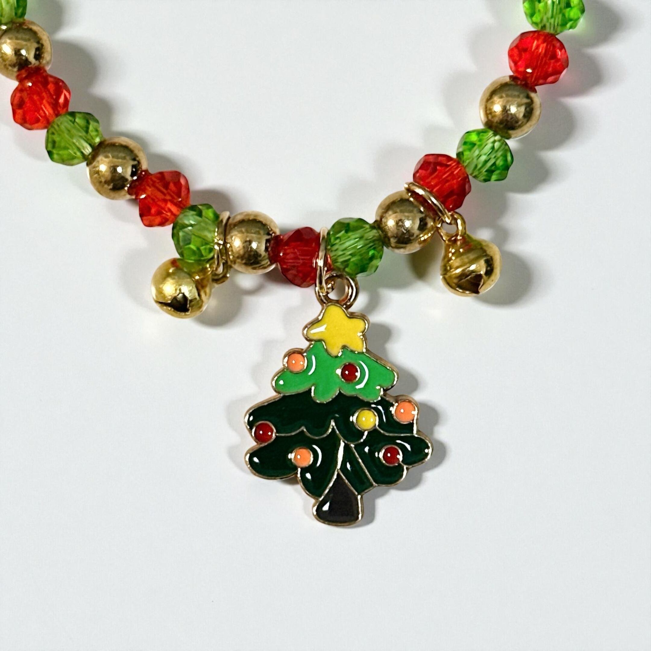 ブレスレットのビーズは、クリスマスをイメージしたレッド・グリーン・ゴールドの組み合わせ!