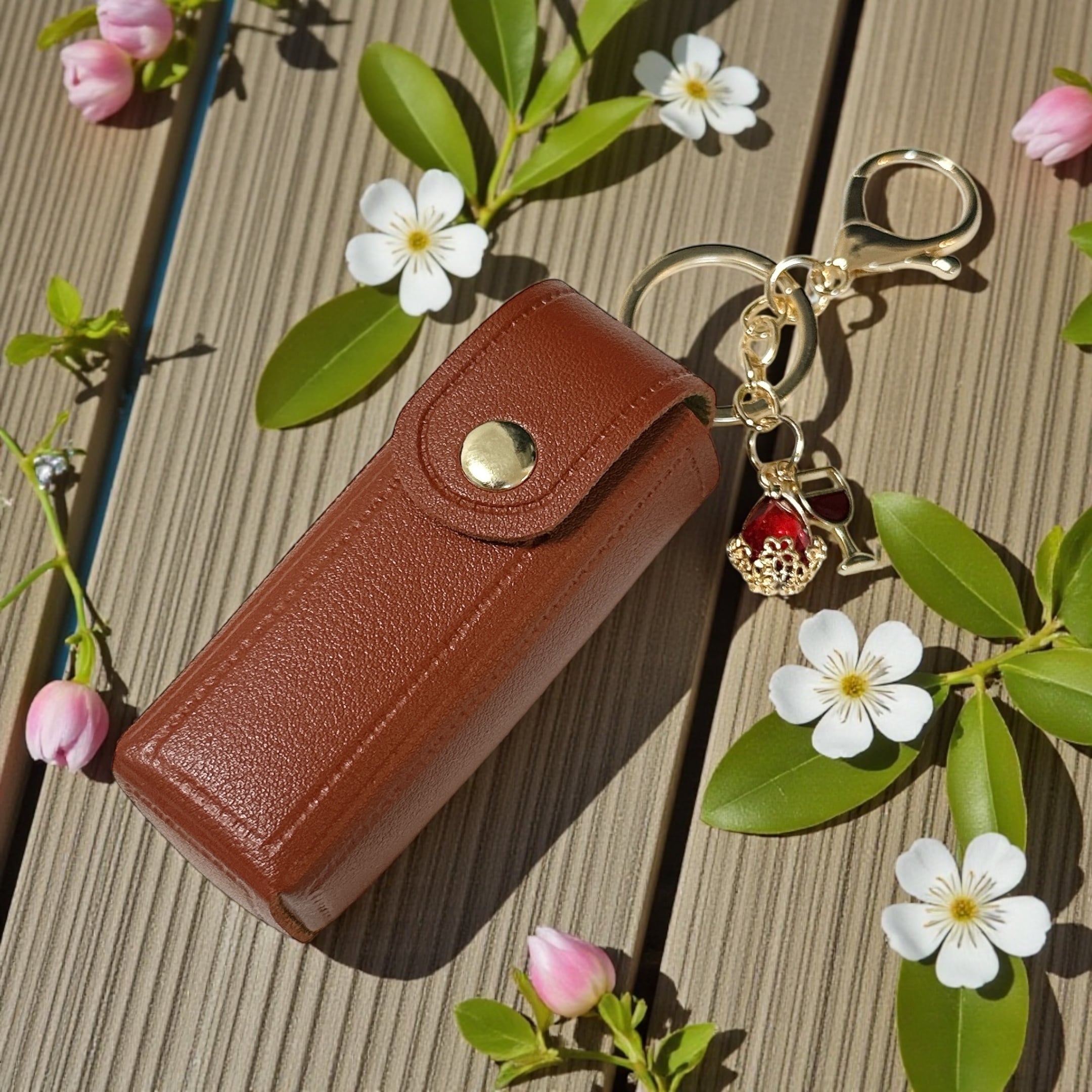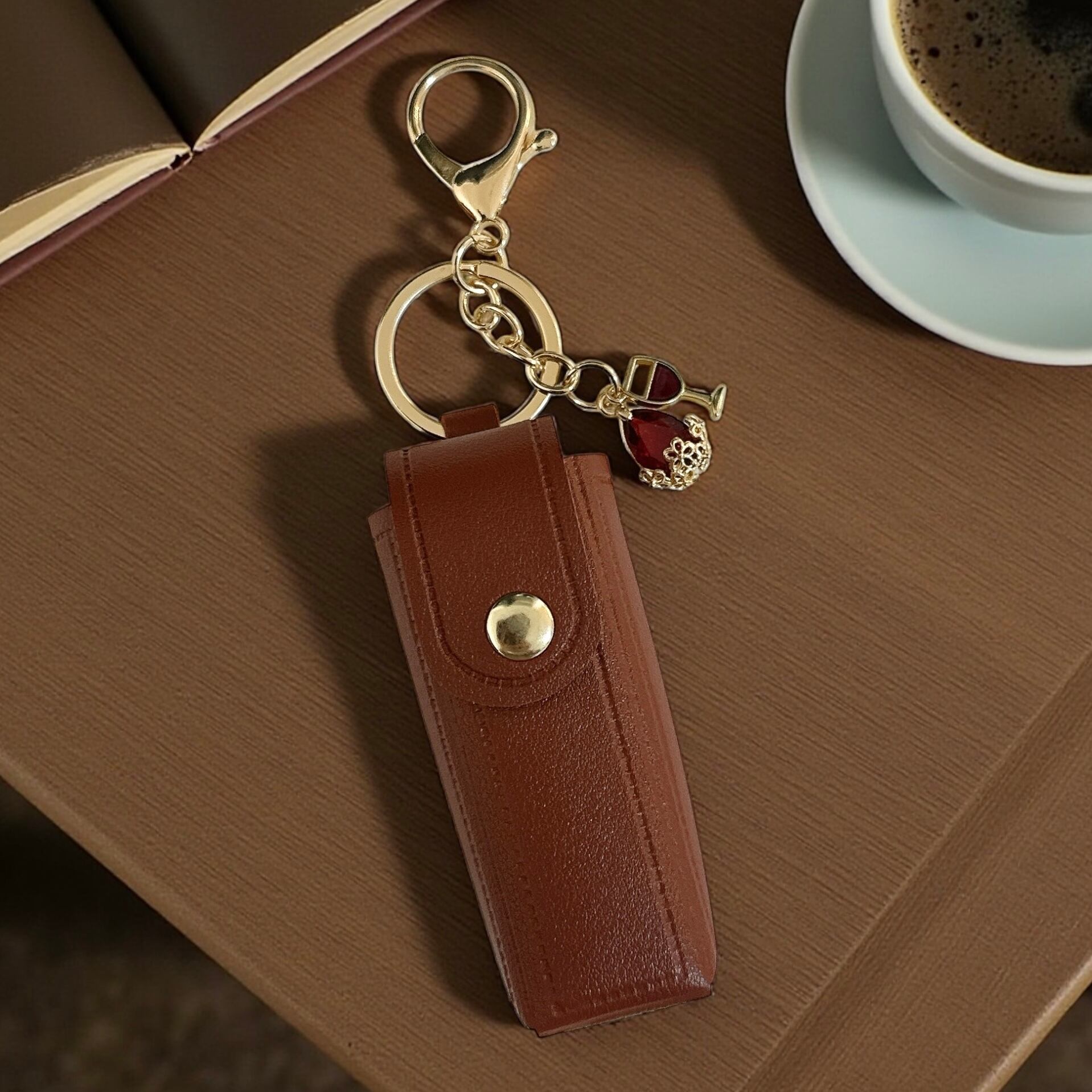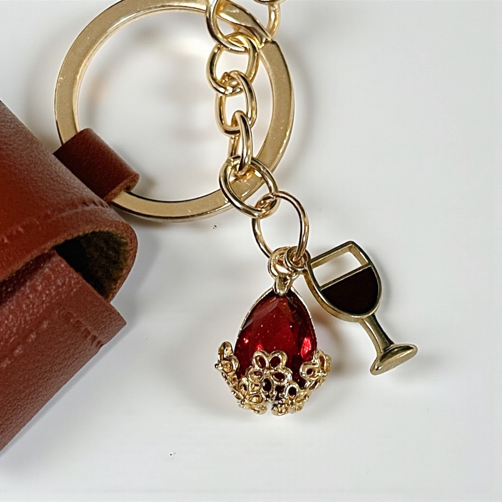 赤ワインのチャームと雫型のガラスチャームが付いたリップケースです。