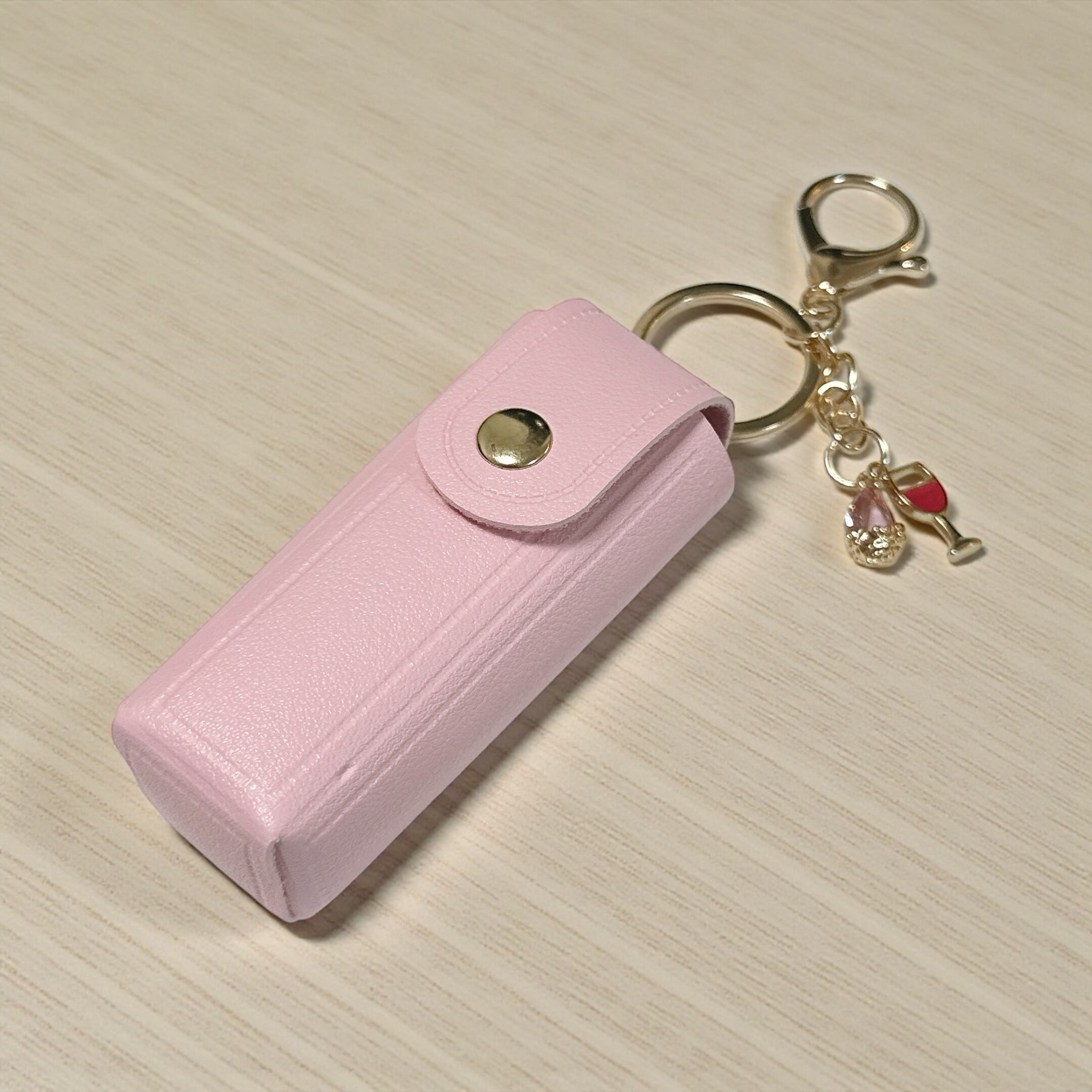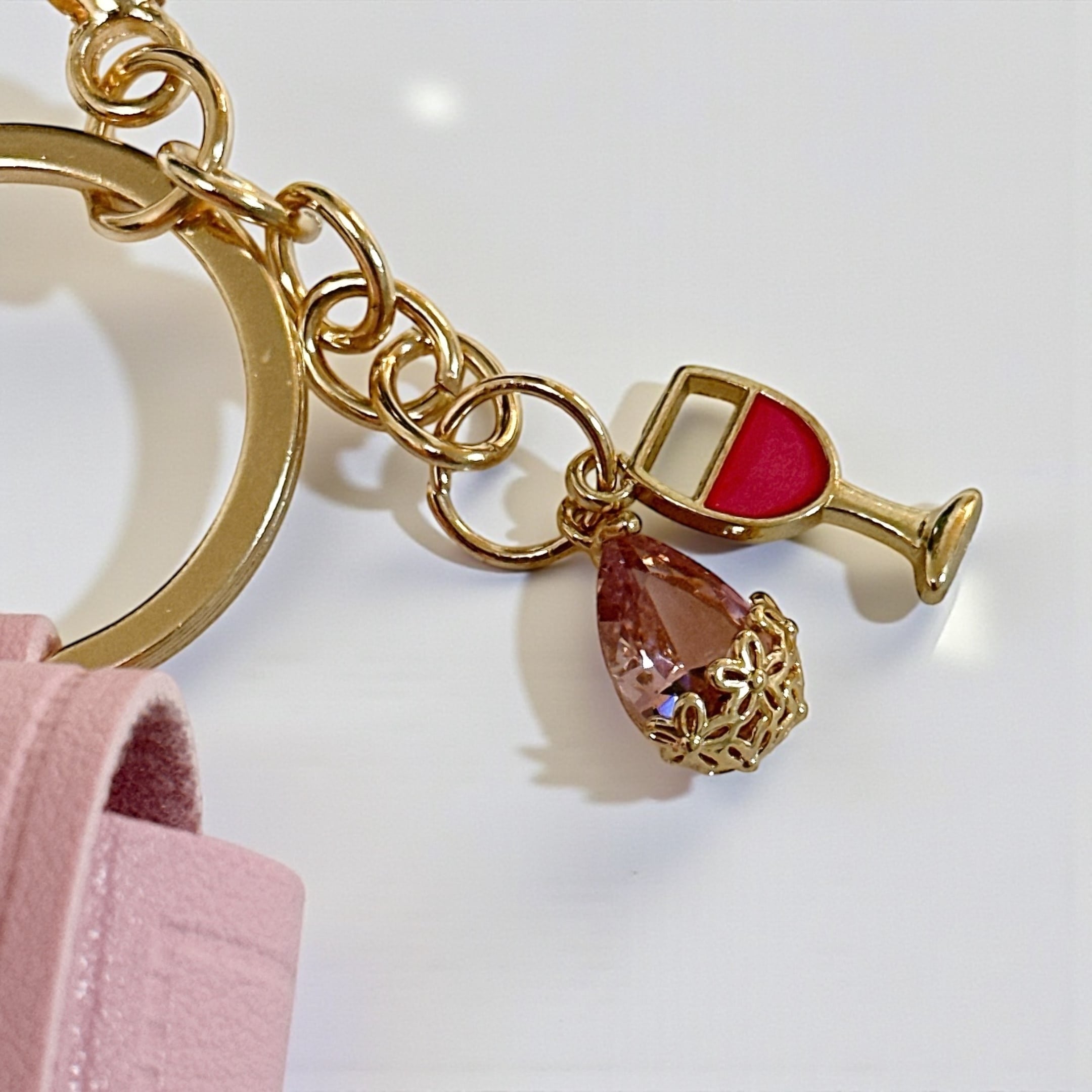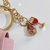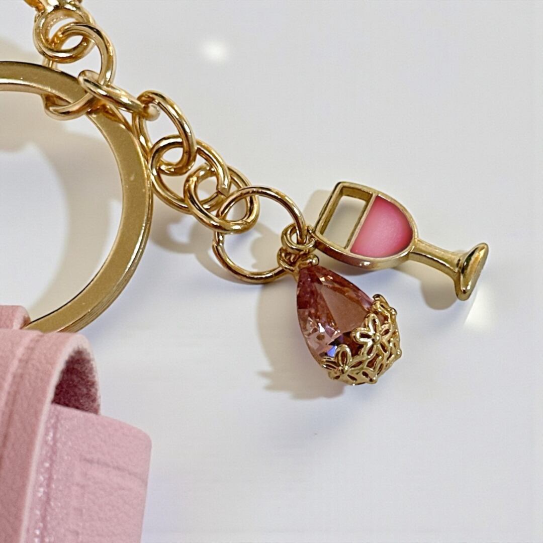 白ワインのチャームと雫型のガラスチャームが付いたリップケースです。