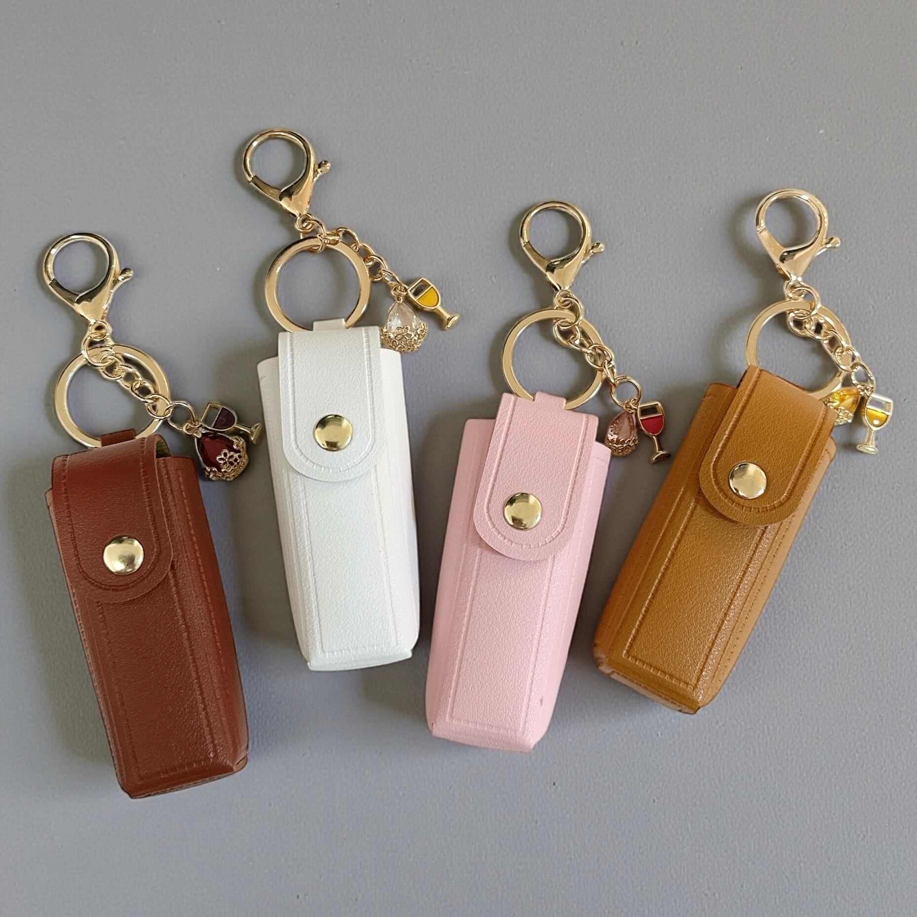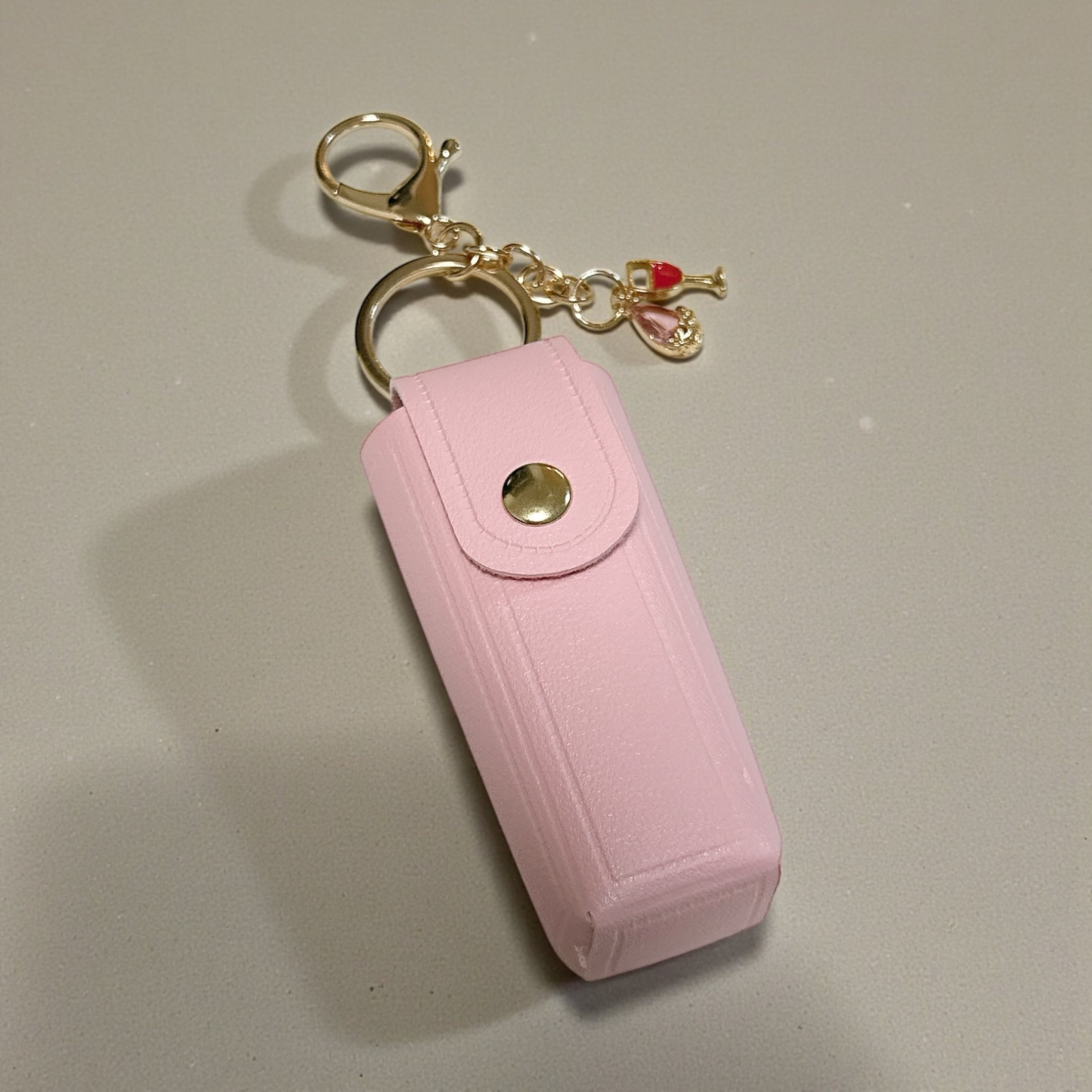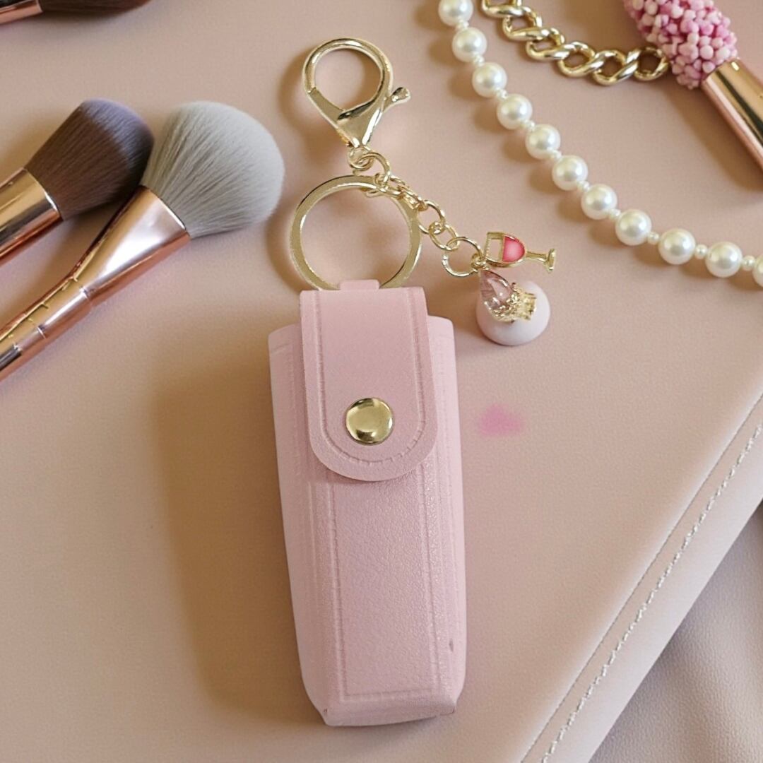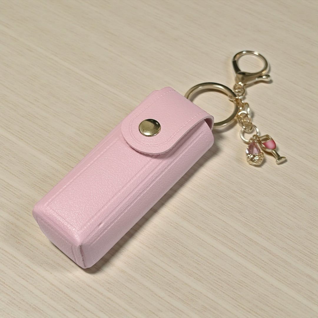 白ワインのチャームと雫型のガラスチャームが付いたリップケースです。