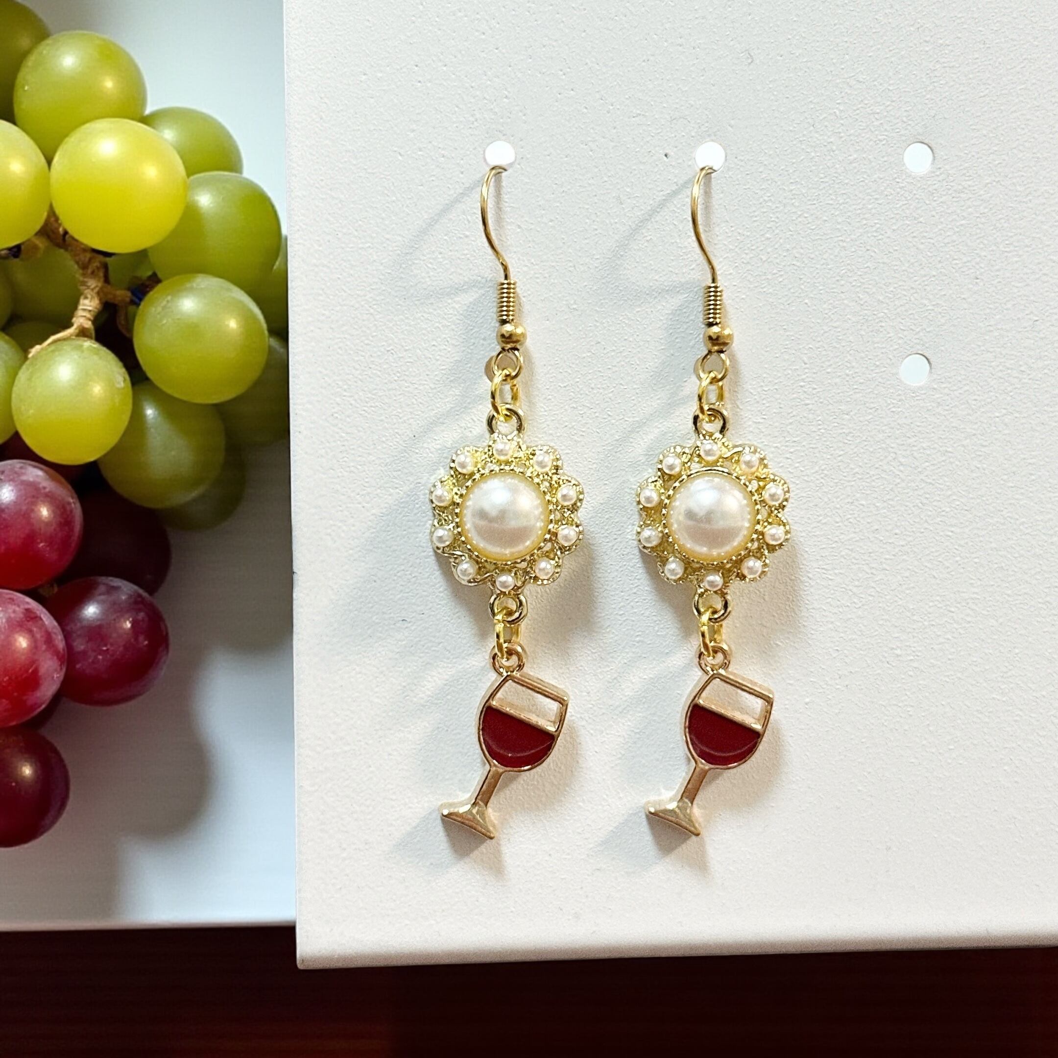 ゆらゆらと揺れる長さのピアスでさり気なくワイン好きをアピール♪