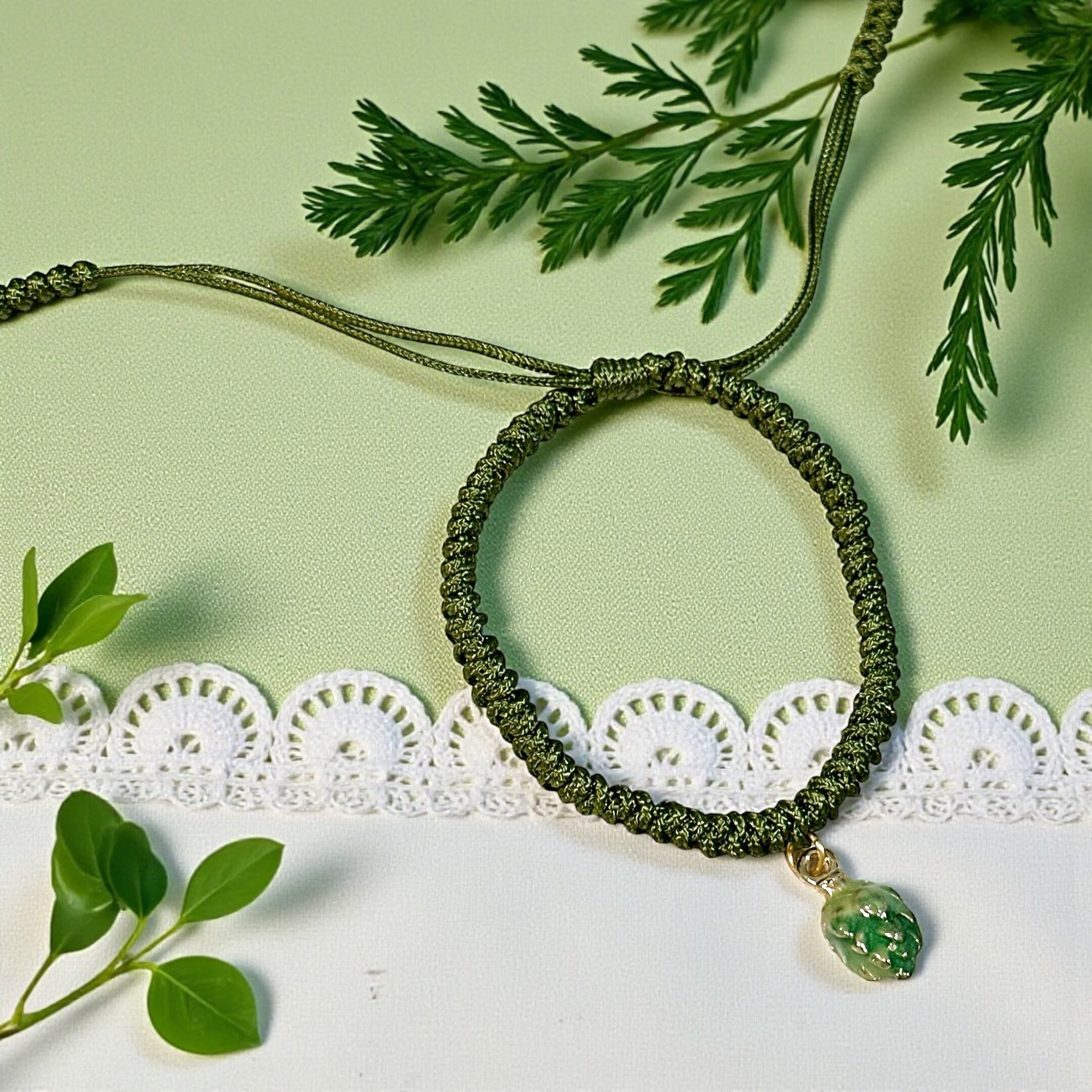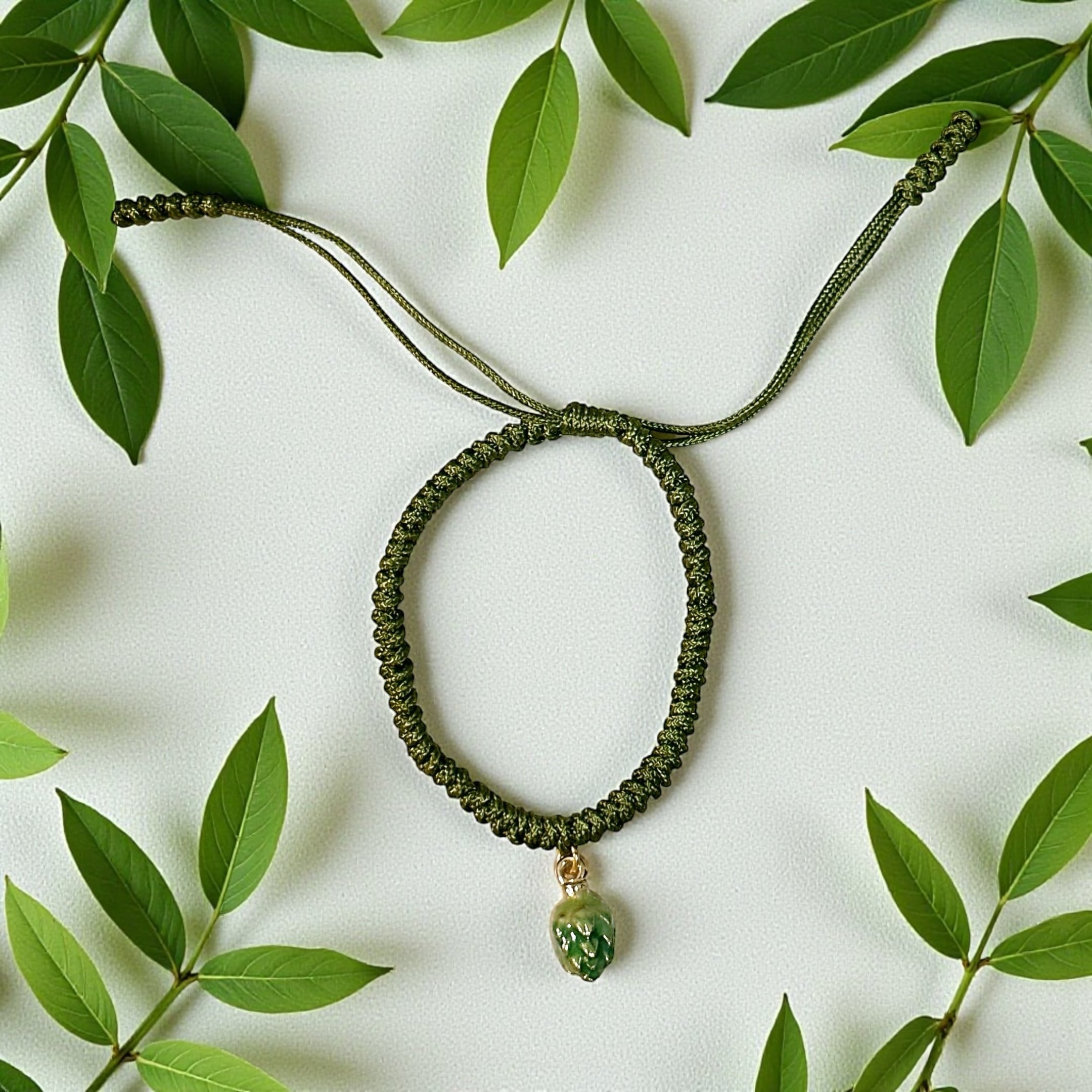 長さの調節がしやすい紐のブレスレットに、3Dホップチャームがついています。