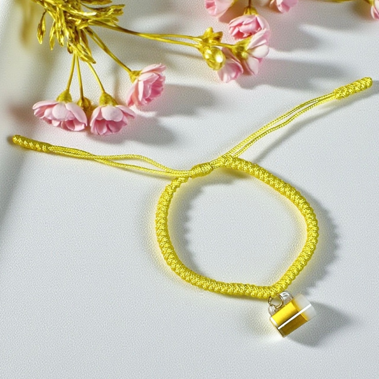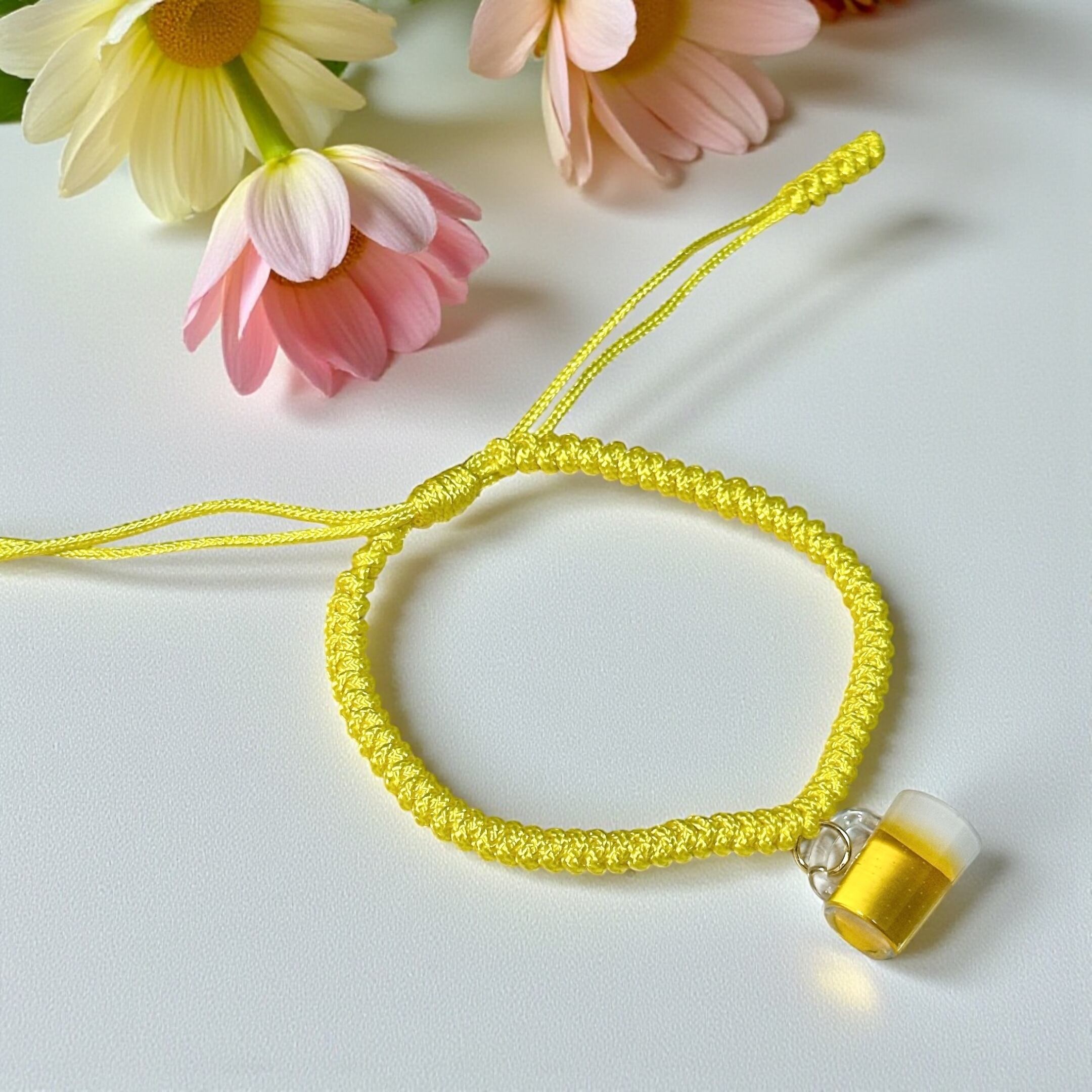 長さの調節がしやすい紐のブレスレットに、3D BEERビールジョッキのチャームがついています。