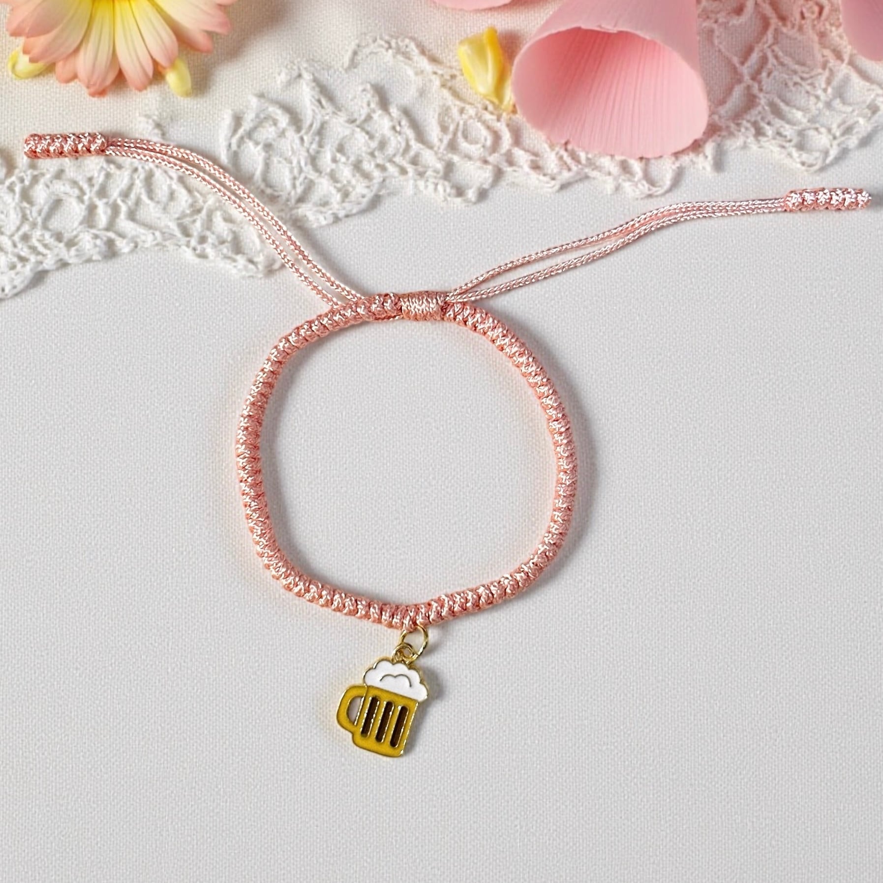 長さの調節がしやすい紐のブレスレットに、Colorful beersイエローチャームがついています。