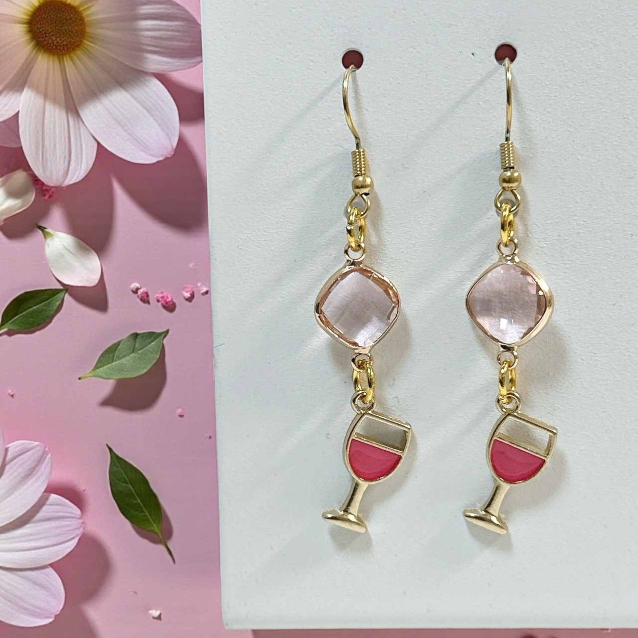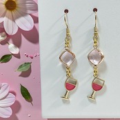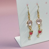 ロゼワインチャームと薄いピンクのガラスストーンのチャームがついたピアスです。