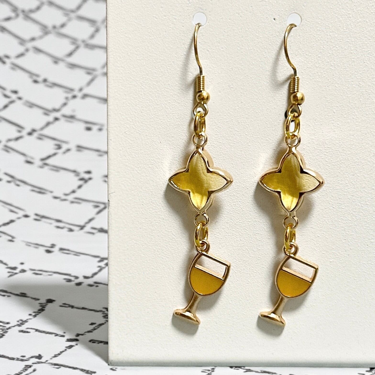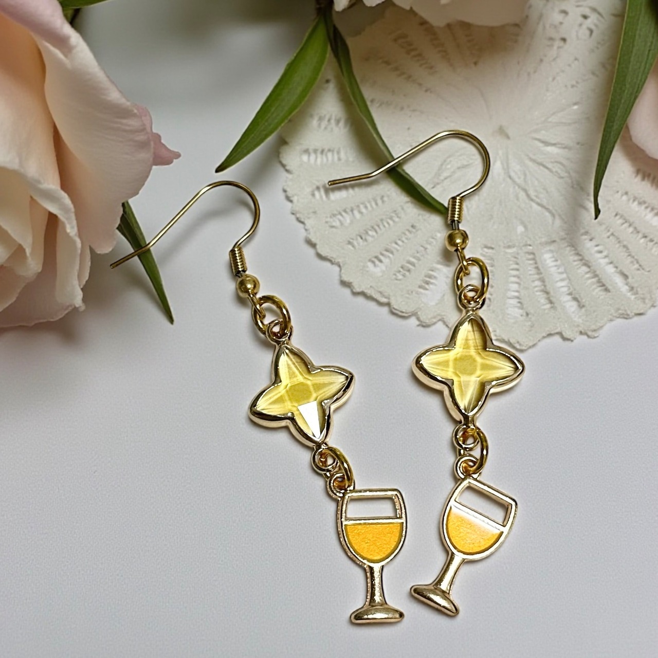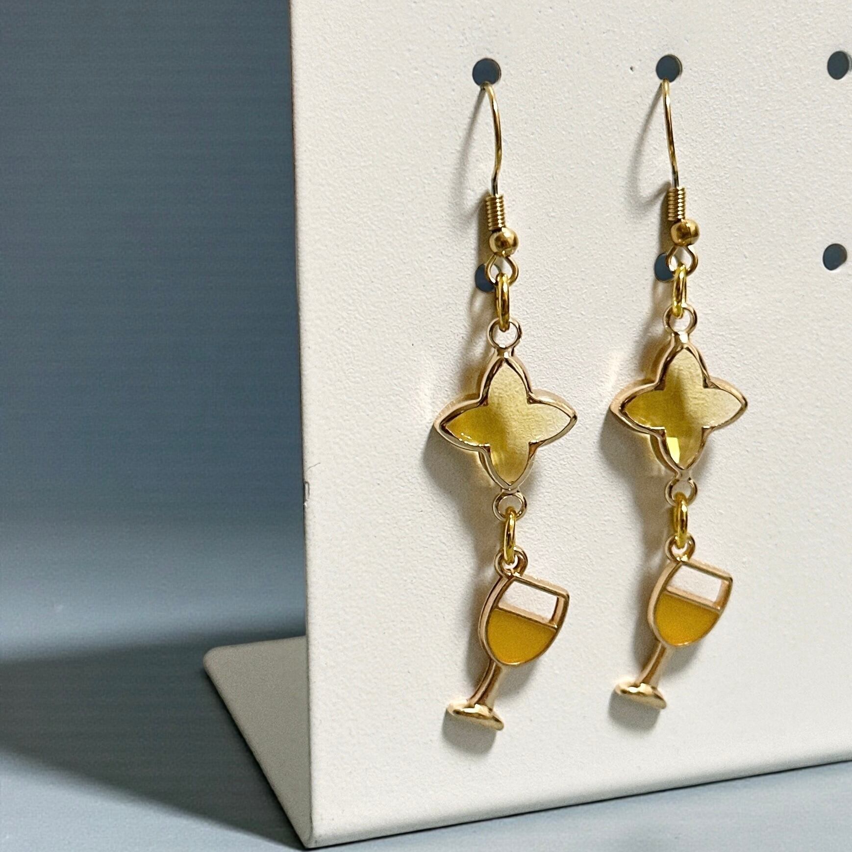 白ワインチャームと明るいイエローのガラスストーンのチャームがついたピアスです。