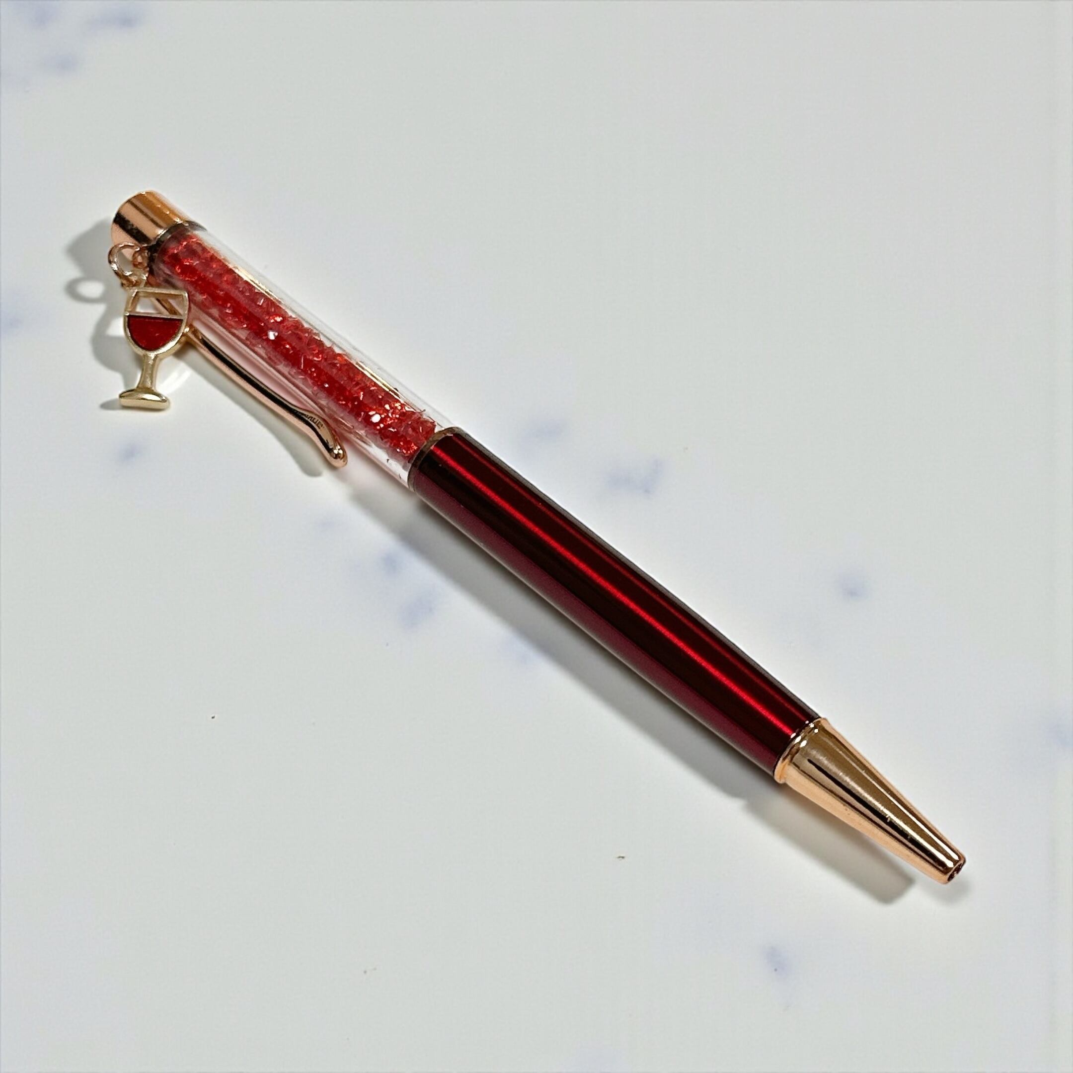 赤ワインのチャームがついたボールペンです。