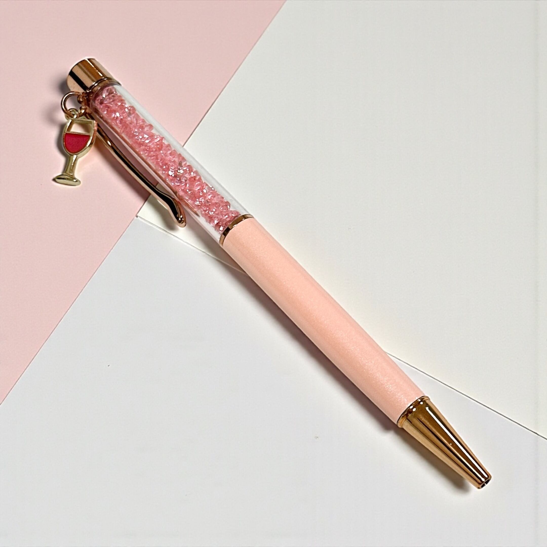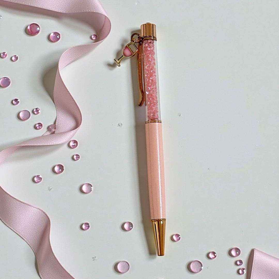 中のビーズと上部のストーンはピンク、グリップ部分はペールピンクで可愛らしいイメージです。