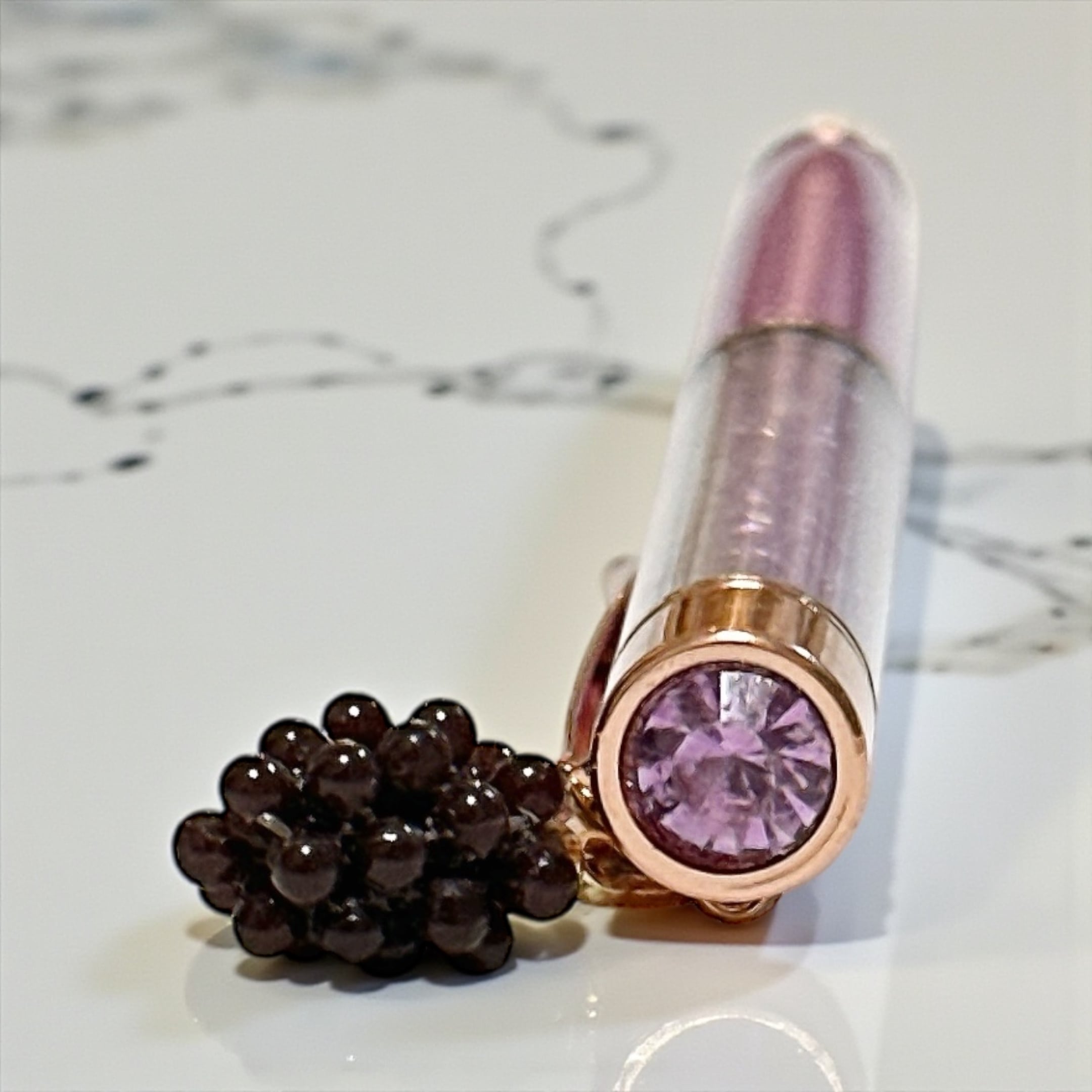 中のビーズや上部のストーン、グリップ部分もパープルで揃えています。