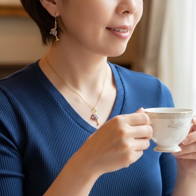 パーティードレスなどの華やかな服装にも合わせやすく、ラグジュアリーな空間にも馴染みます。