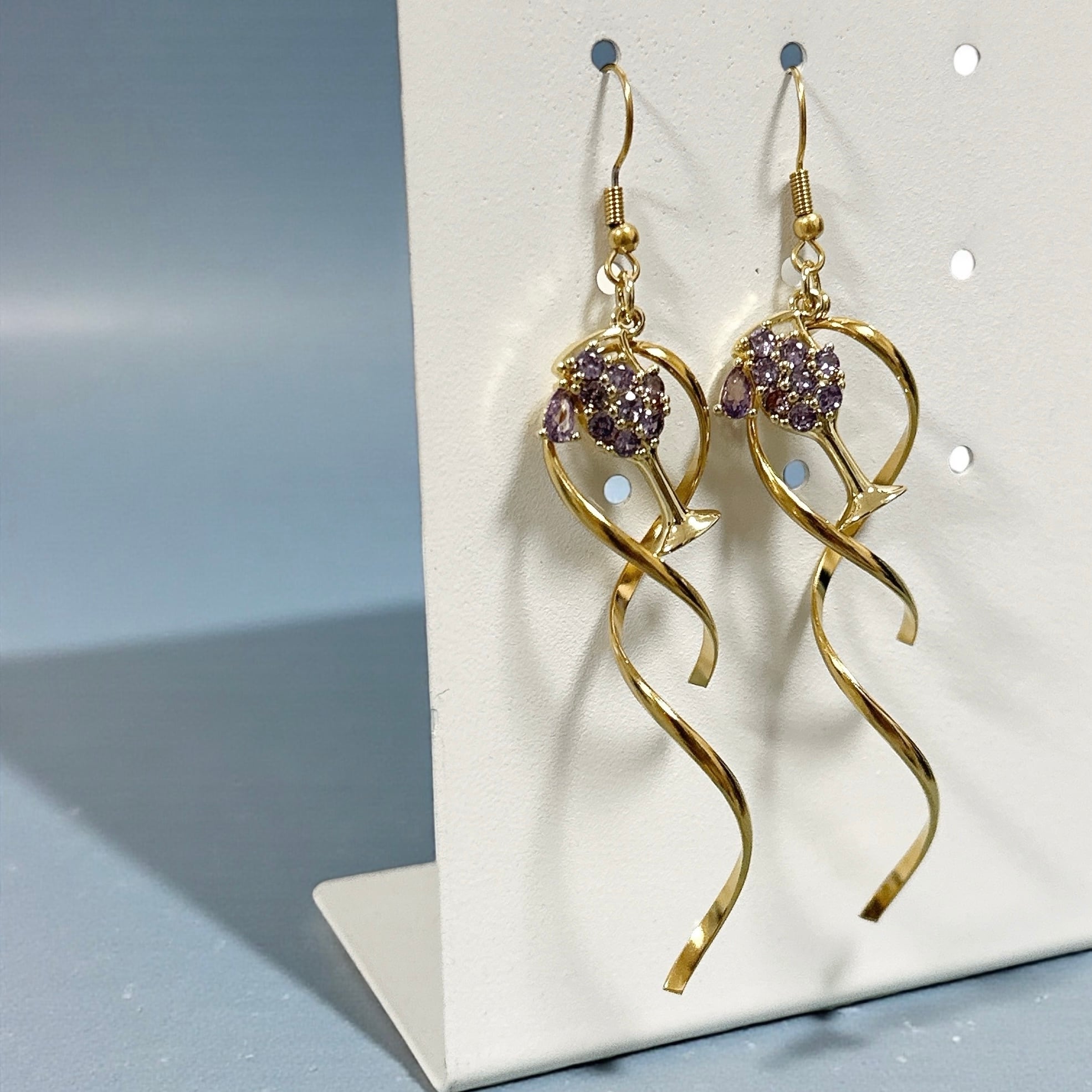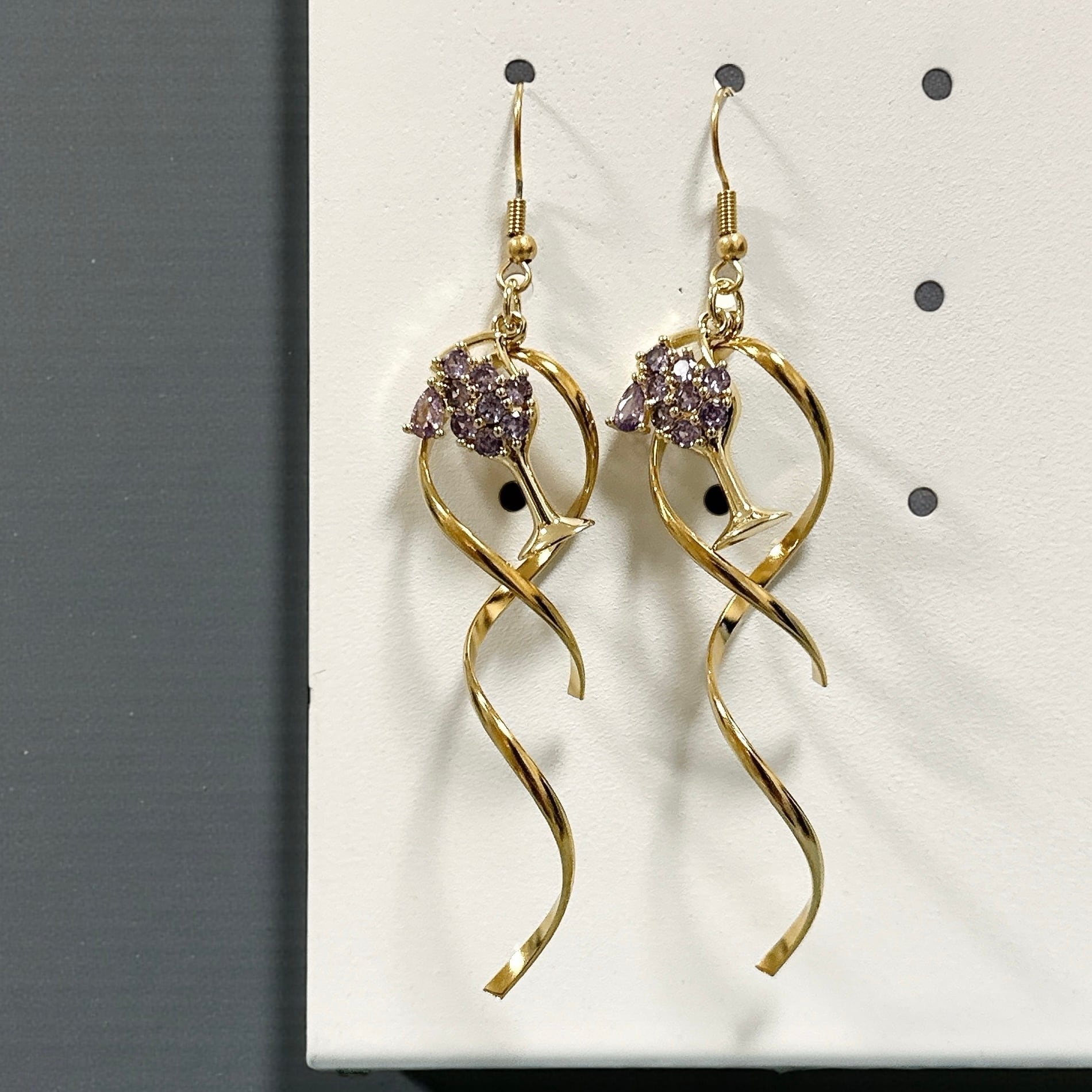 パープルストーンワインピアス(wave)【エレガントライン】