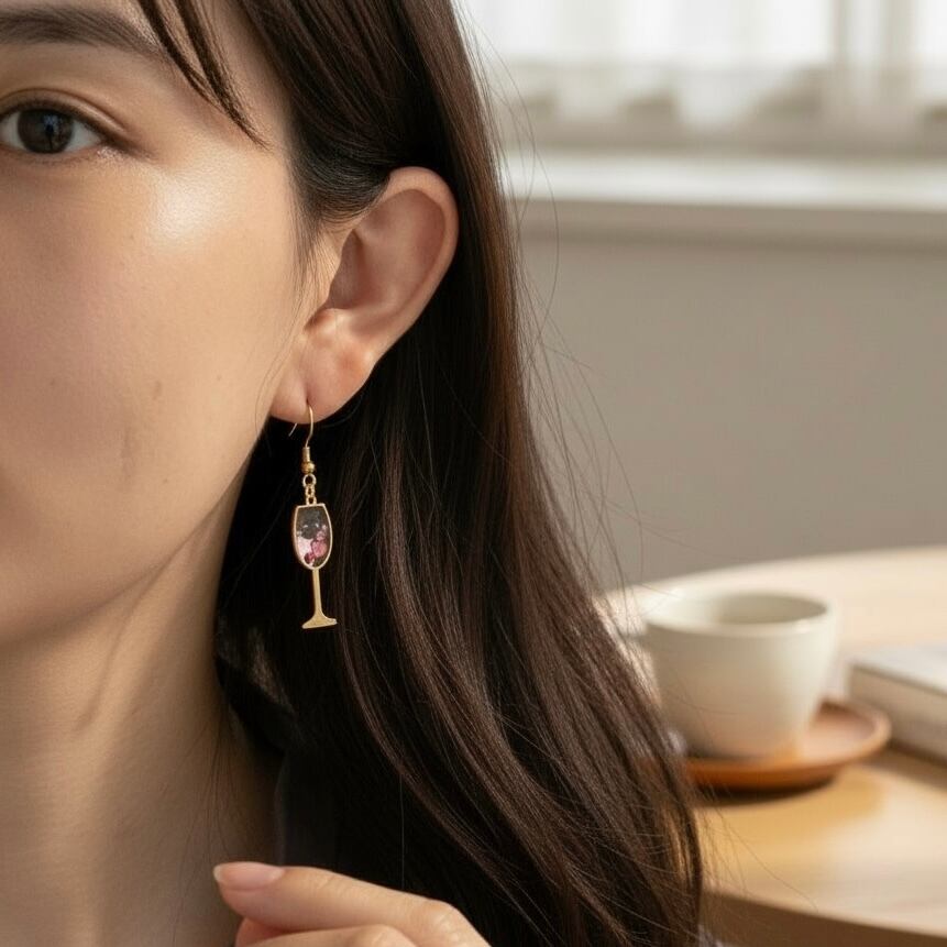 【素材】キラキラ☆ワイン:ステンレススチール、樹脂 ピアス:ステンレススチール