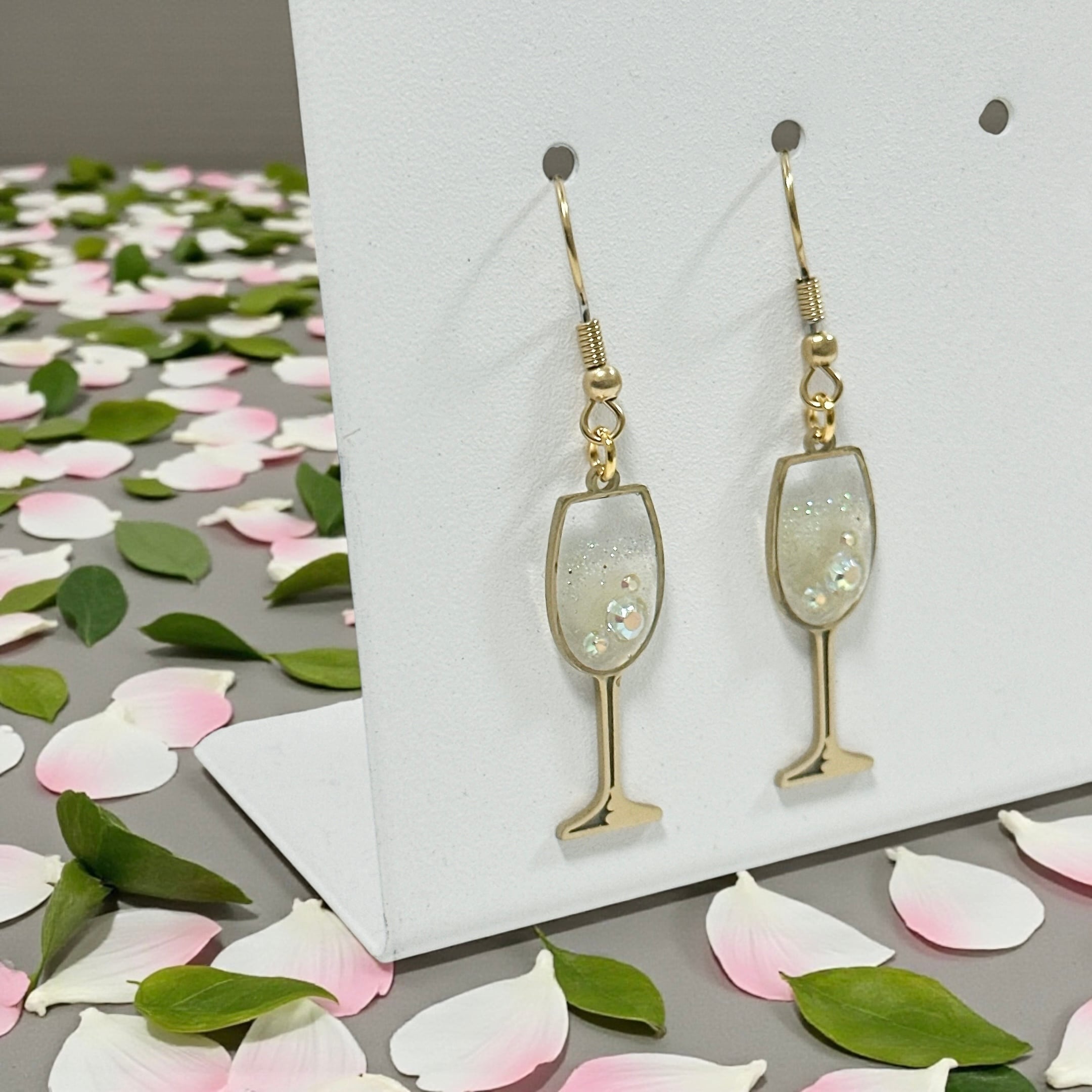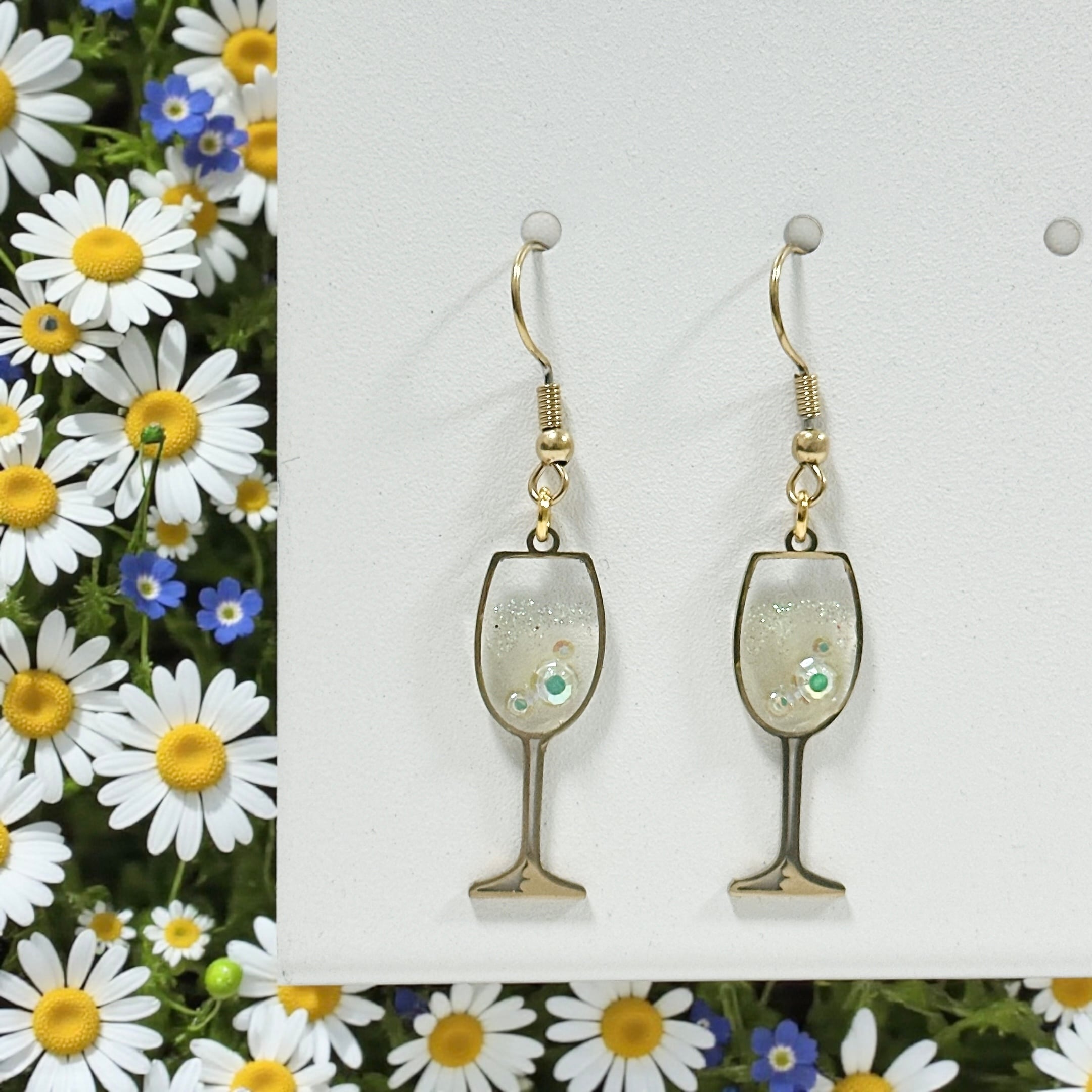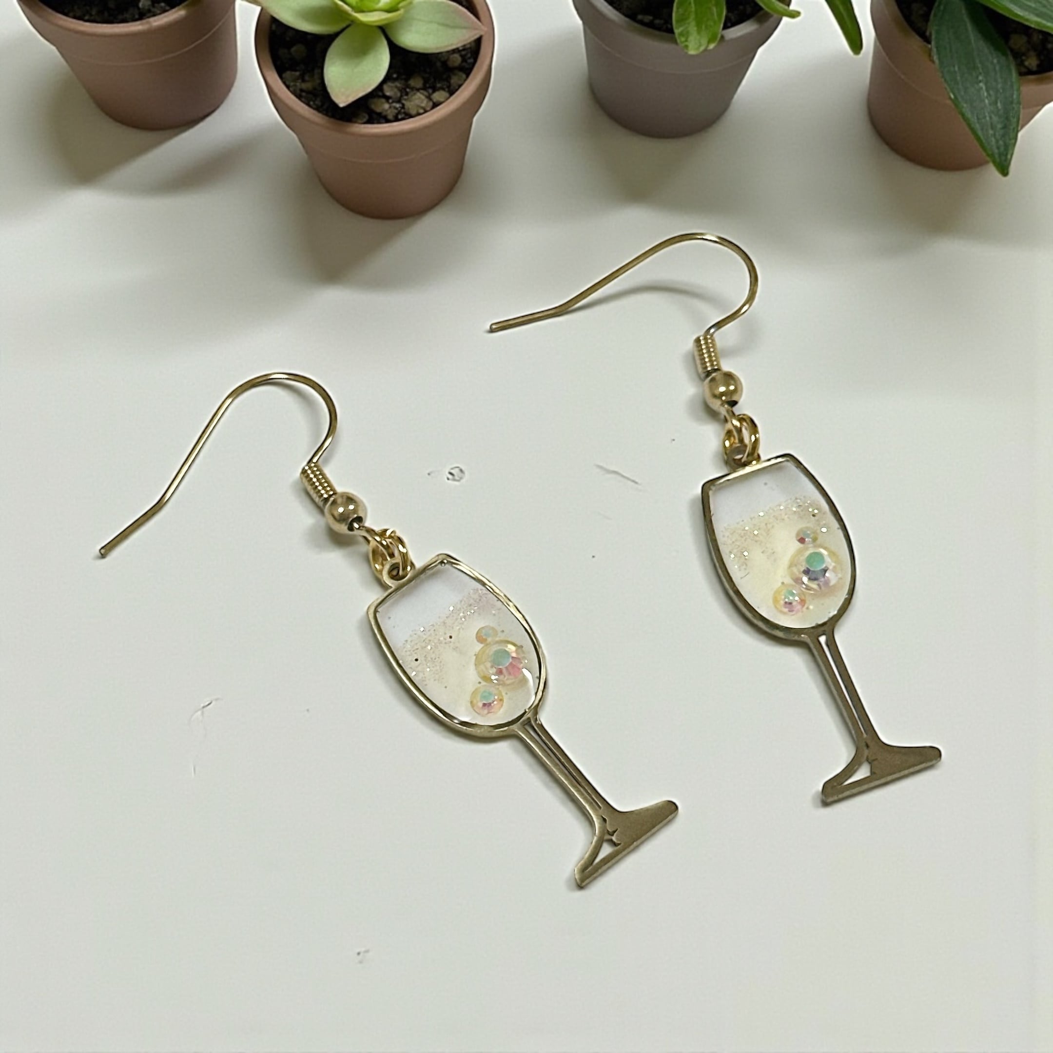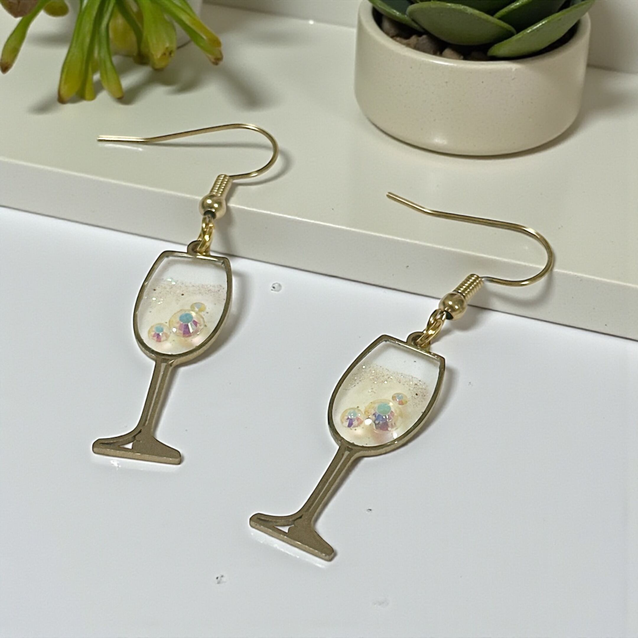 レジンで白ワインをイメージして作ったピアスです。