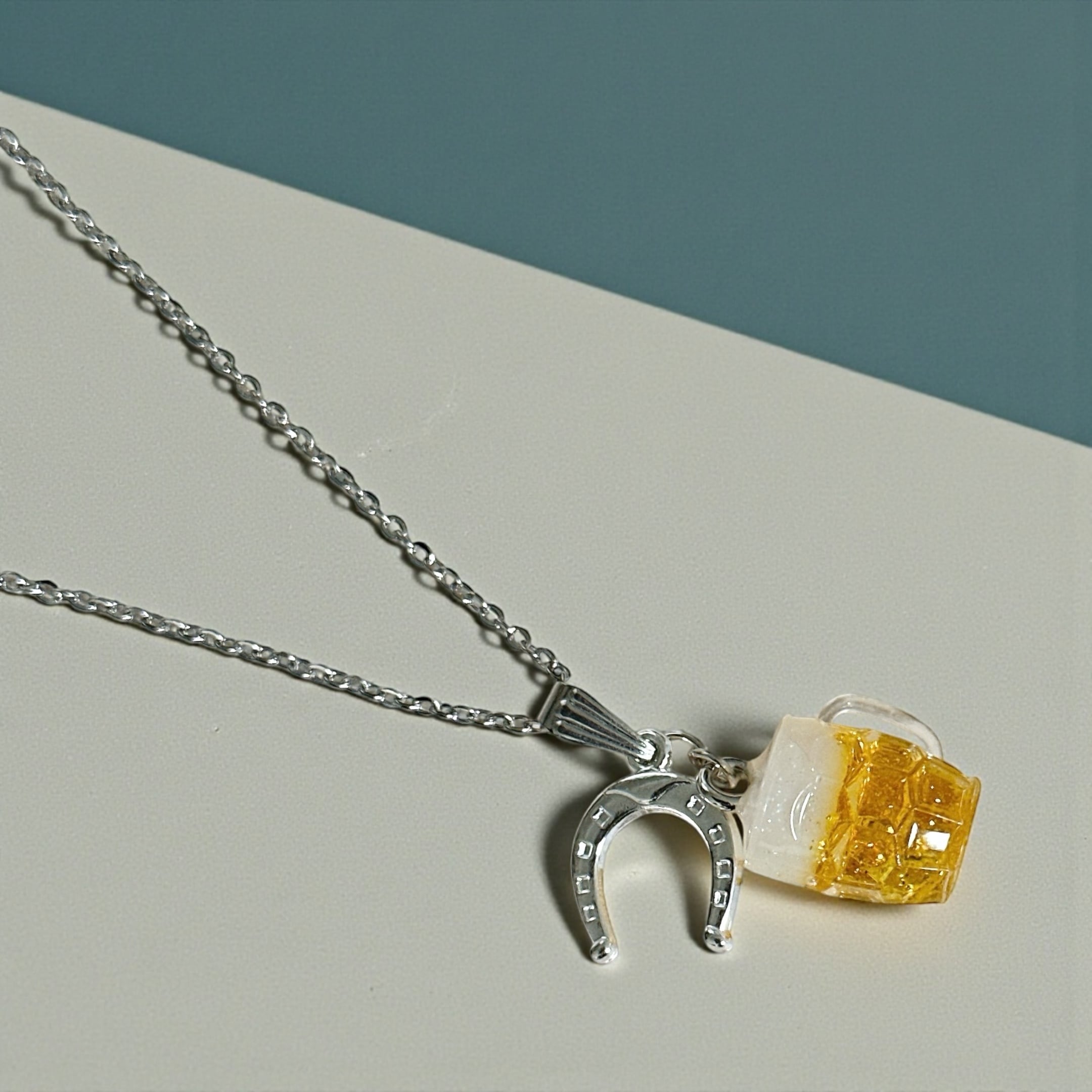 今年は午年!ということで、ビールと蹄鉄のネックレスを作りました。