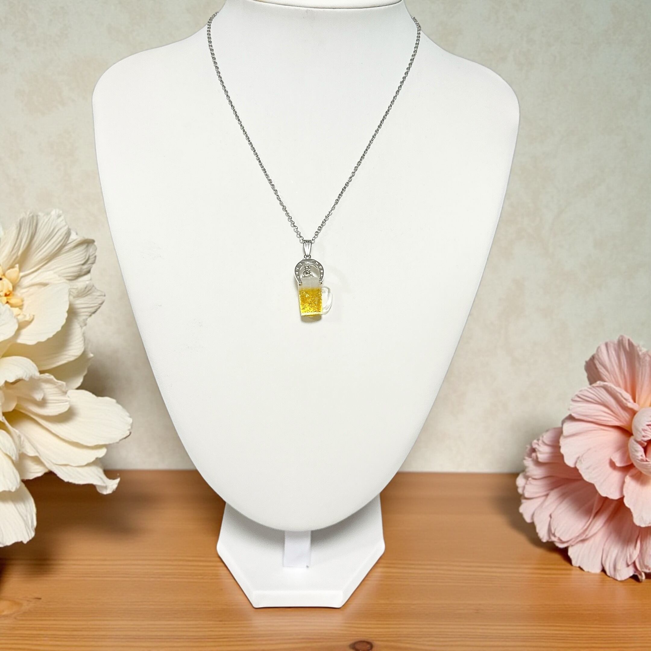 3D BEERキラキラ☆ビールジョッキネックレス(馬蹄) シルバー
