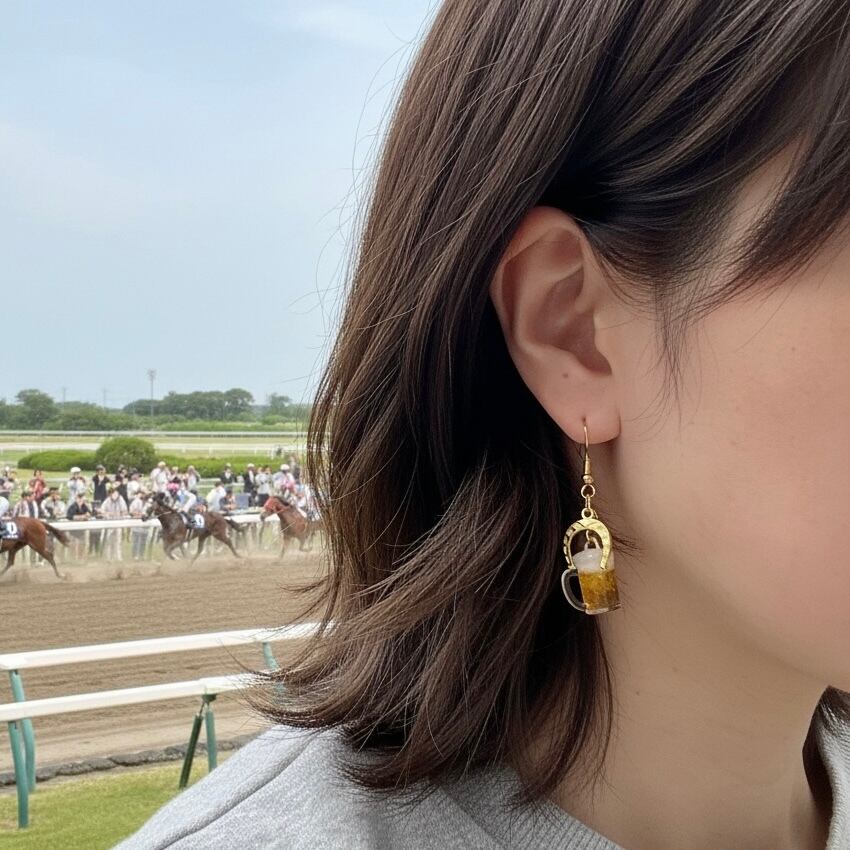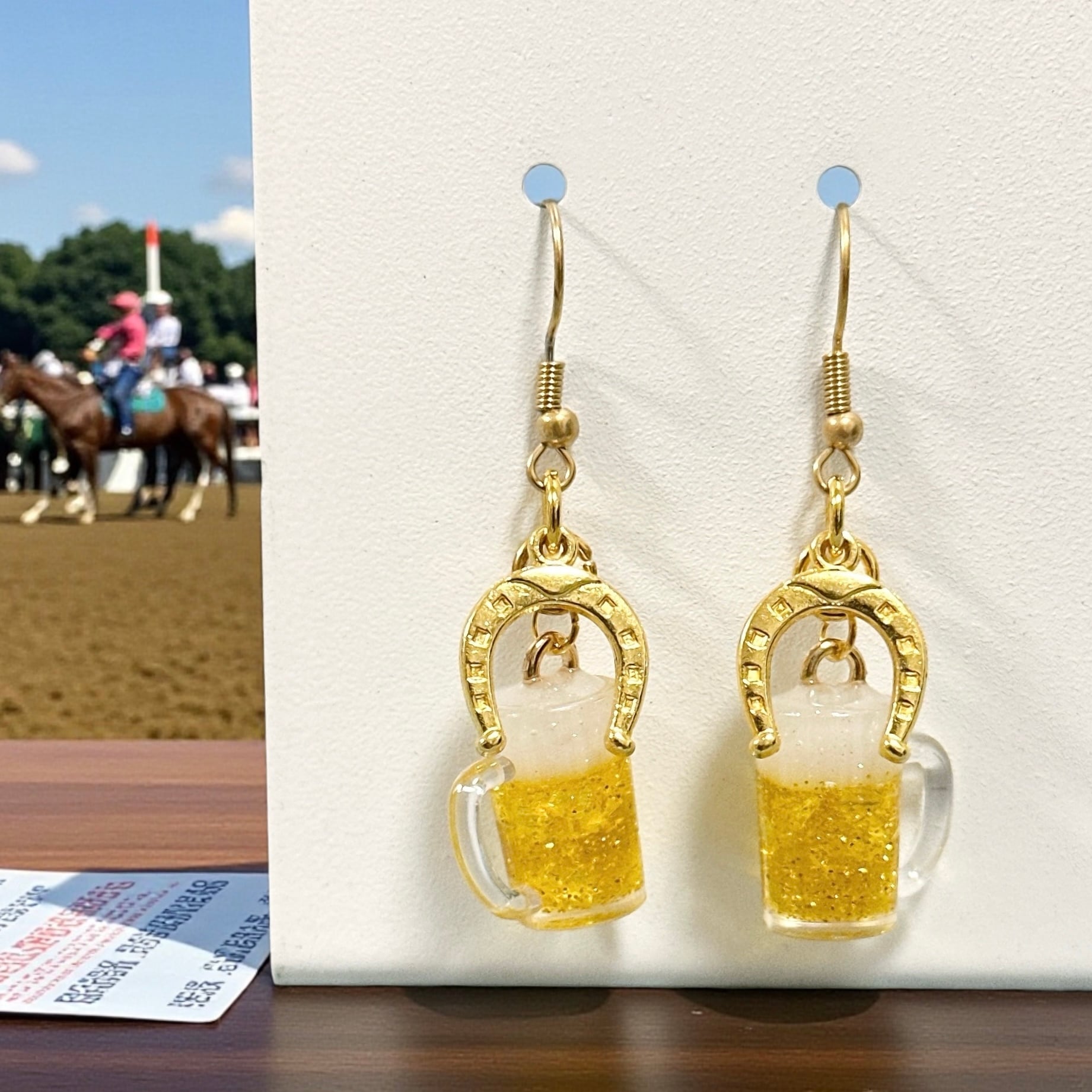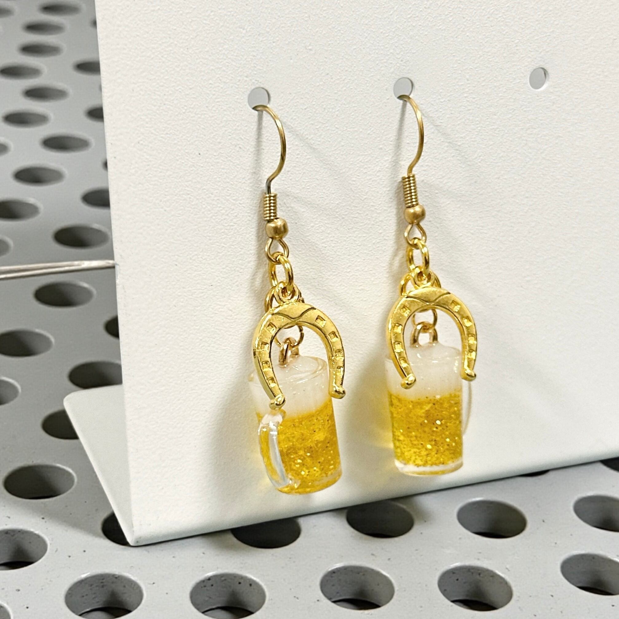【素材】キラキラ☆ビールジョッキ:樹脂 馬蹄:合金 ピアス:ステンレススチール