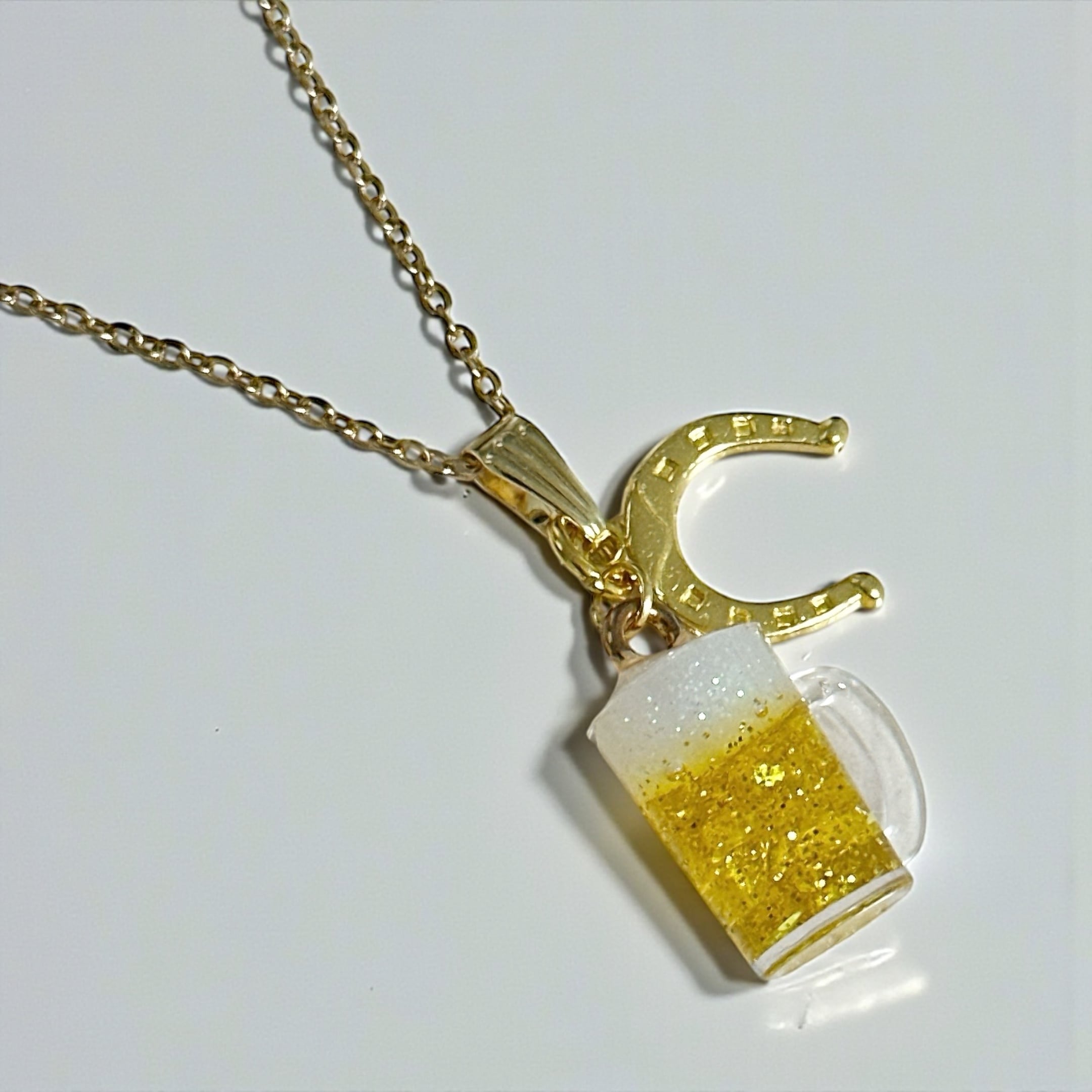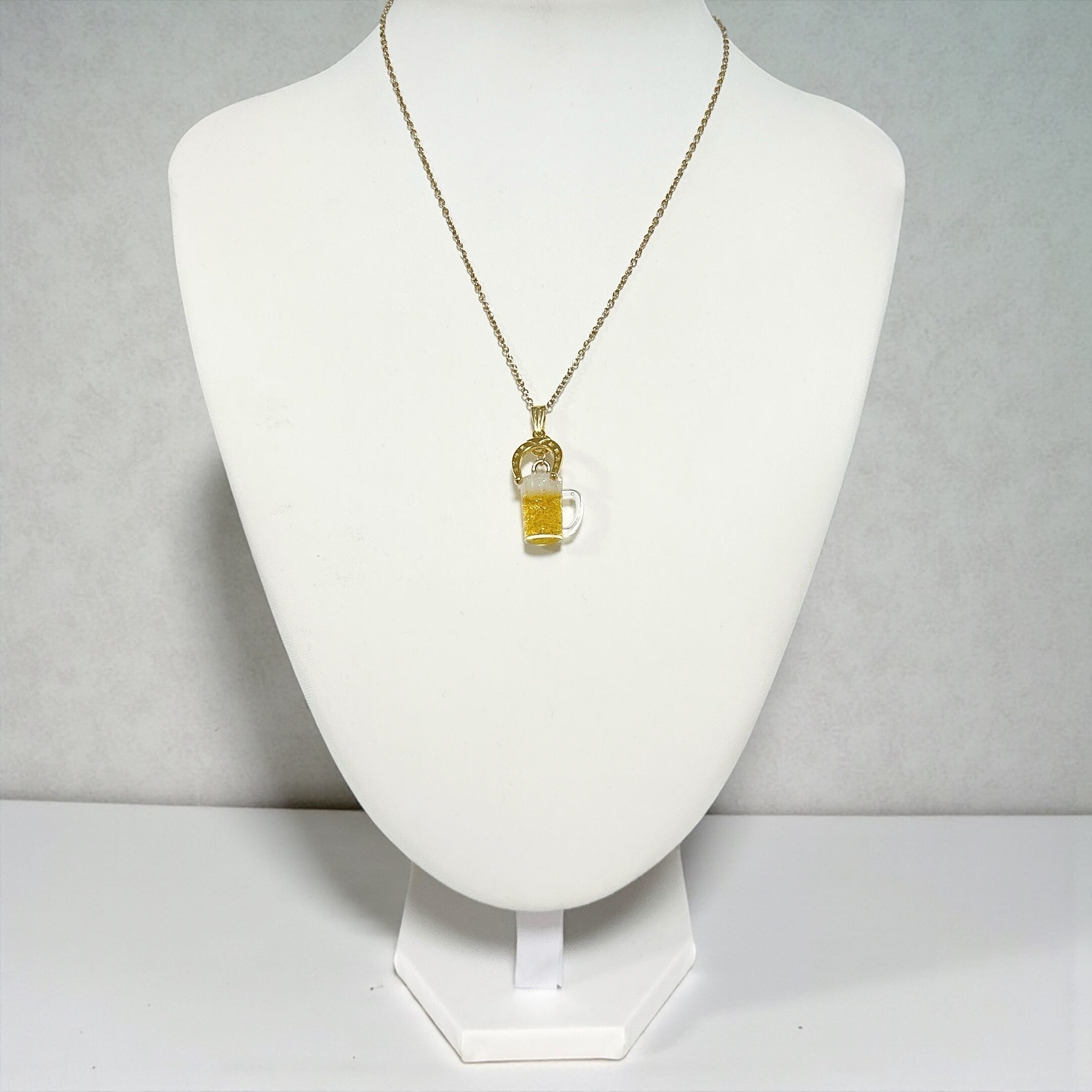 3D BEERキラキラ☆ビールジョッキネックレス(馬蹄) ゴールド
