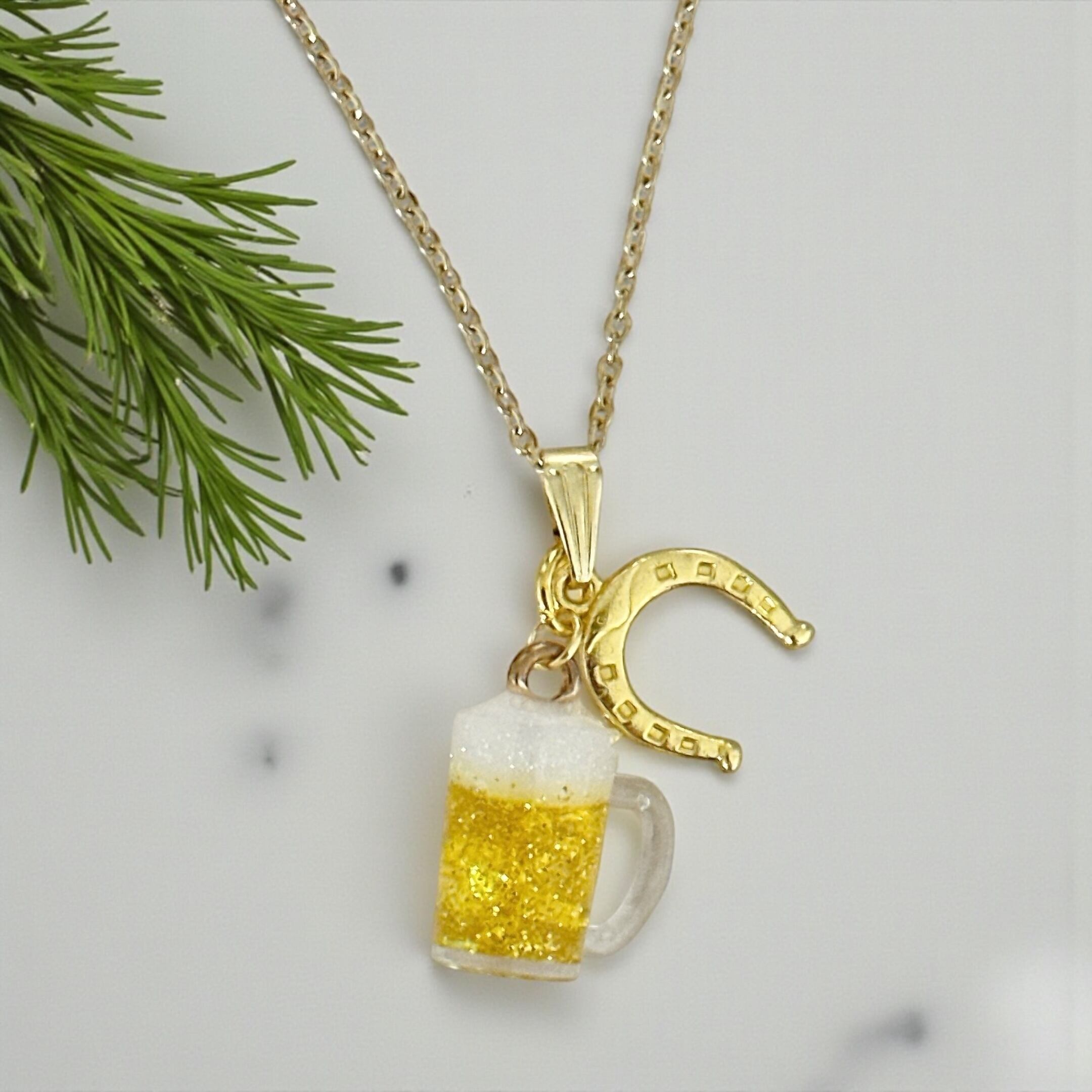 今年は午年!ということで、ビールと蹄鉄のネックレスを作りました。