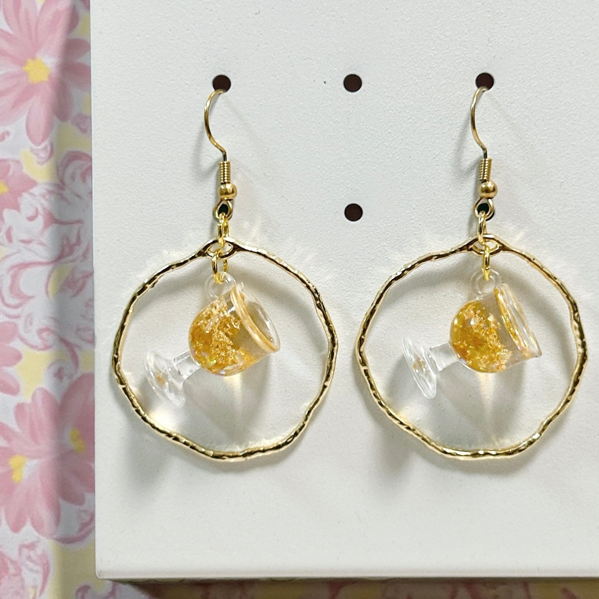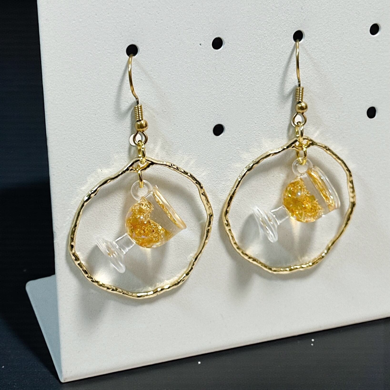 【素材】キラキラ☆白ワイン:樹脂 サークル:合金 ピアス:ステンレススチール