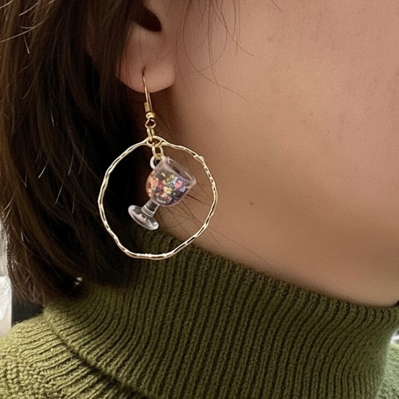3D WINEキラキラ☆ロゼワインピアス(circle)