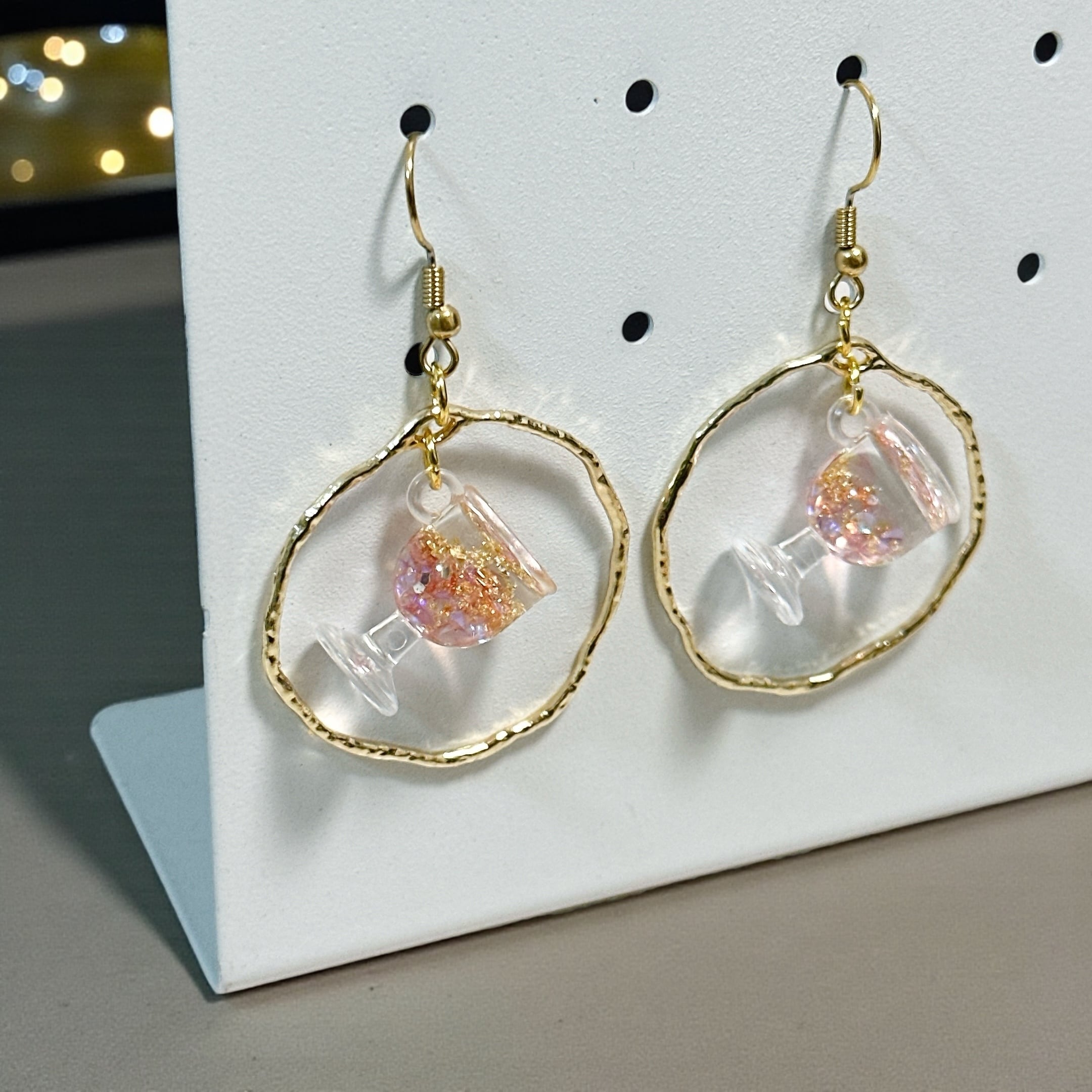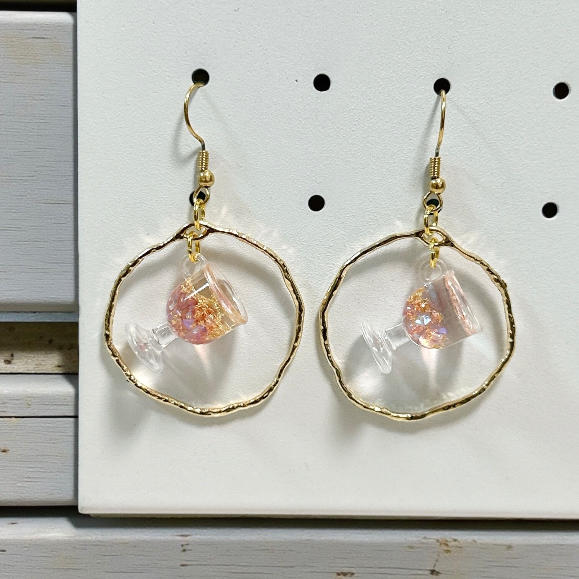 【素材】キラキラ☆ロゼワイン:樹脂 サークル:合金 ピアス:ステンレススチール
