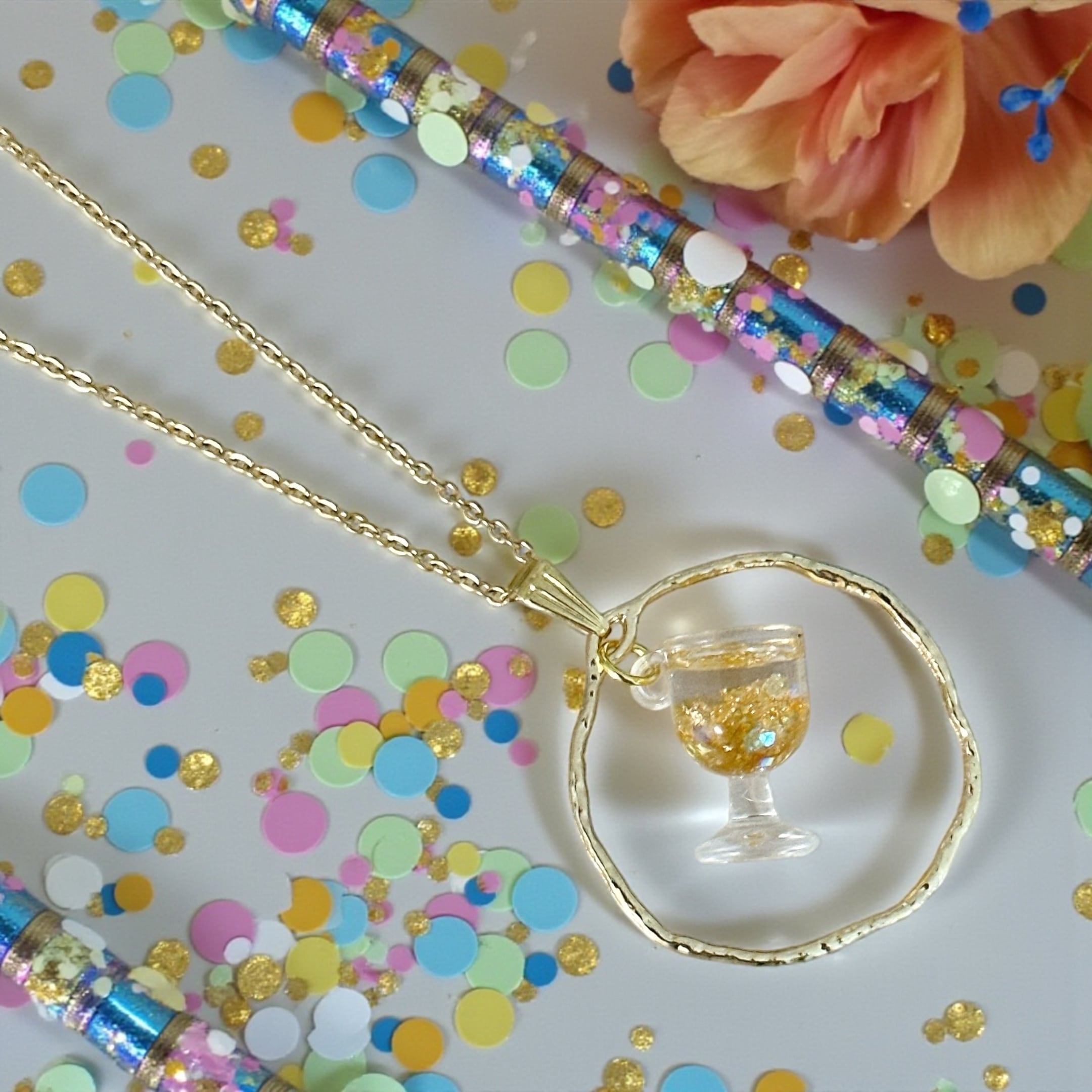 3D WINEキラキラ☆白ワインネックレス(circle)