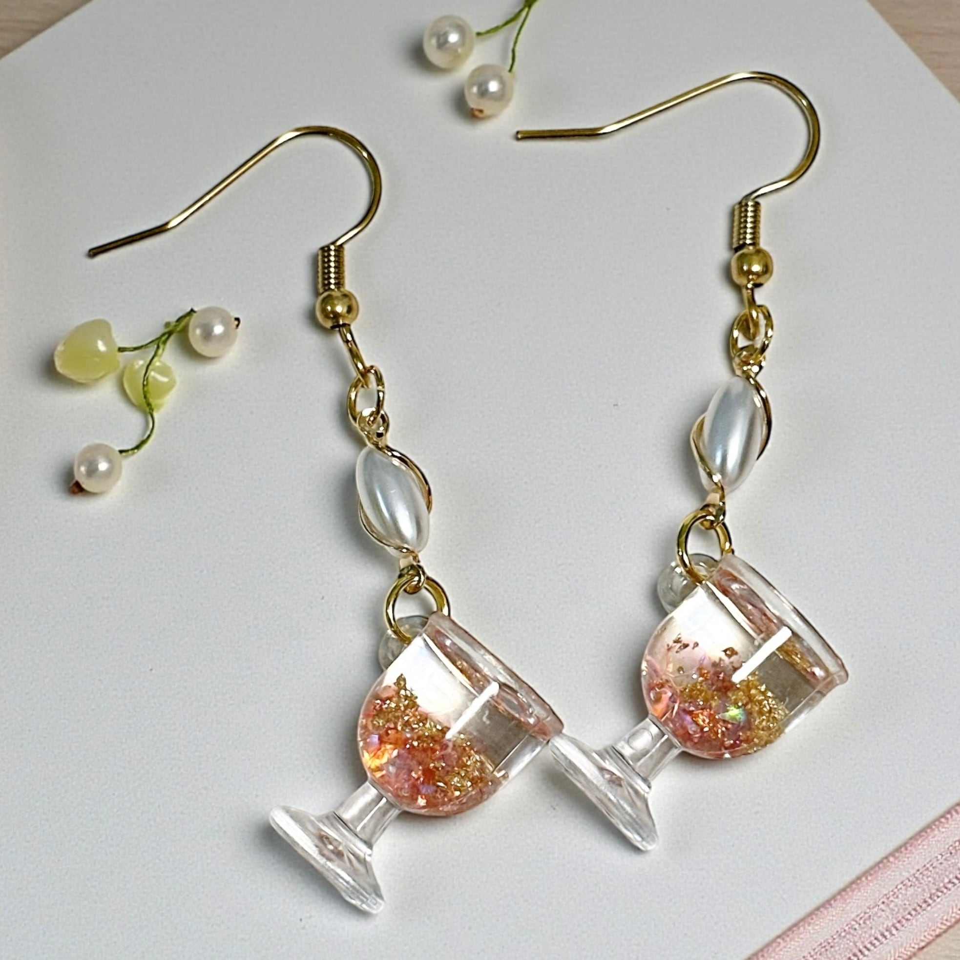 3D WINEキラキラ☆ロゼワインピアス(pearl)