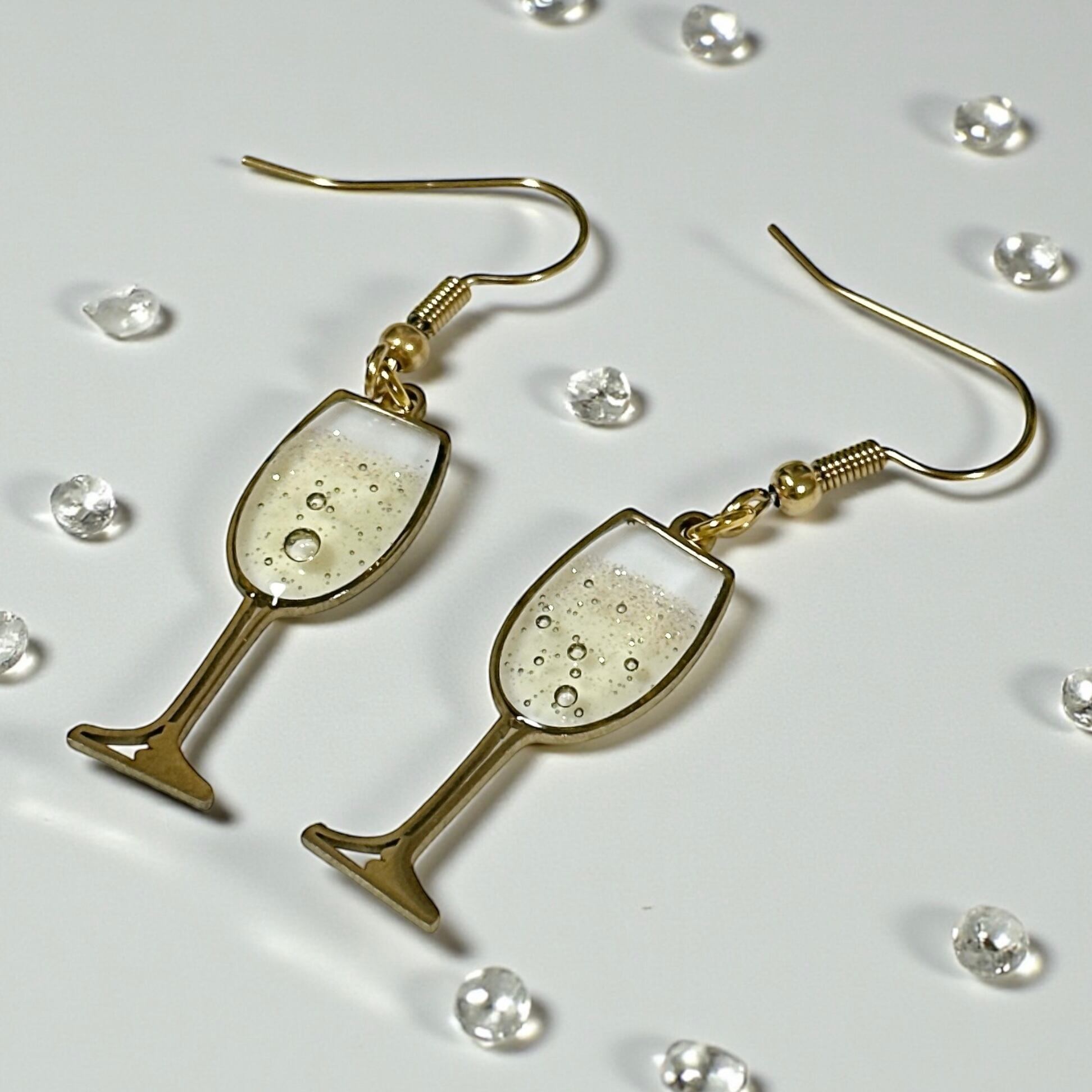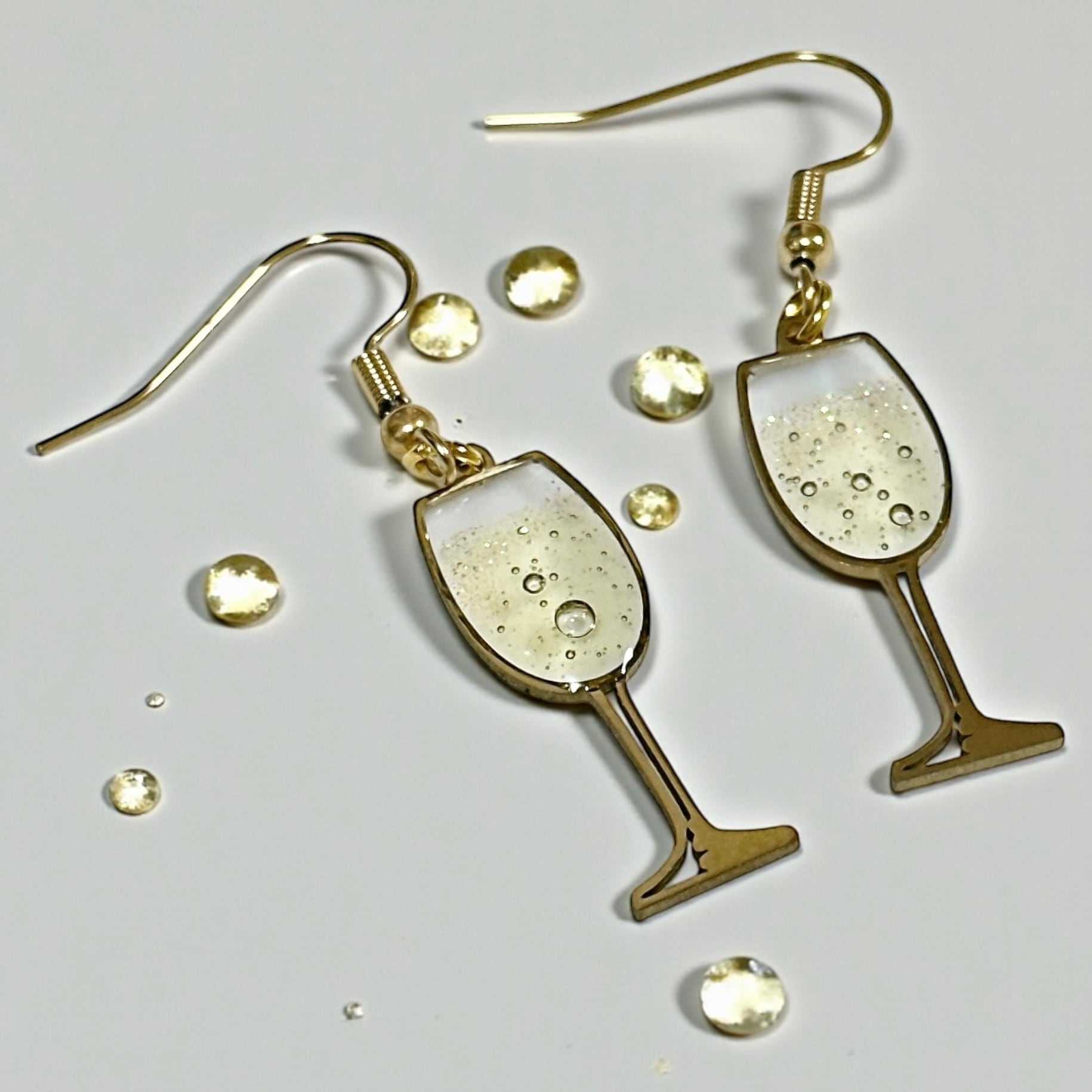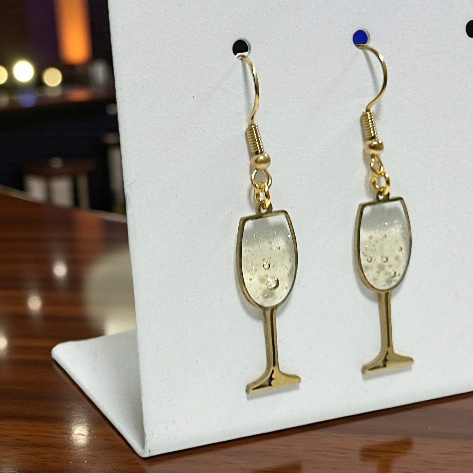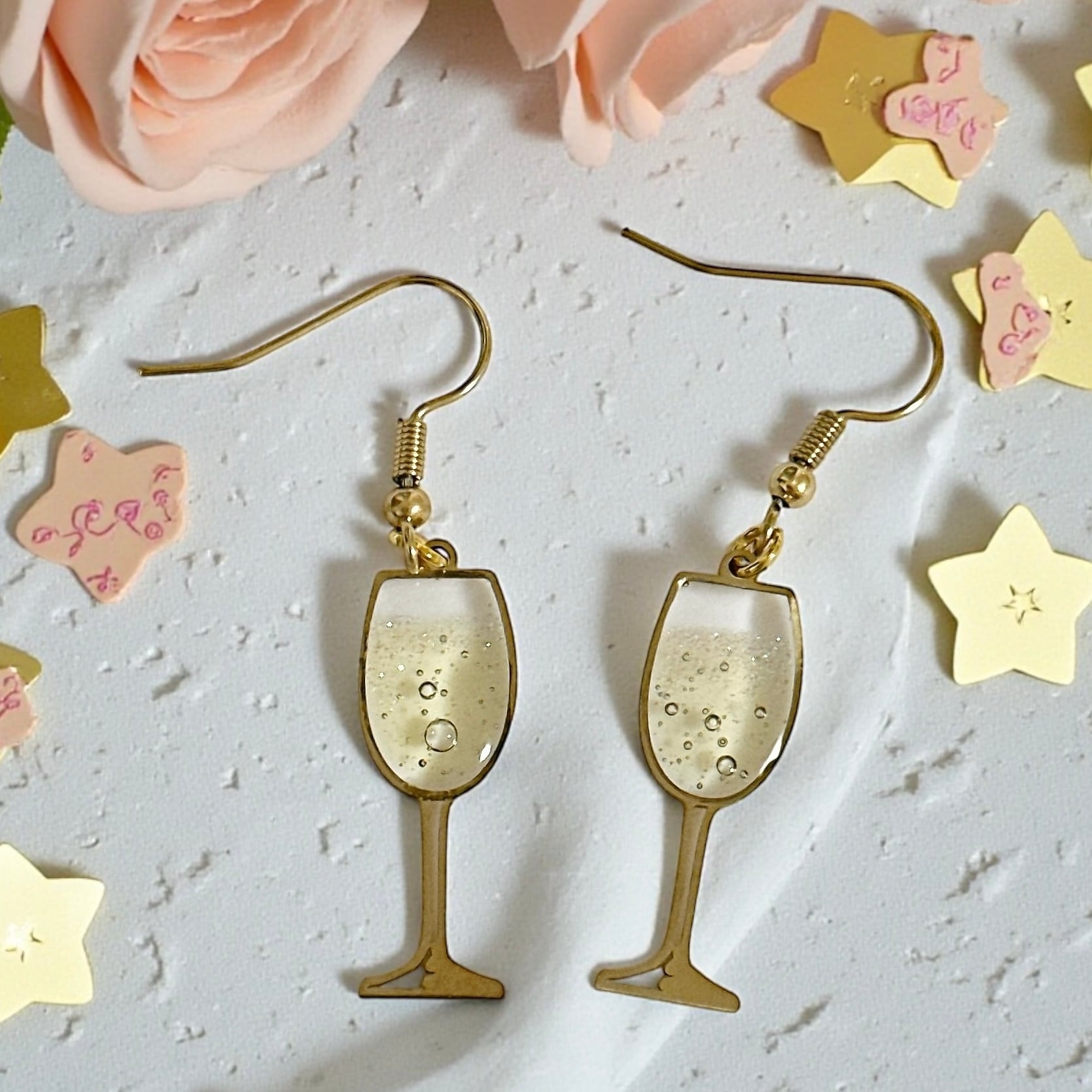 レジンでスパークリングワインをイメージして作ったピアスです。