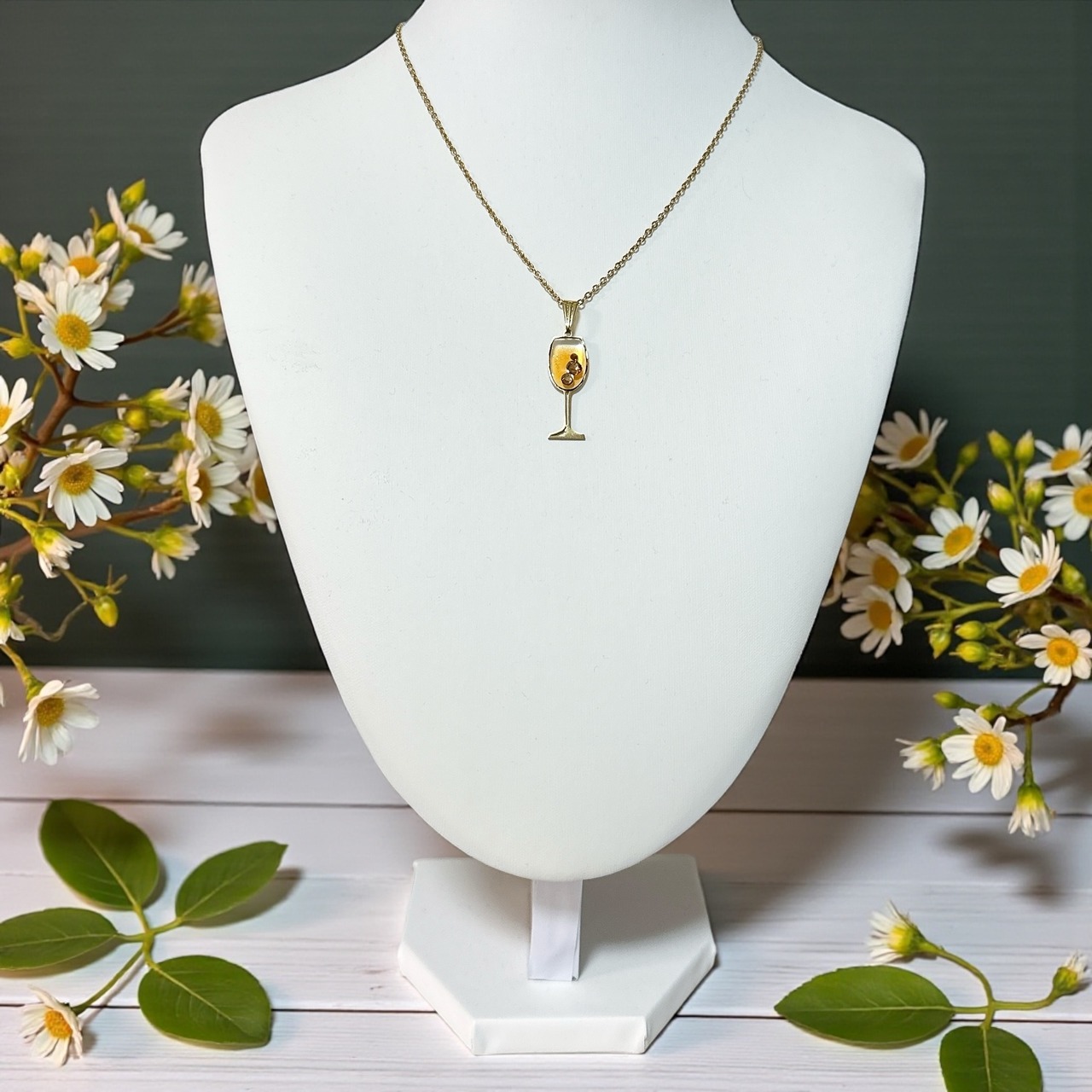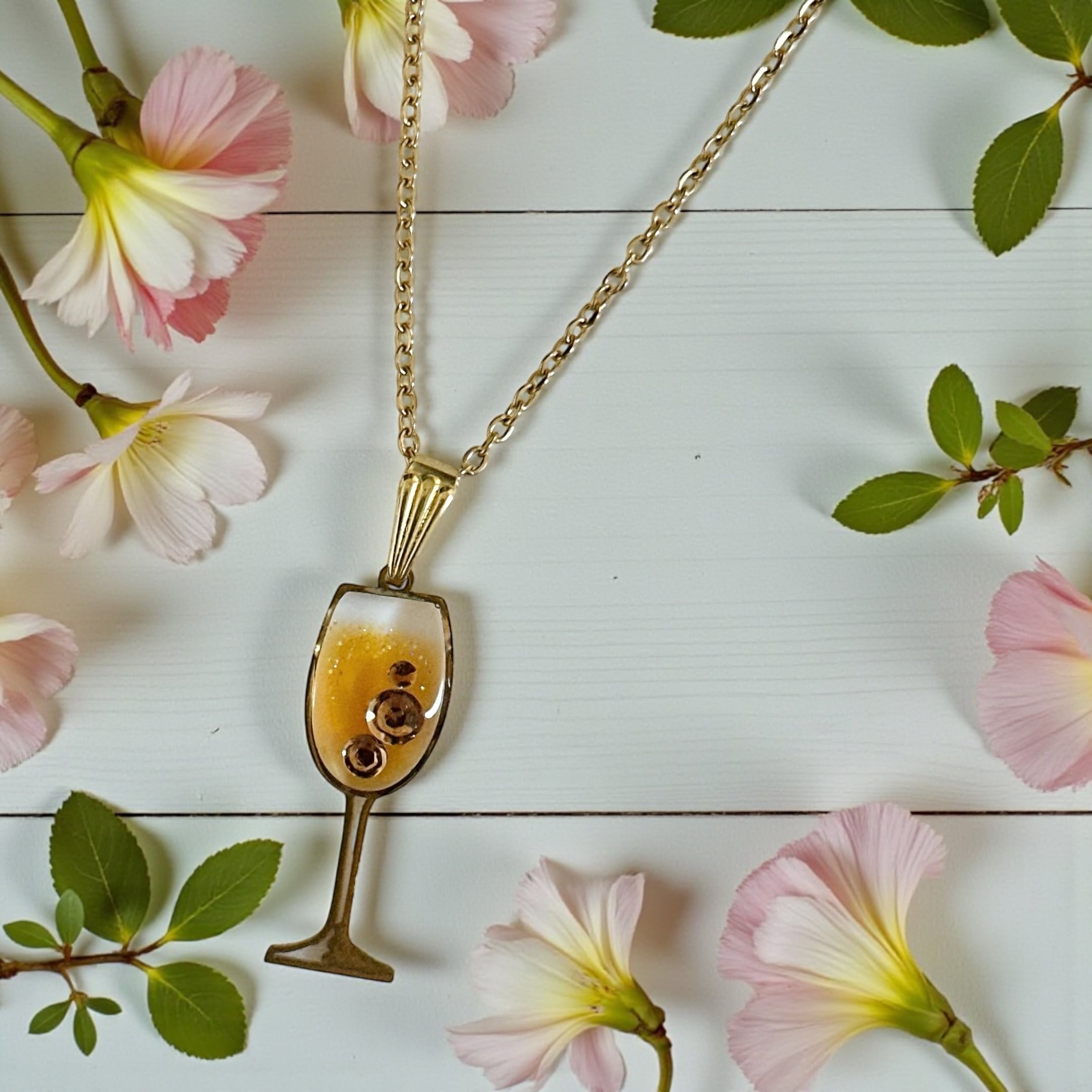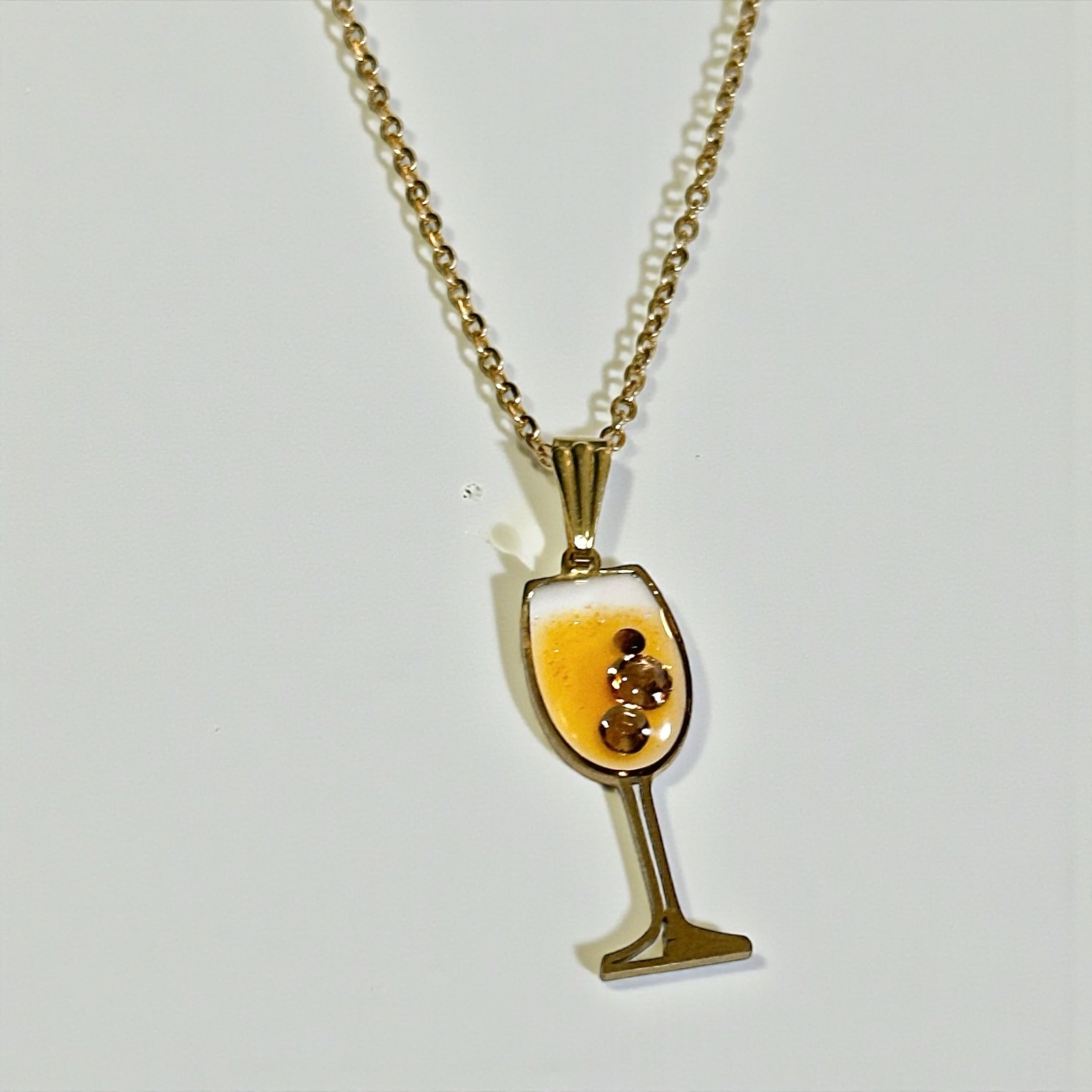 レジンでオレンジワインをイメージして作ったネックレスです。