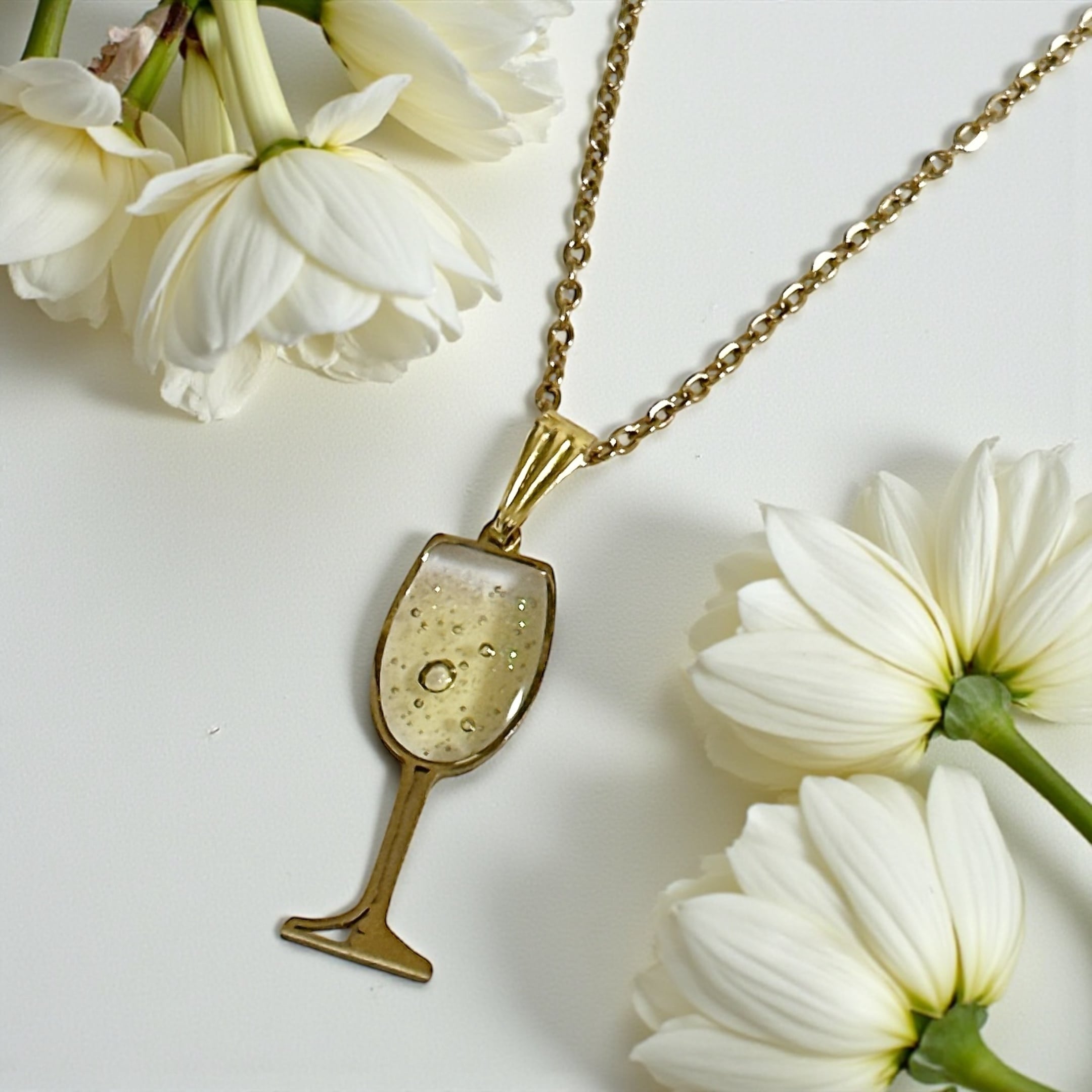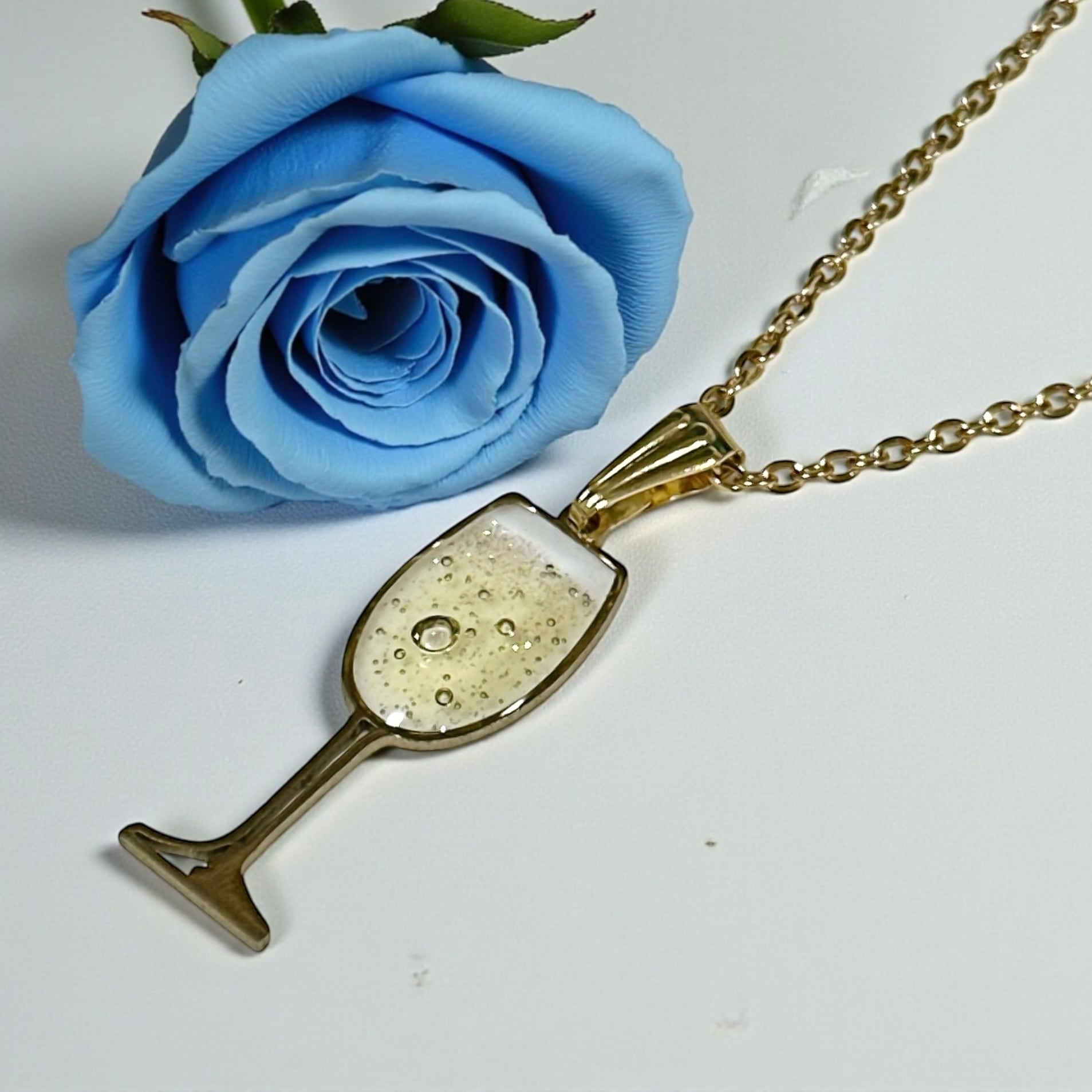 レジンでスパークリングワインをイメージして作ったネックレスです。