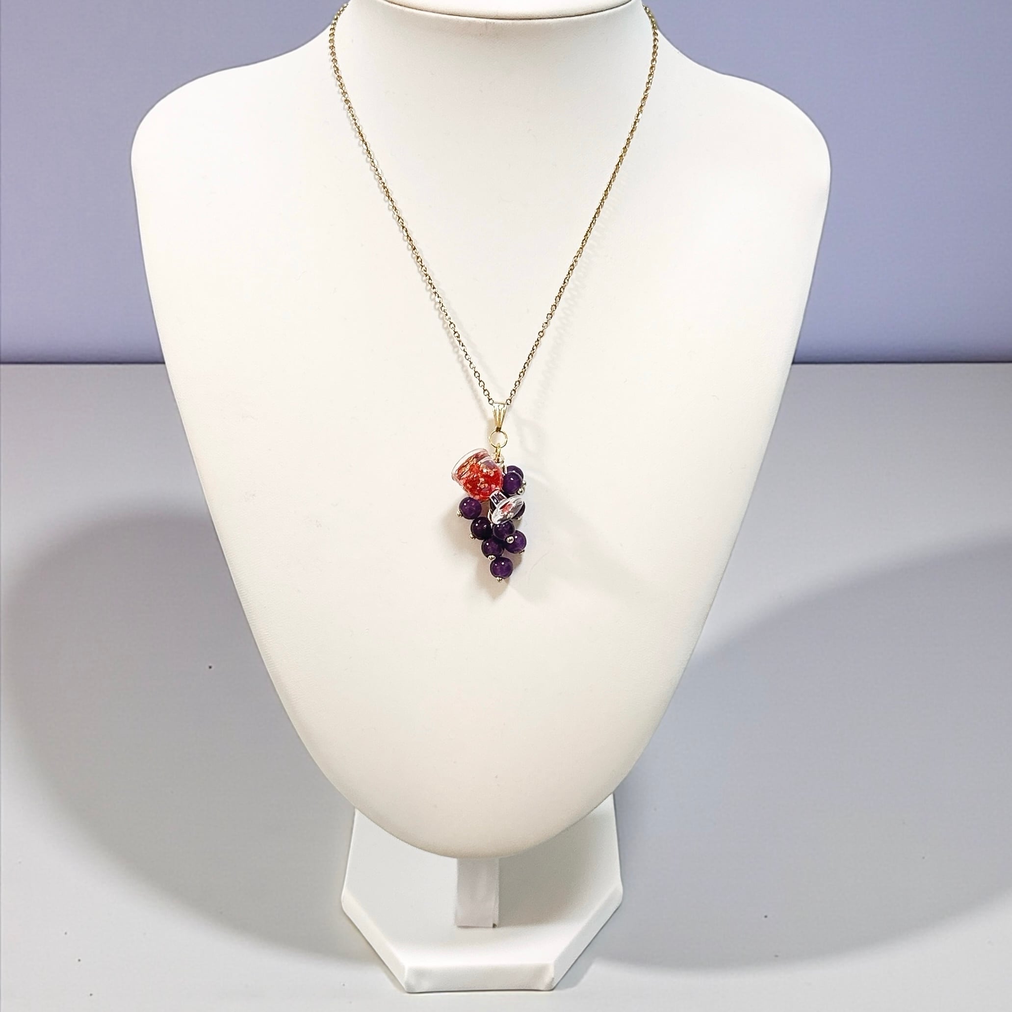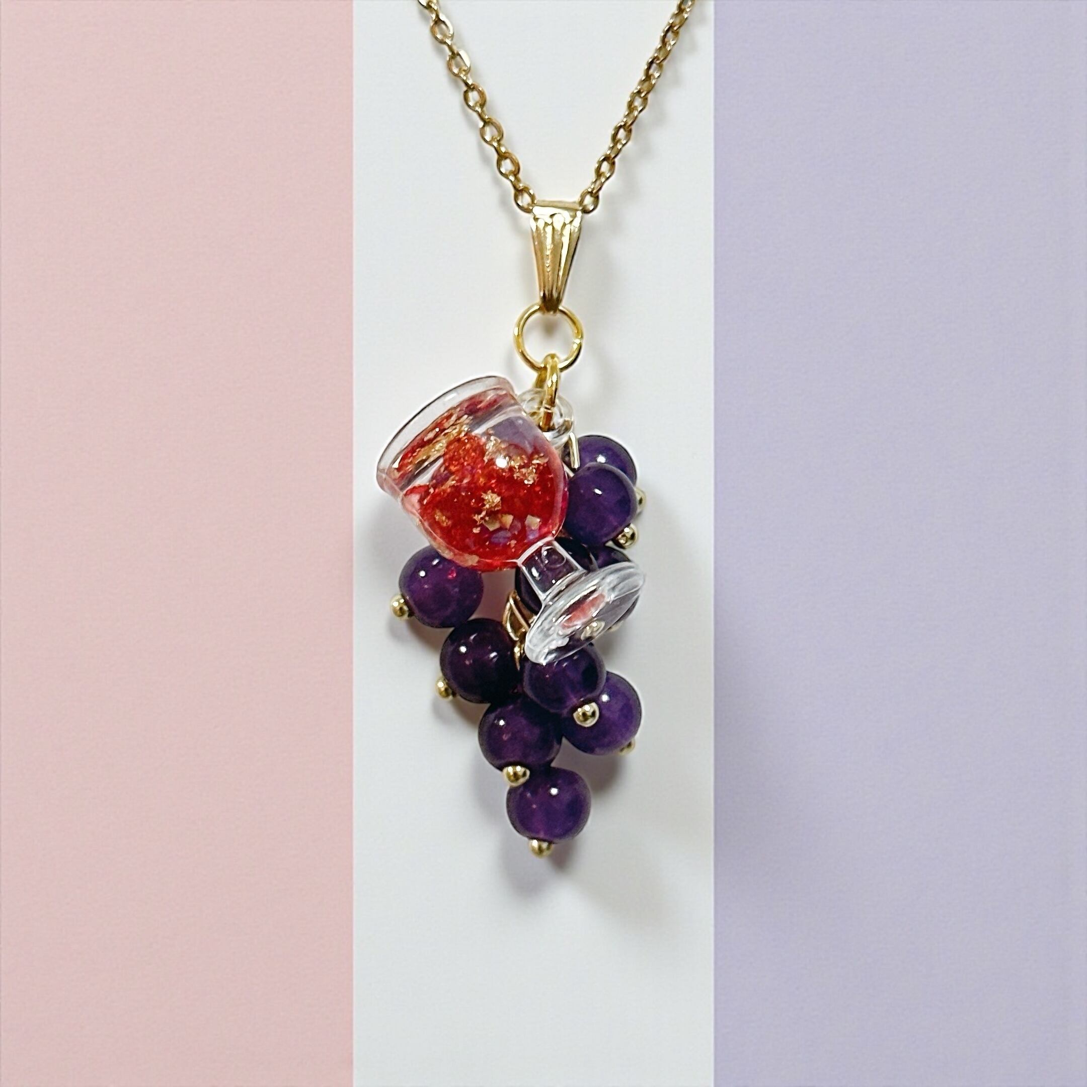 3D WINEキラキラ☆赤ワインネックレス(ぶどう)