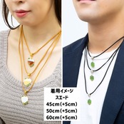 ネックレスはお好きな素材・長さをお選びいただけます。全て+5cmのアジャスターがついているので、洋服に合わせて長さの調節ができます。