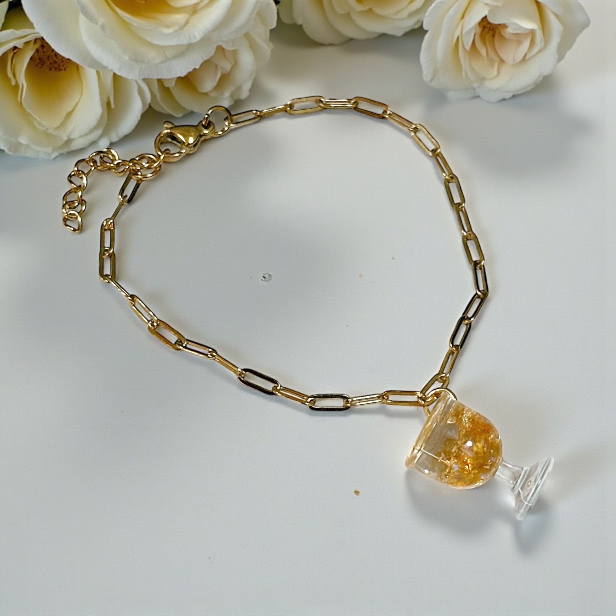 【サイズ】キラキラ☆白ワイン:1.2cm×1.8cm ブレスレット:17.5cm