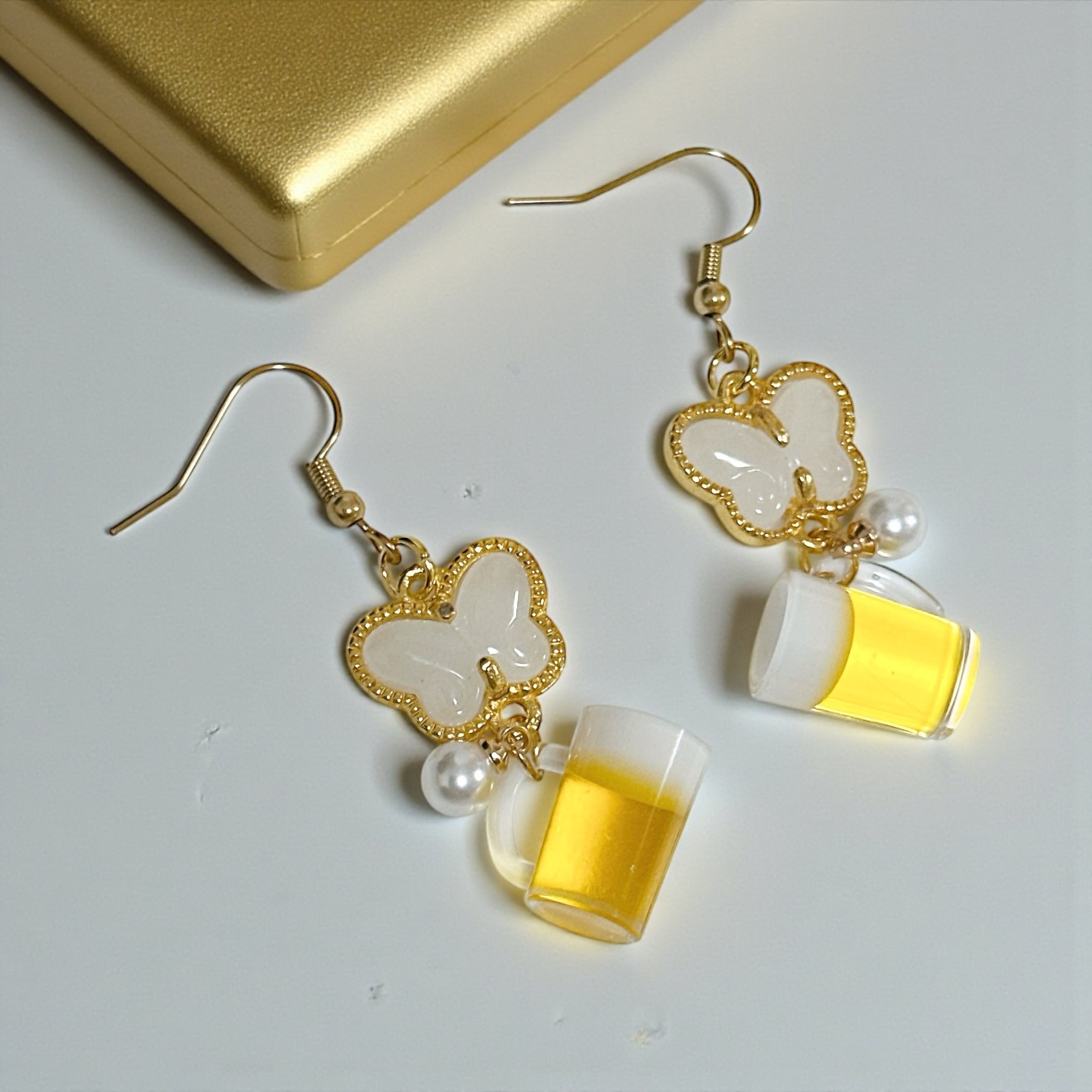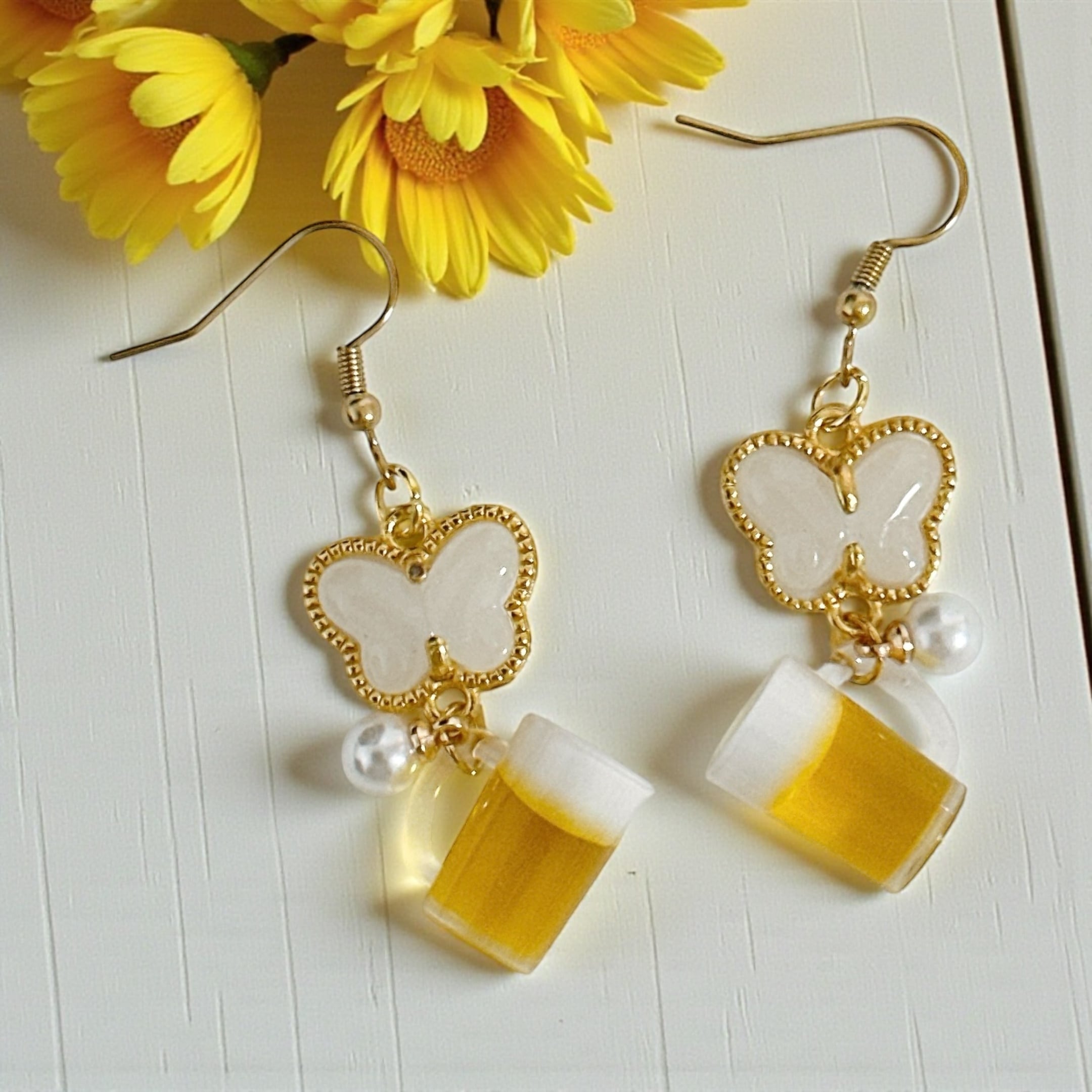 【サイズ】ビールジョッキ:1.5cm×1.7cm butterfly:2.8cm×1.7cm